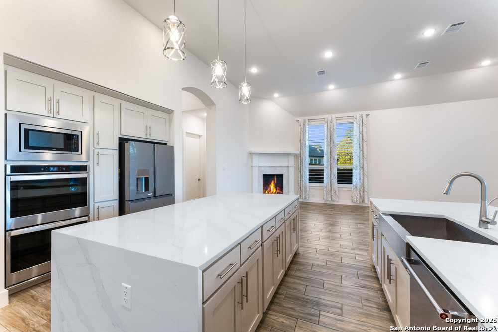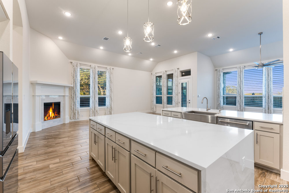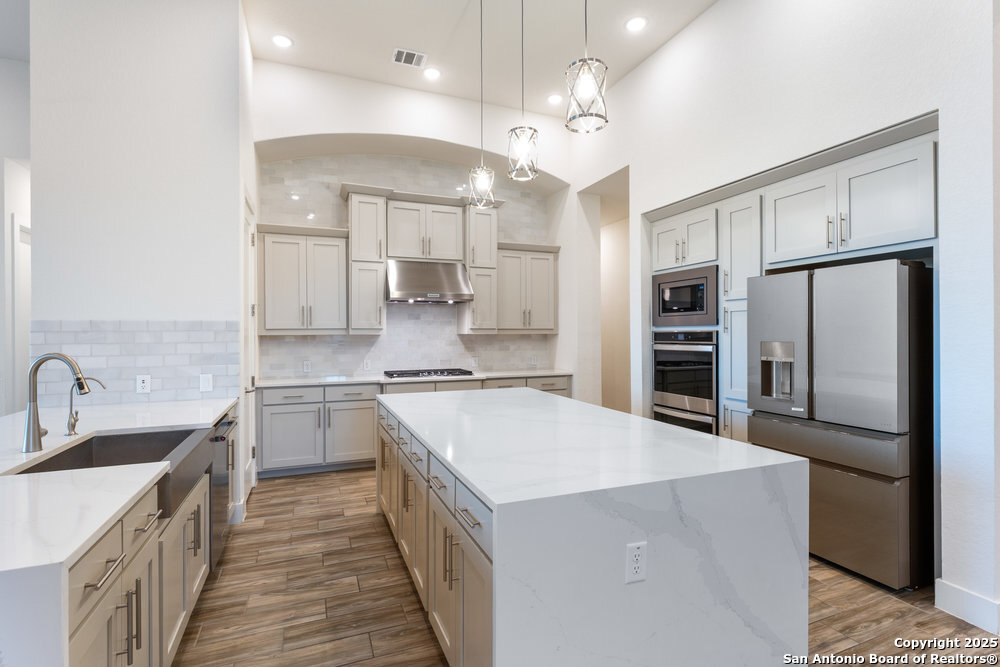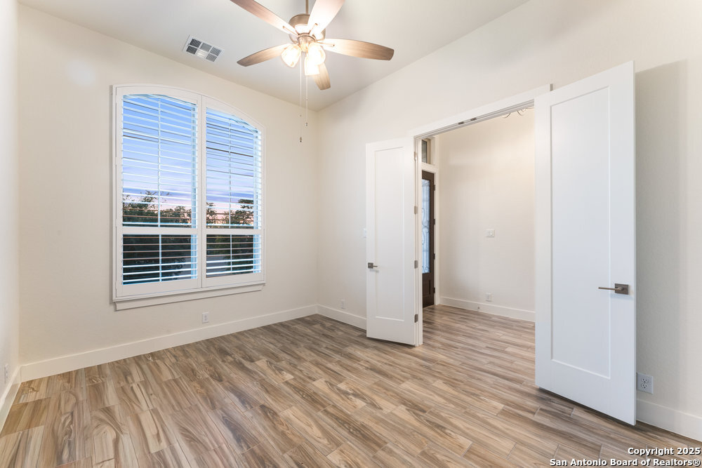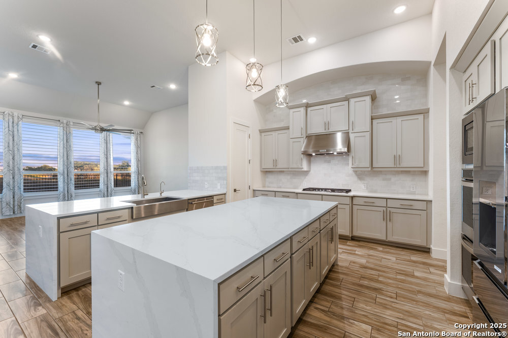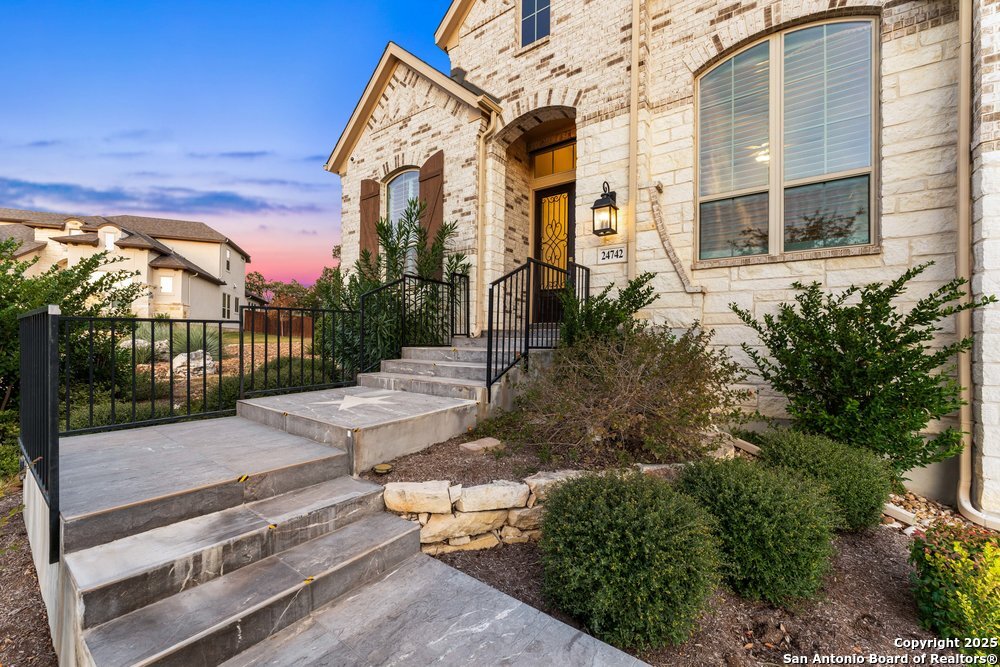 Tucked at the end of a quiet cul-de-sac in the highly sought-after Cibolo Canyons community, this 4-bedroom, 4.5-bath home offers privacy, comfort, and thoughtful design. With a greenbelt and the golf course right behind you, you'll enjoy peaceful views of the pond and a true sense of serenity every time you step outside. Inside, the layout just makes sense. The kitchen is the heart of the home, anchored by a large island that works perfectly for cooking, gathering, or spreading out and getting things done. Each bedroom has its own full bath, giving everyone their own space and making hosting family or guests incredibly easy. The sellers have kept this home in excellent shape and added upgrades along the way: brand new carpet in the bedrooms and media room, custom shutters from Window Fashions of Texas, and a fully enclosed patio from Patio Enclosures so you can enjoy the outdoors year-round. The garage is dialed in too, featuring a professionally installed Versalift system for effortless attic access and a clean New Age wall cabinet setup that keeps everything organized and off the floor. Residents love the neighborhood trails for morning runs and evening walks, and this home gives you easy access to all of them. This is a turn-key property in one of San Antonio's most desirable communities. Offering space, updates, and a peaceful setting that's getting harder to find. Homes like this don't come around often. Schedule your showing today.