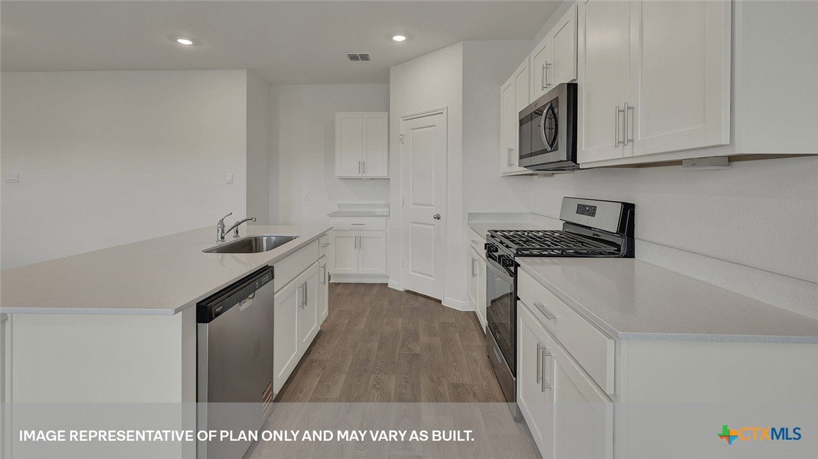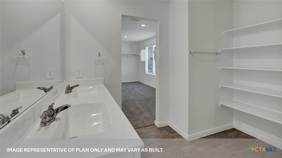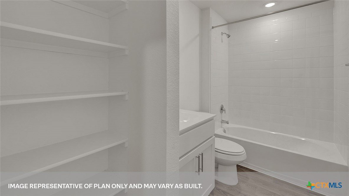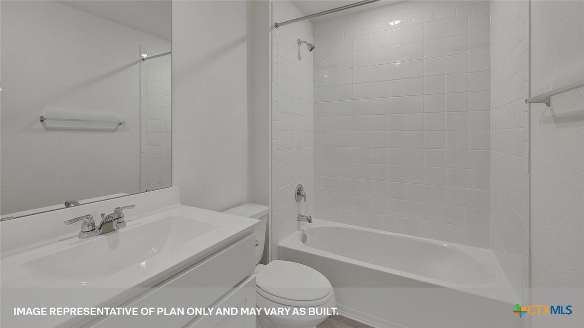 MOVE IN READY! GREAT BACKYARD. EASY ACCESS TO I-35! The Nicole is our largest floorplan available. This two-story home offers 4 bedrooms, 3 bathrooms, a gameroom, and 2 car garage all within 2,473 square feet. Entering the home from the covered front porch, cross the foyer and find a short hallway to the downstairs secondary bedroom and a full bathroom. Passing the stairwell, continue through the foyer to the heart of the home, the living area. The family room, dining area, and kitchen are open, making entertaining and everyday living a shareable experience for family and friends. The kitchen features quartz countertops, a large island with undermount sink, a corner pantry closet, stainless-steel appliances and 36’’ upper cabinets. Moving upstairs, you’ll enter the gameroom, the center of the upstairs space. The oversized primary bedroom is tucked away from the gameroom. Stretch out and relax at the end of your day in this spacious and private ensuite. The primary bathroom features a walk in shower, double vanity, separate toilet area with a door, and an enormous walk-in closet. This will be the closet of your dreams, spacious enough to add a dressing island or chaise lounge for a full luxurious experience. The additional upstairs bedrooms and bathroom are located opposite the primary bedroom. The bedrooms feature walk in closets with shelving. Both secondary bathrooms include a shower/tub combination. The utility room rounds out the upstairs space, making laundry chores a breeze. The Nicole includes vinyl flooring throughout the common areas of the home, and carpet in the bedrooms, gameroom and stairwell. All our new homes feature a covered back patio, full sod, an irrigation system in the front and back yard, and a 6’ privacy fence around the full yard. This home features our America’s Smart Home base package, which includes the Video Front Doorbell, Front Door Deadbolt Lock, Home Hub, Thermostat, and Deako® Smart Switches.