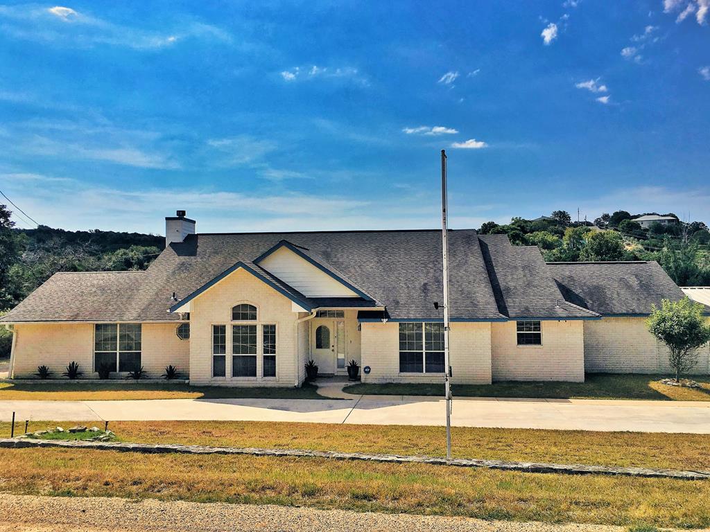 Peaceful country living on 2.58 acres just outside Kerrville's city limits, in a sought after and desireable area. No city taxes, no HOA fees, minimal restrictions. This home is a lovely custom built handicap accessible, well maintained 3 bedroom 2 bathroom approximately 2889 sq ft with a great floor plan, high ceilings, tile and wood flooring throughout except for the Den which has stained concrete. Open and inviting Living Room with wood burning fireplace, formal dining area, super spacious kitchen with 2 bars, island, walk-in pantry and breakfast area. Large utility room with laundry sink, lots of counter space and storage closet. 28' x 23' Den and 9' x 12' enclosed sun porch. Fenced back yard area 2 car attached carport, 2 car detached carport, nice workshop/ storage building plus extra storage building, outdoor covered patio, private will, pond, and an abundance of deer and turkey.
