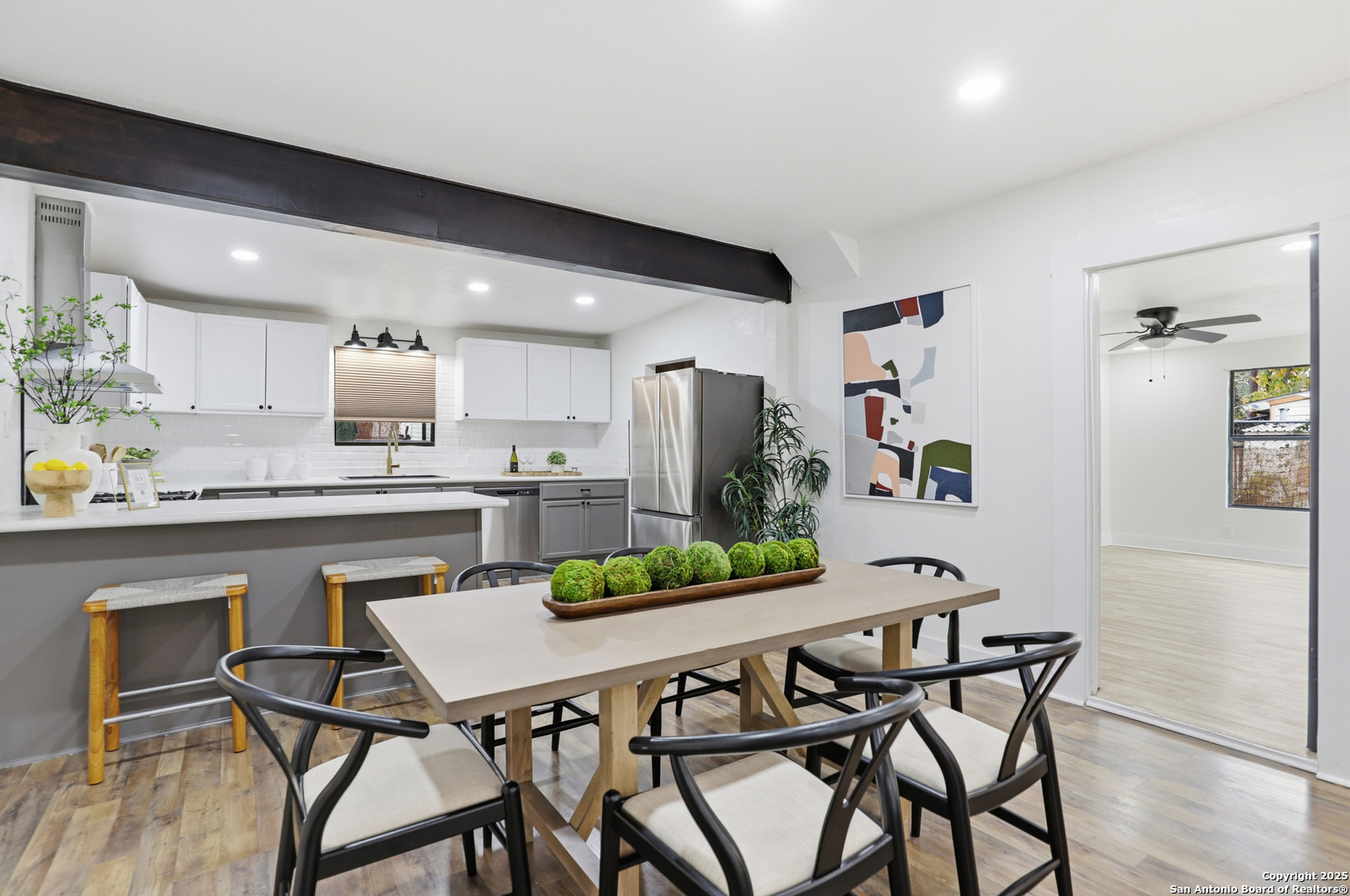 Step into a piece of San Antonio history with this beautifully updated 100+ year-old residence, perfectly situated in the heart of the highly desirable Tobin Hill neighborhood. Known for its eclectic charm, vibrant energy, and walkable access to local shops, restaurants, and entertainment, Tobin Hill offers an urban lifestyle that blends historic character with modern convenience. Located just minutes from downtown San Antonio, residents enjoy quick access to world-class dining, nightlife, and cultural destinations. This home has been lovingly renovated from top to bottom, offering the perfect balance of historic appeal and contemporary comfort. Recent upgrades include a brand-new roof, new fencing, a fully remodeled kitchen, updated bathrooms, and completed foundation work, providing exceptional peace of mind for years to come. Inside, the refreshed interior features no carpet, creating a clean, modern aesthetic with easy maintenance throughout. The kitchen has been fully transformed and comes equipped with a refrigerator, while both bathrooms feature high-end finishes that elevate everyday living. A washer and dryer are also included, making this a truly move-in-ready home. The backyard has been redesigned for low-maintenance enjoyment, featuring durable artificial turf ideal for pets, play, or relaxing outdoors. There is ample space for entertaining, and a large storage shed adds valuable functionality for tools, equipment, or hobbies. This rare Tobin Hill gem seamlessly combines history, modern updates, and thoughtful amenities-all in an unbeatable location. Homes of this caliber don't come along often. Schedule your showing today and experience the charm and convenience for yourself!