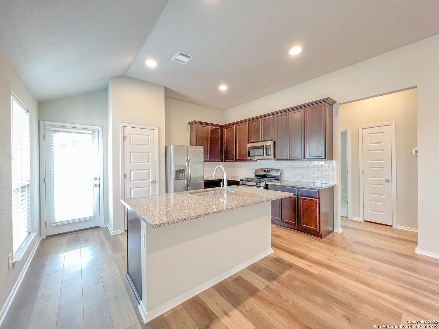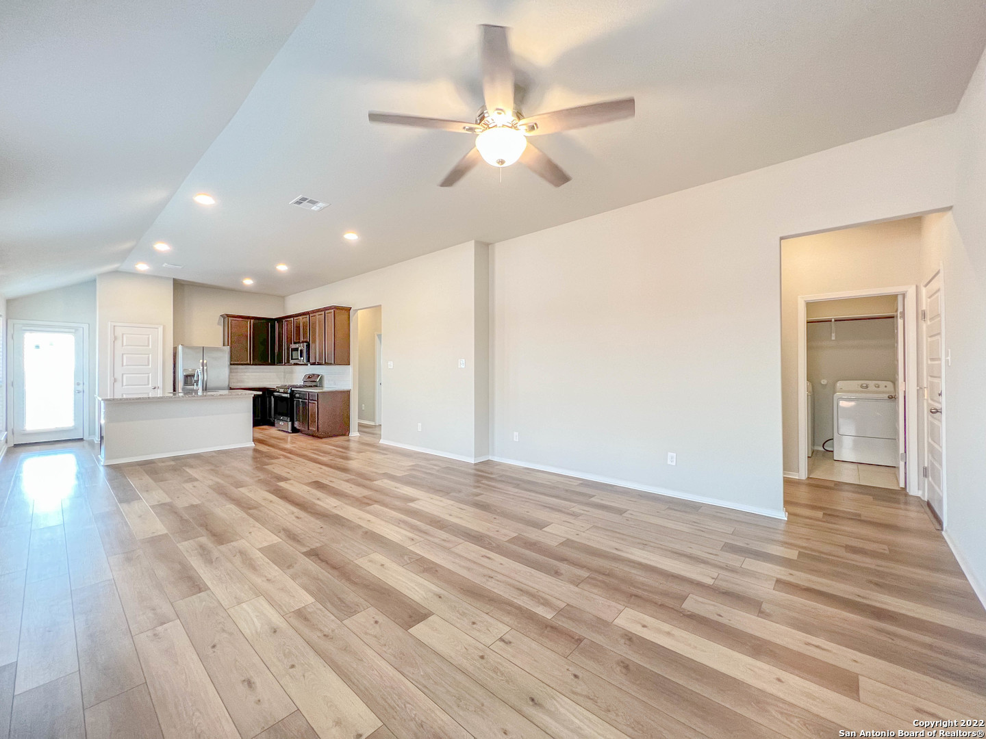 This amazing 3 bedroom, 2 bathroom brand new home is in a cozy San Marcos neighborhood! Nearby you'll find an array of different activities and new things to do including the outlet mall and Tejas Park! As you enter this lovely home, you're met with a large and bright living room that features elegant wood flooring, high ceilings, ceiling fans to keep the house cool in those hot months, neutral colors that are perfect for any style, and plenty of windows to allow in tons of natural light that make the home feel warm and inviting. The stylish kitchen is perfect for those who love to cook!! Features stylish dark wood cabinetry, plenty of counter/storage space, and stainless steel appliances that are just waiting for the home chef to create some delicious meals. Not to mention the stand-alone island!! The main bedroom features ample space, ceiling fans, and a lovely ensuite bathroom with refined wooden cabinetry, double vanity, and a nice tiled bathtub; perfect for relaxing after a long day at work!! Do not miss out on the spacious backyard! Ideal for having some friends over or hosting family on those joyous occasions!! It also has a washer and dryer included! This property is subject to a mandatory residents benefits package @ $45.95 a month. More information on the wonderful benefits included can be found in associated docs.