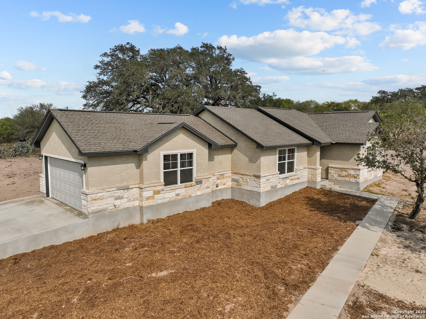 Explore the pinnacle of contemporary living in this new construction home by DAH Builders in Poteet, TX. Situated on a generous 1-acre lot, this residence showcases a luxurious primary bedroom with an ensuite bath, including a walk-in shower and a spacious walk-in closet. The open-concept living area is crafted for seamless entertaining, highlighting energy-efficient appliances, exquisite granite countertops, and chic shaker-style cabinets in the kitchen. Experience the tranquility of a rural setting while still being just 30 minutes from downtown San Antonio. (1 acre lot on a cul-de-sac)