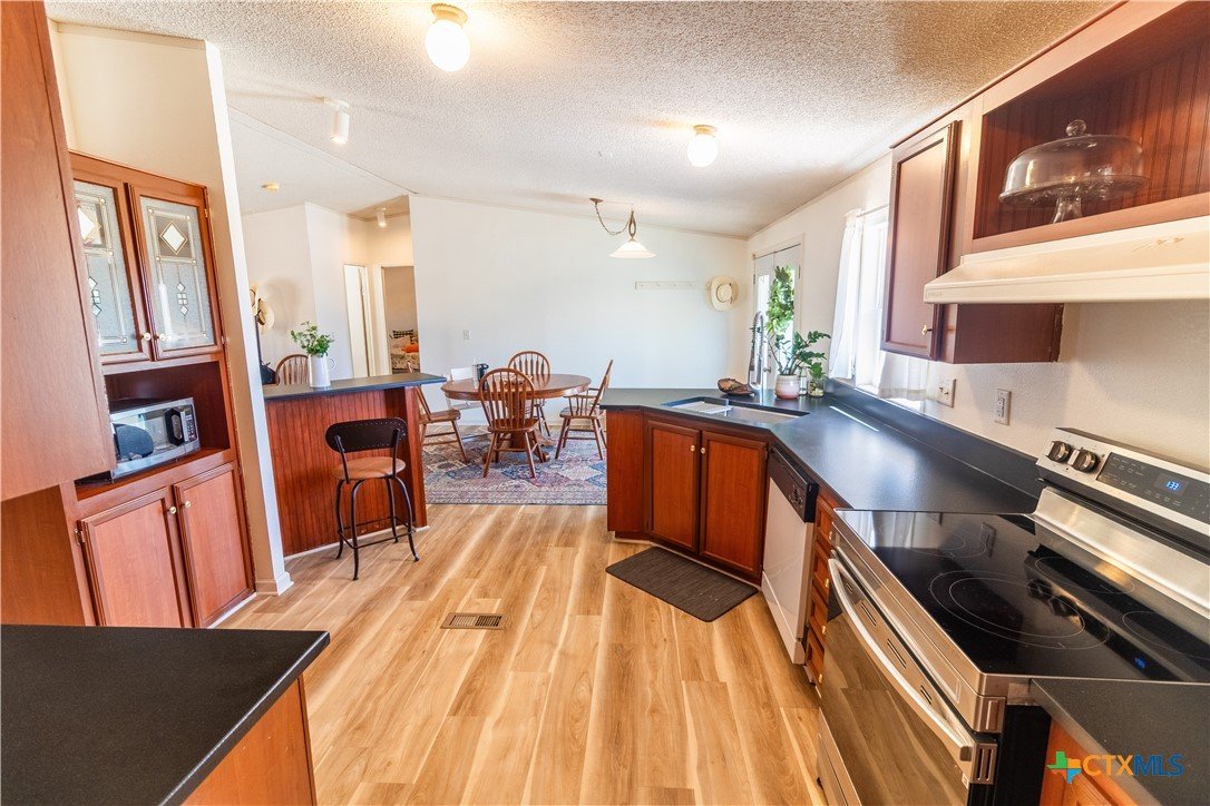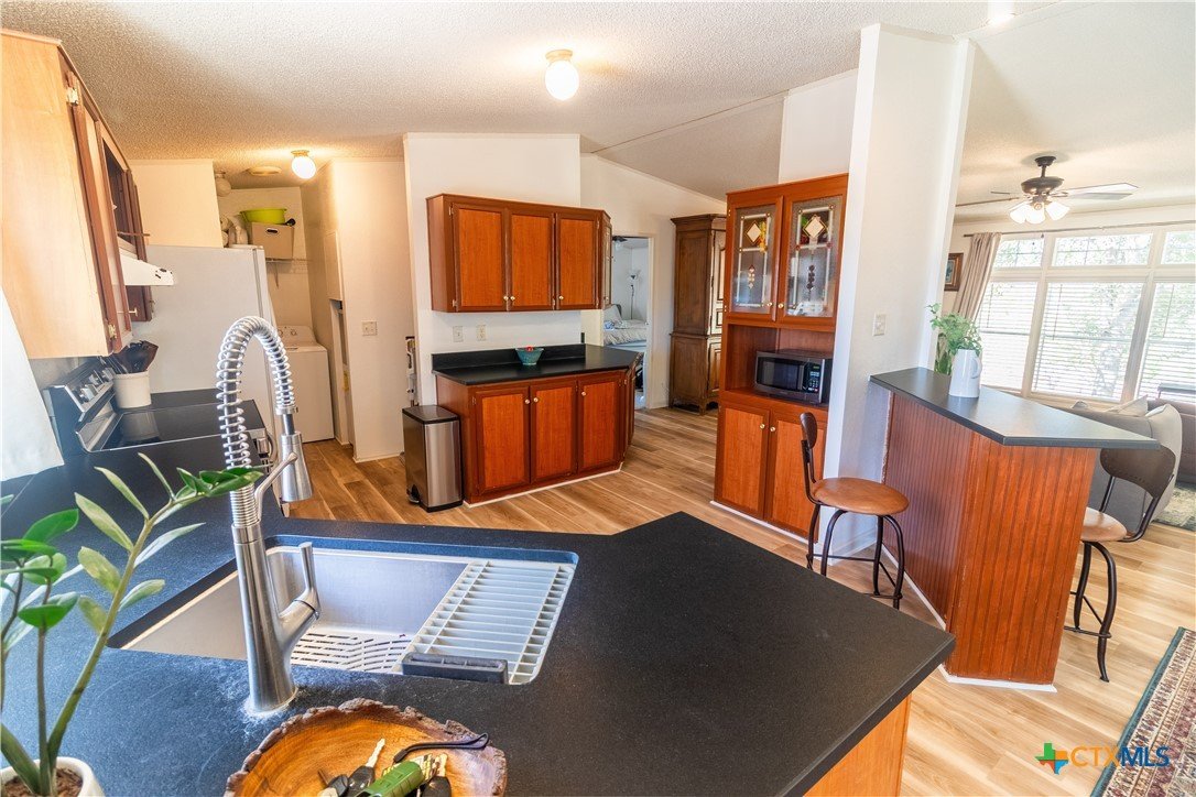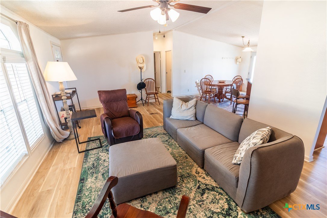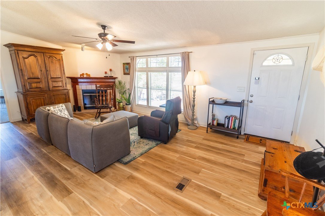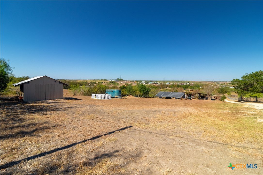 A stunning hilltop retreat offering panoramic country views and modern comfort across 5.13 acres of serene landscape. This beautifully maintained 3-bedroom, 2-bathroom, 1,458 sq. ft. home, built in 2003, perfectly balances peaceful rural living with convenient access to Lockhart, San Marcos, and Austin. Step inside to find an inviting open-concept floor plan featuring spacious living and dining areas, abundant natural light, and a cozy wood-burning fireplace that anchors the heart of the home. The kitchen offers generous counter space, modern appliances, and ample storage—ideal for both daily living and entertaining. The primary suite provides a private retreat with a walk-in closet and an en-suite bath, complete with a soaking tub and separate shower. Outdoors, enjoy breathtaking sunsets and wide-open skies from your expansive deck, or make use of the 20×16 workshop—perfect for projects, hobbies, or storage. The property’s fenced acreage offers plenty of room for animals, gardens, or future expansion. Energy-efficient solar panels add value and sustainability to this already exceptional home. Property features include a 12×24 pole barn suitable for tractor storage or use as a stall, a 20×20 stall, and an RV pad with full hookups—perfect for livestock, equipment, or guests traveling with an RV. Whether you’re seeking a peaceful homestead, a weekend getaway, or an investment opportunity, 250 Rocky Road captures the very best of Texas Hill Country living