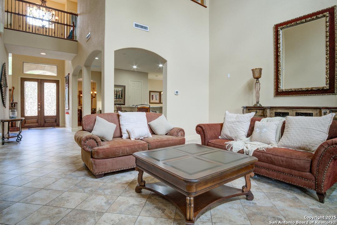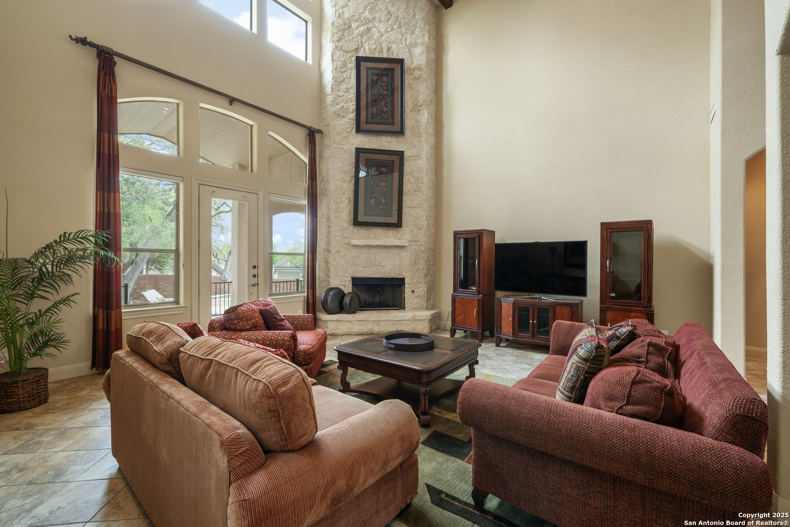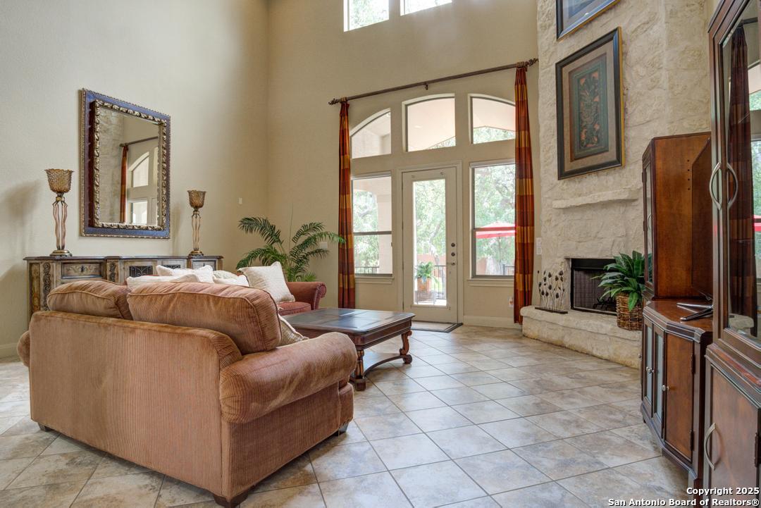 MOTIVATED SELLERS. THIS SPECTACULAR HOME IS LOCATED IN THE DESIRABLE ESTANCIA, A GATED COMMUNITY WITHIN THE GUARDED GATES OF THE HEIGHTS AT STONE OAK. IT FEATURES 4 BEDROOMS PLUS A STUDY & 5 FULL BATHS. PRIVATE COURTYARD ENTRY. HUGE FAMILY ROOM WITH NATURAL STONE FIREPLACE. TALL ARCHITECTURALLY DESIGNED CEILING WITH CROWN MOLDING. DOWNSTAIRS PRIMARY BEDROOM SUITE WITH LUXURIOUS BATH AND A LARGE CLOSET. NO CARPET FOR EASY MAINTENANCE. RELAX IN THE SPARKLING POOL & HOT TUB. ENJOY A PEACEFUL BACK YARD AND A NICE COVERED PATIO, GREAT FOR ENTERTAINING & FAMILY GATHERINGS. EXCELLENT SCHOOLS. A MUST SEE!
