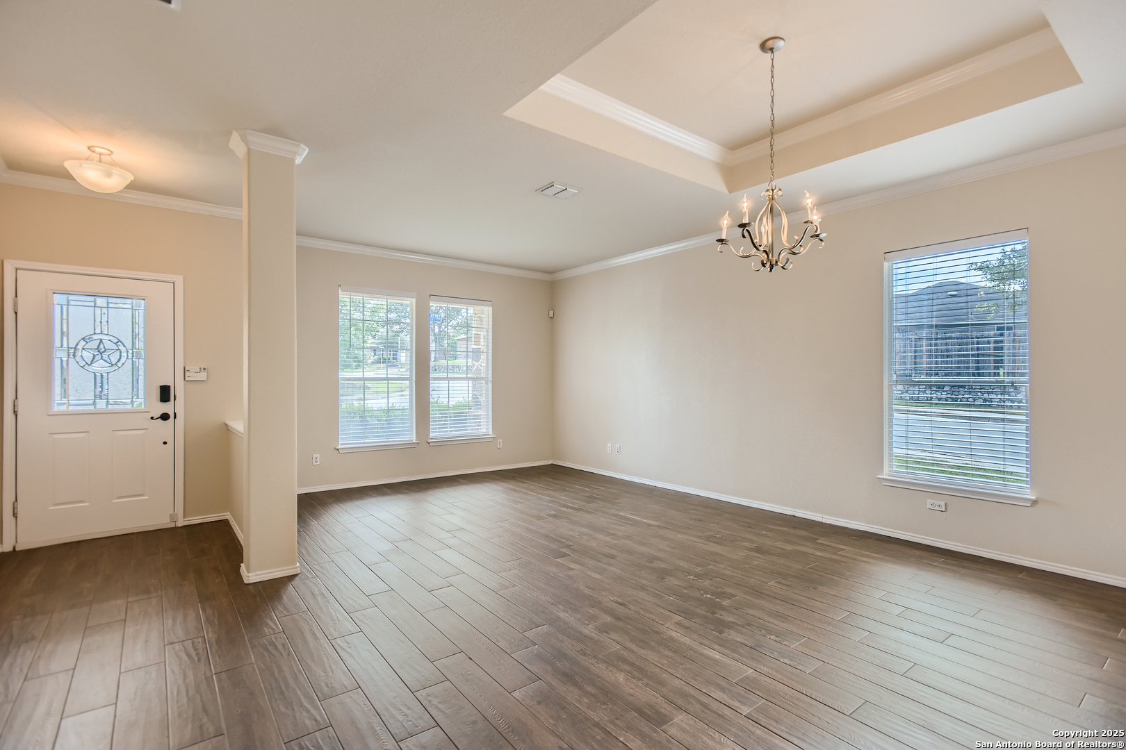 This beautiful home features 4 bedrooms, 2.5 bathrooms and is located on a corner lot! The primary bedroom is downstairs along with a half bath and two living rooms. Upstairs you will find the other 3 bedrooms and a massive loft/game room area. As you step outside, you will find a great sunroom overlooking your pool! Perfect for get togethers and cooling off in the summer months! Pool service is included. Room sizes are approximate.