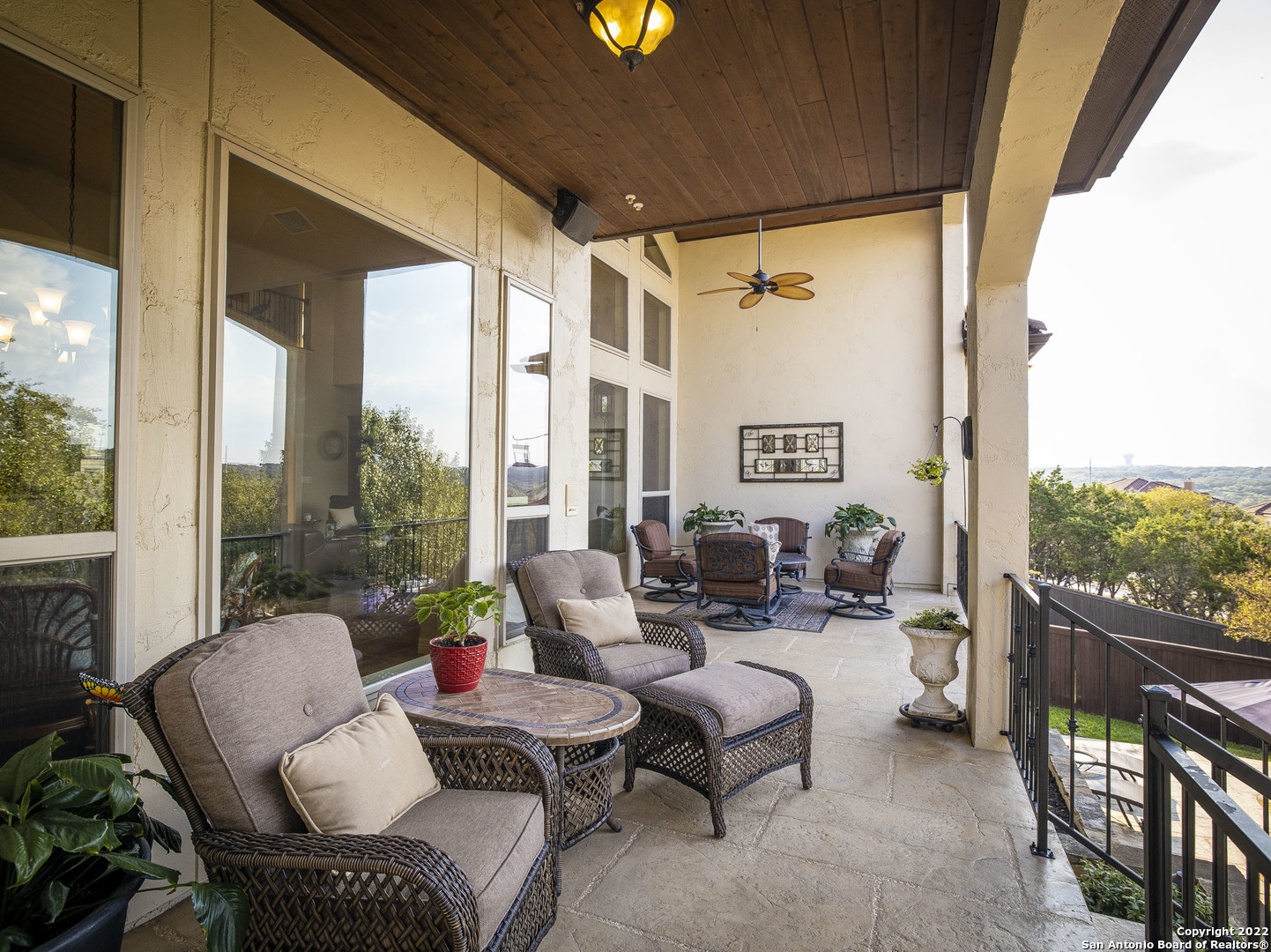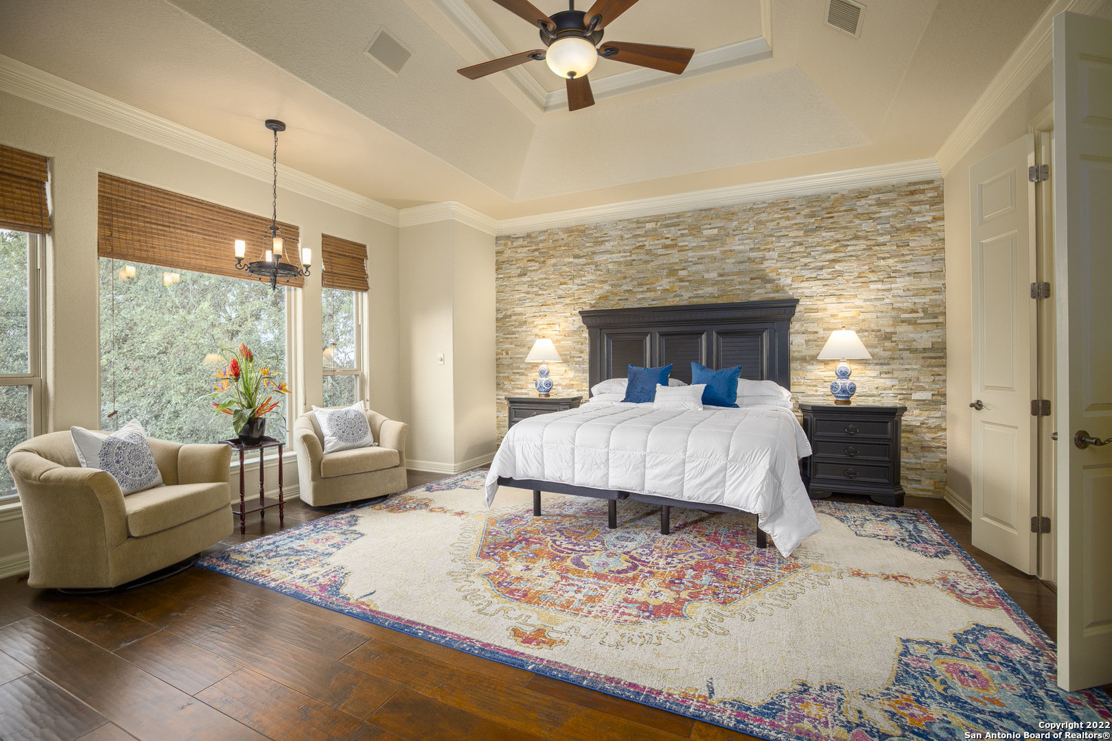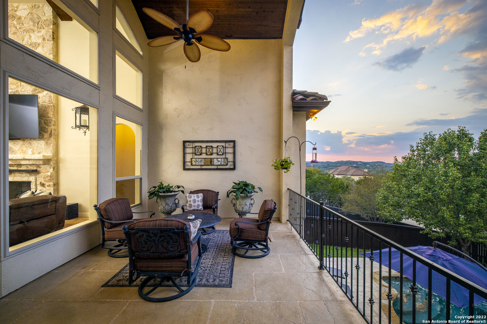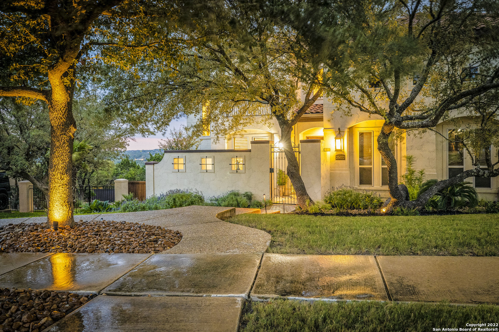Desirable Canyon Springs offering this Beautiful Sanctuary... Mediterranean TX Hill Country Home including Wonderful Hill Country VIEWS...Great schools and NO City taxes! Master Bedroom, Secondary Bedroom and Study downstairs. Hand troweled walls, 5" Hand Scraped Hardwood and tile throughout first floor, Stacked Ledger Stone Accent Walls, Central Vac, Luxury Appliance Pkg including Double Ovens, Induction Stove Top and Valhalla Granite Counter Tops. Secluded backyard Oasis with Pool, Spa, Water Features, Ou