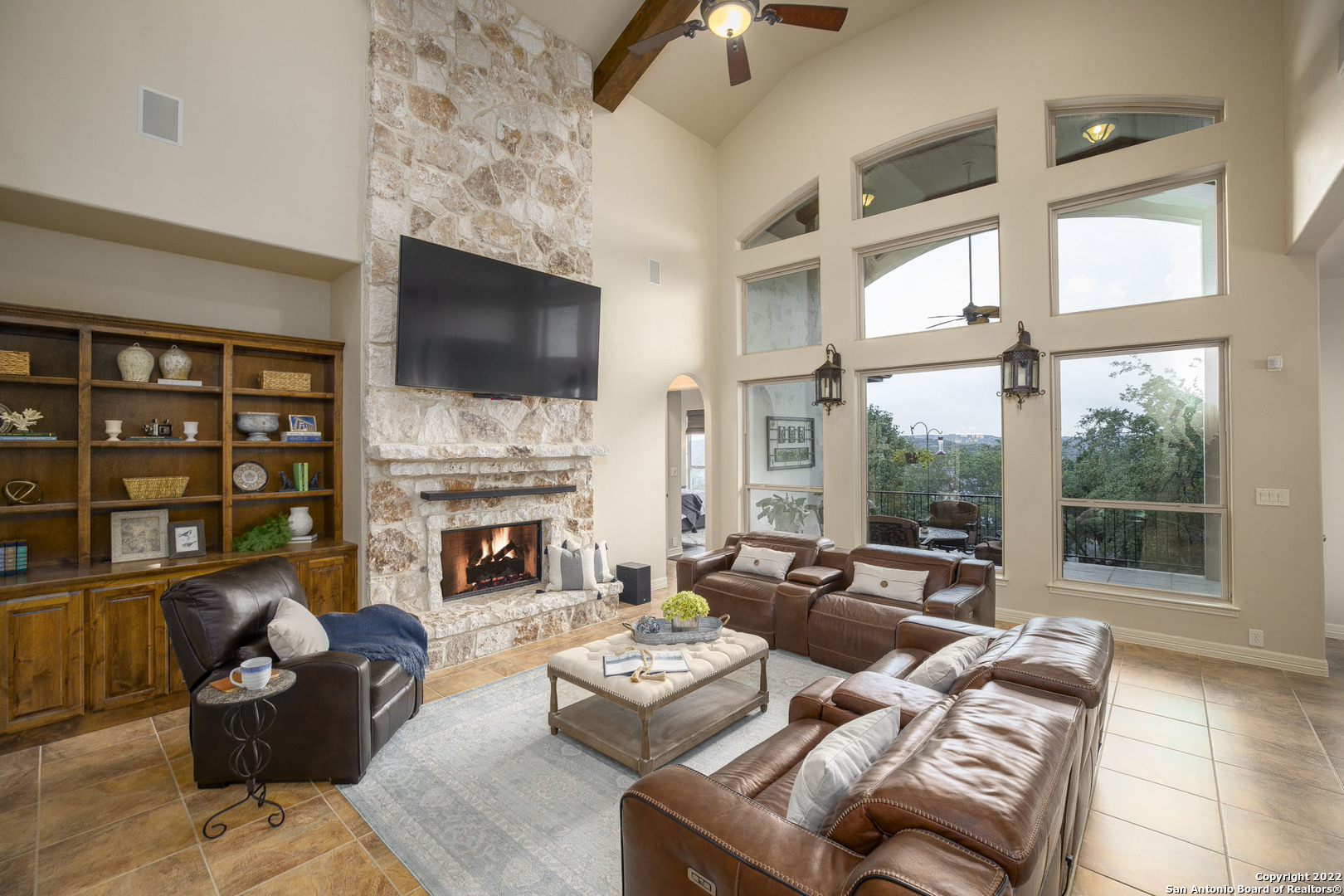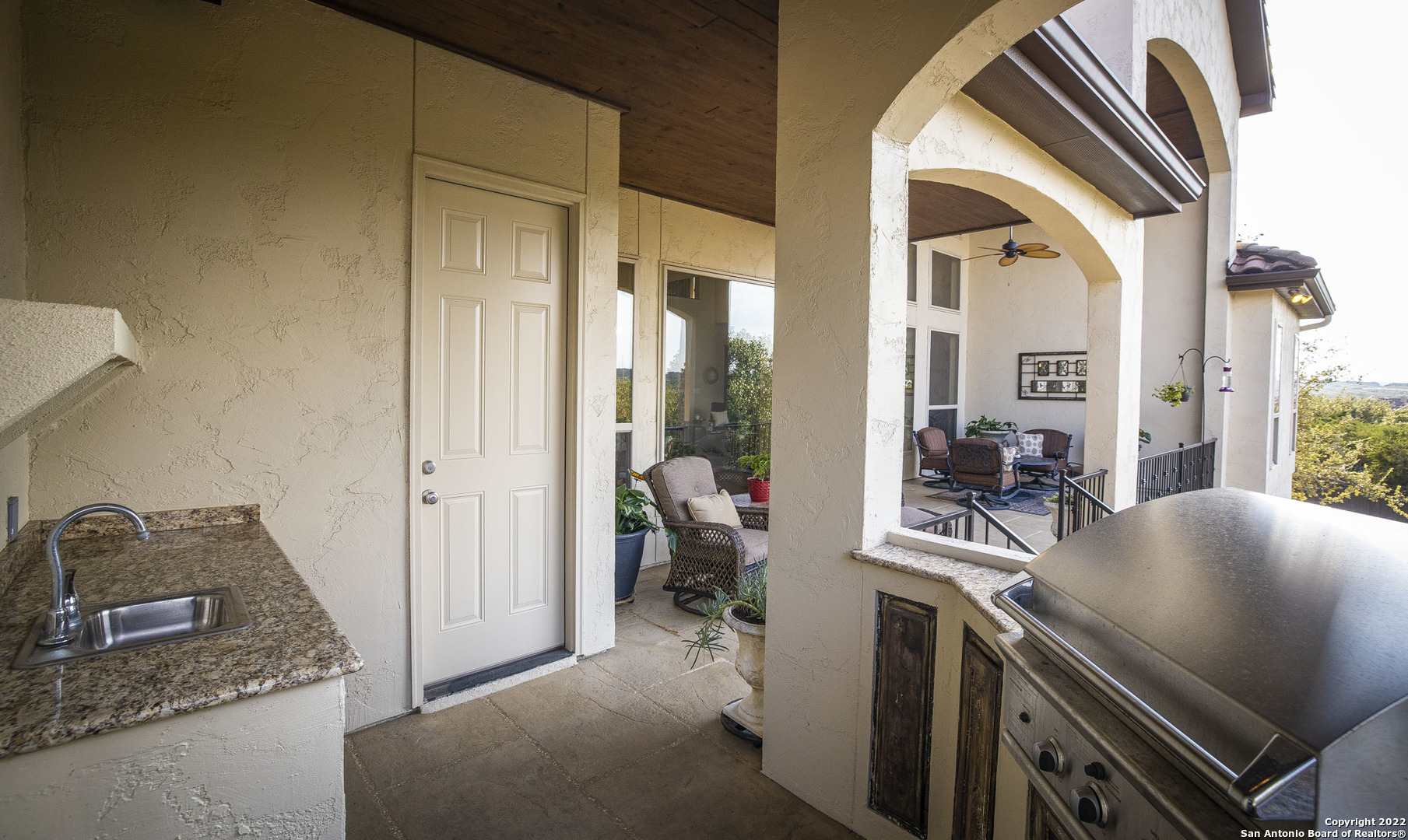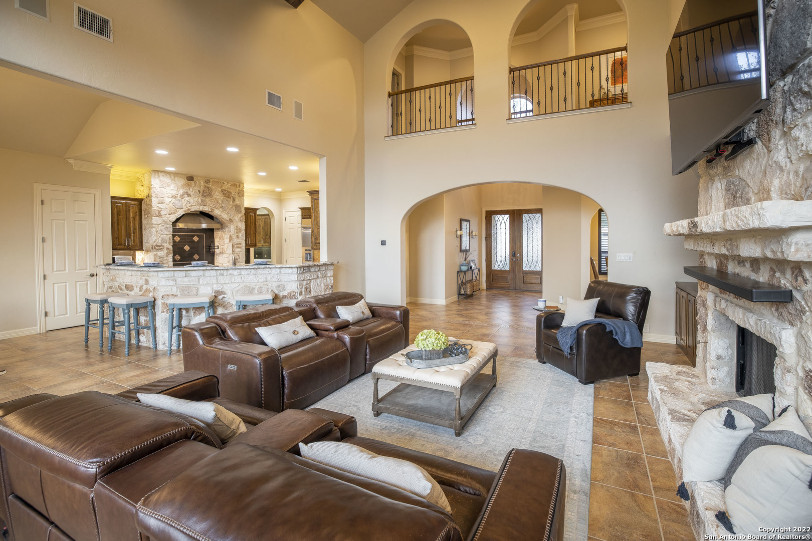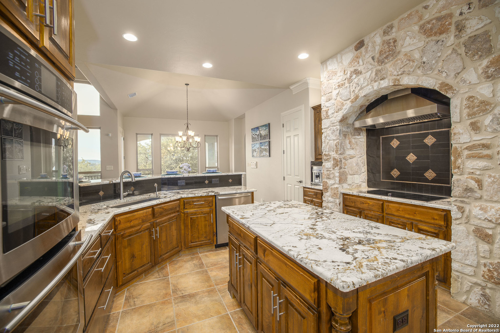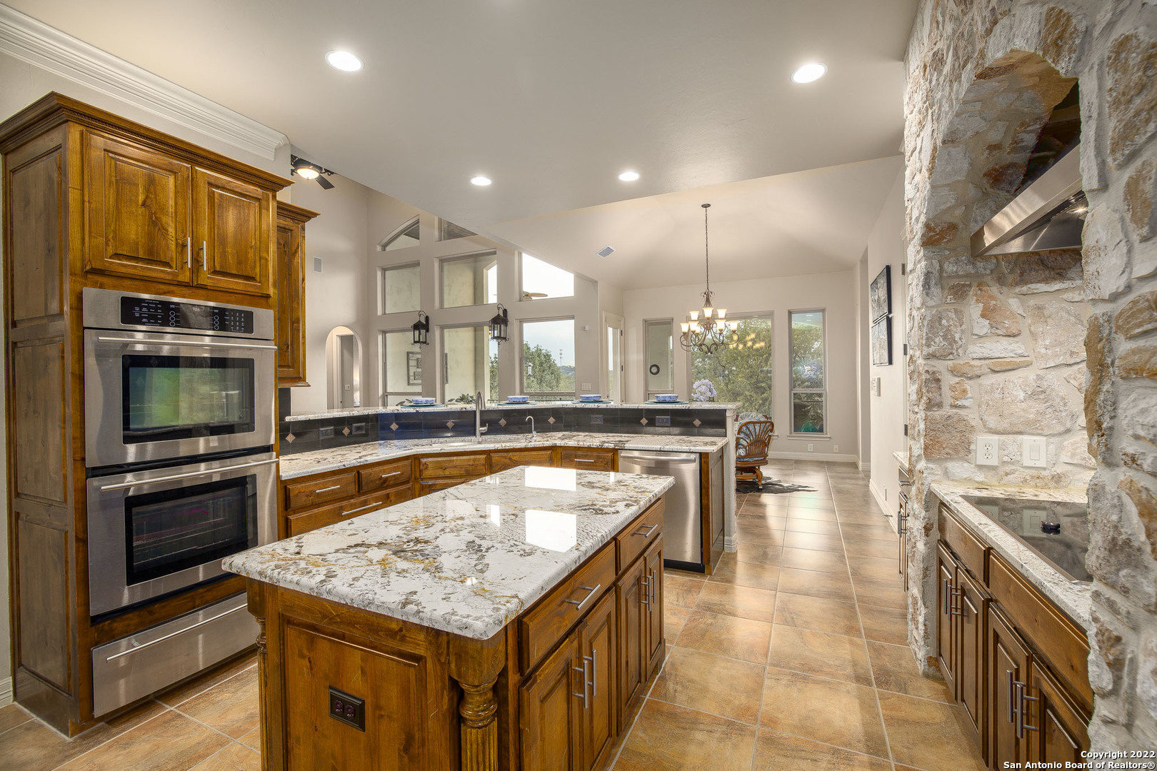 Desirable Canyon Springs offering this Beautiful Sanctuary... Mediterranean TX Hill Country Home including Wonderful Hill Country VIEWS...Great schools and NO City taxes! Master Bedroom, Secondary Bedroom and Study downstairs. Hand troweled walls, 5" Hand Scraped Hardwood and tile throughout first floor, Stacked Ledger Stone Accent Walls, Central Vac, Luxury Appliance Pkg including Double Ovens, Induction Stove Top and Valhalla Granite Counter Tops. Secluded backyard Oasis with Pool, Spa, Water Features, Ou