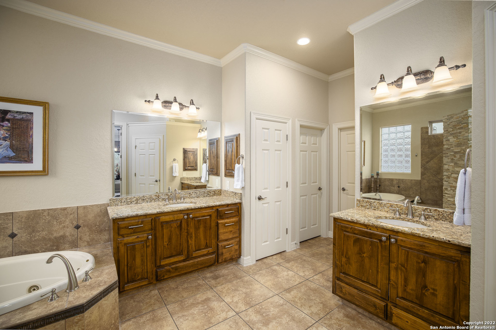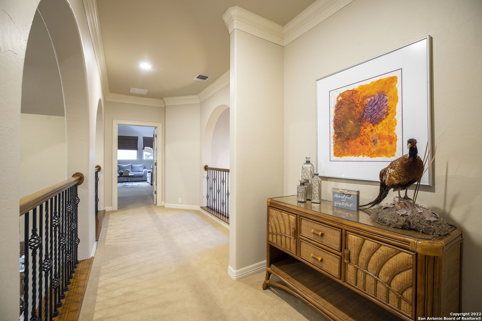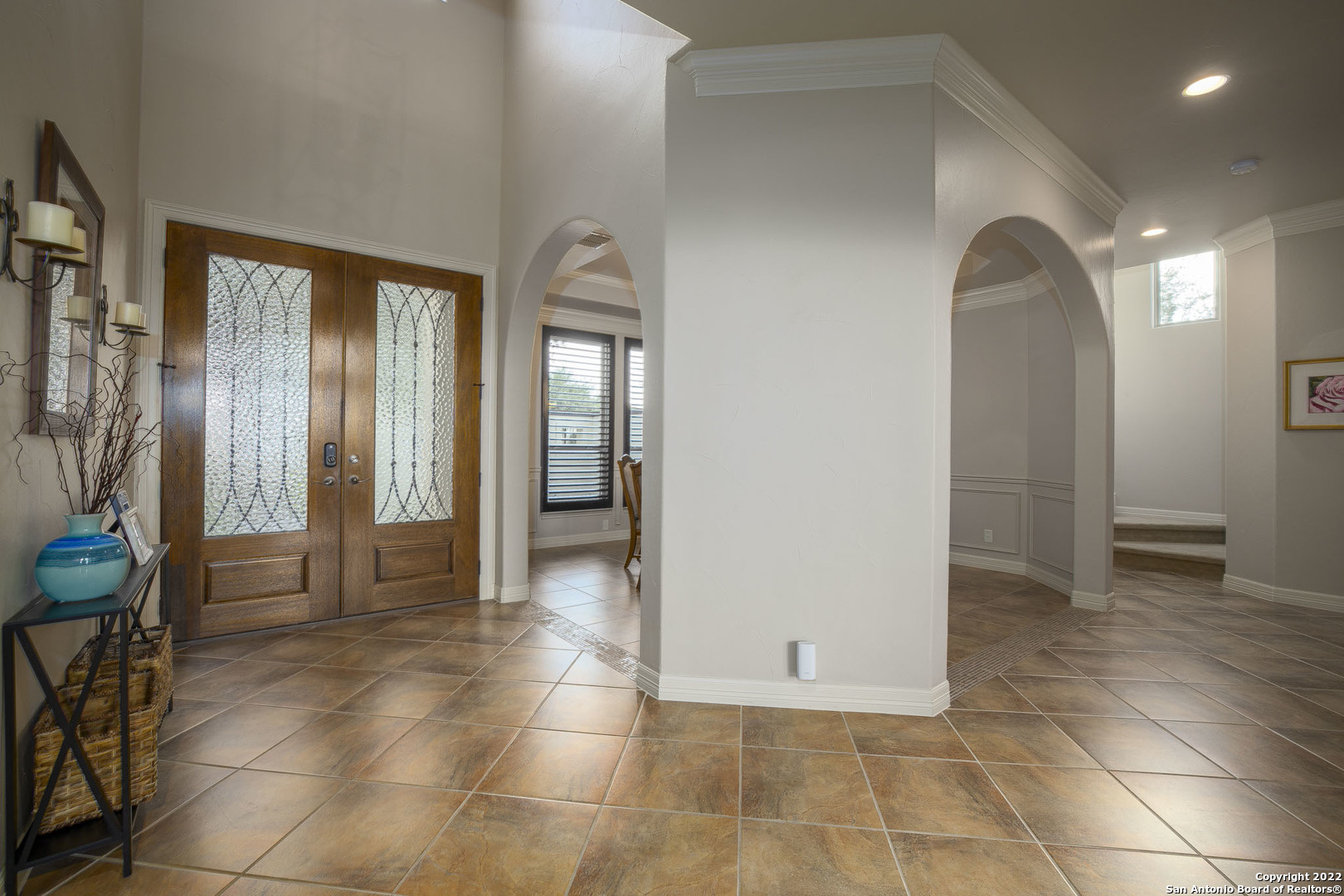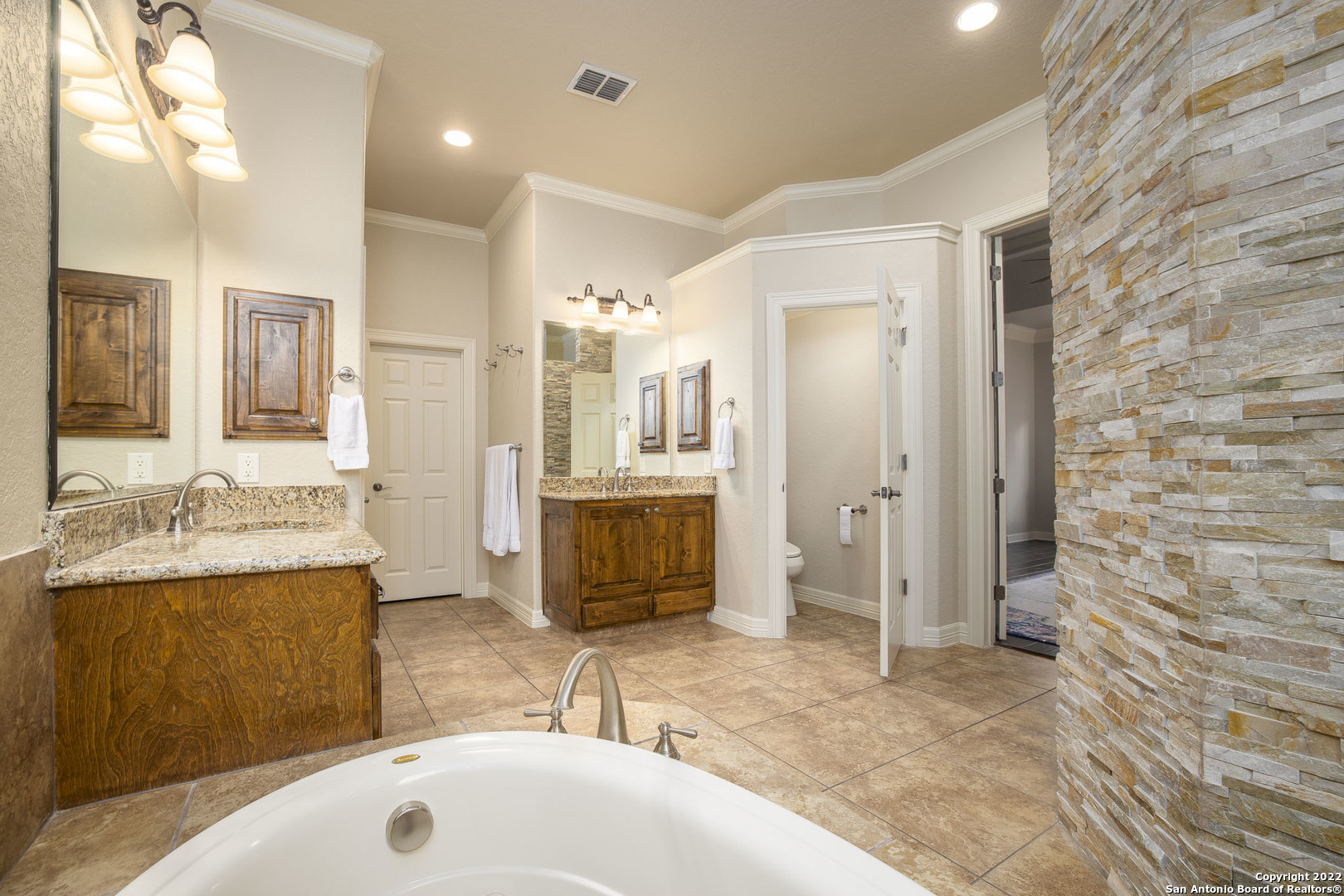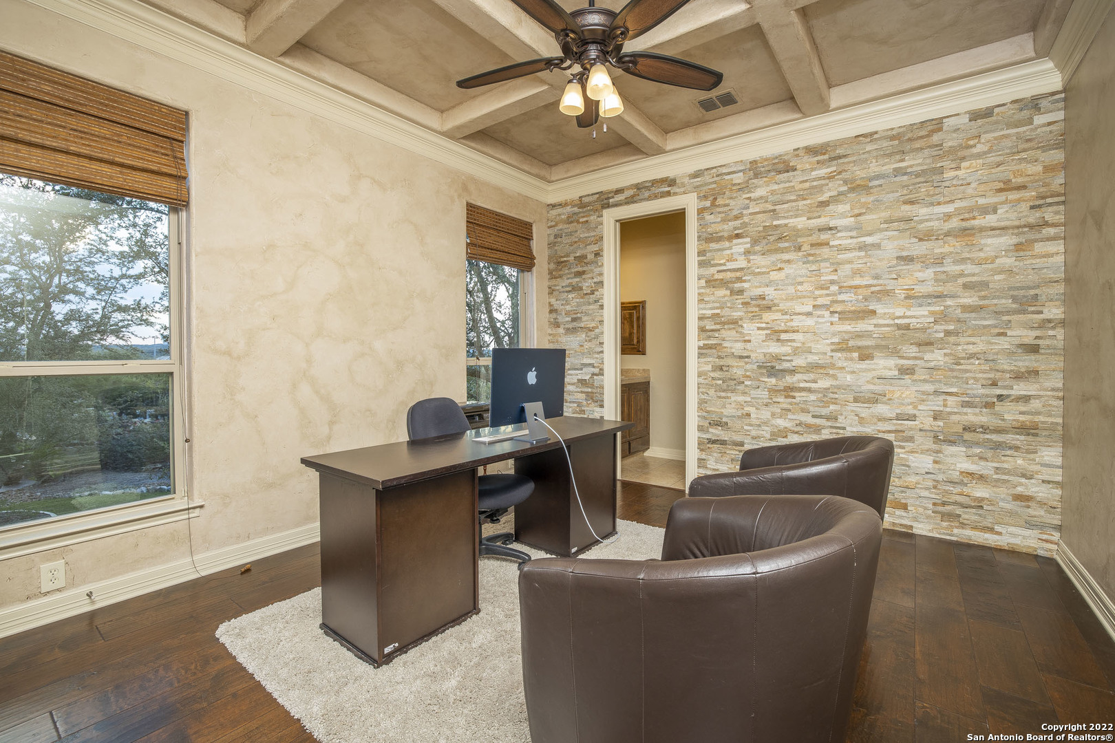 Desirable Canyon Springs offering this Beautiful Sanctuary... Mediterranean TX Hill Country Home including Wonderful Hill Country VIEWS...Great schools and NO City taxes! Master Bedroom, Secondary Bedroom and Study downstairs. Hand troweled walls, 5" Hand Scraped Hardwood and tile throughout first floor, Stacked Ledger Stone Accent Walls, Central Vac, Luxury Appliance Pkg including Double Ovens, Induction Stove Top and Valhalla Granite Counter Tops. Secluded backyard Oasis with Pool, Spa, Water Features, Ou