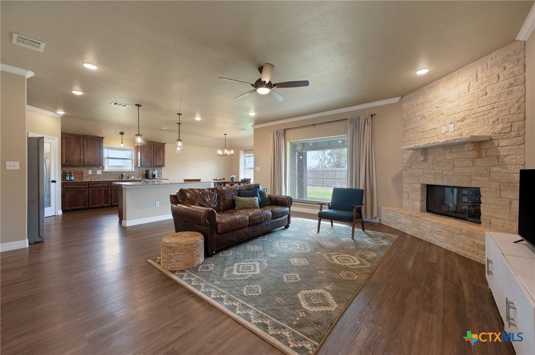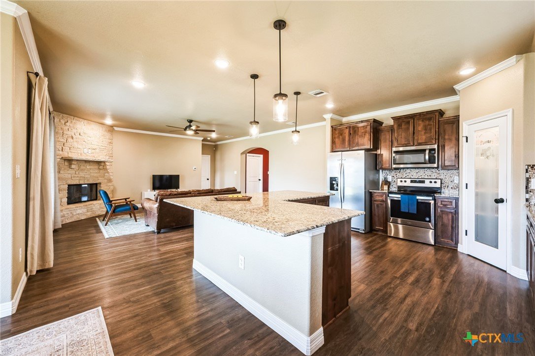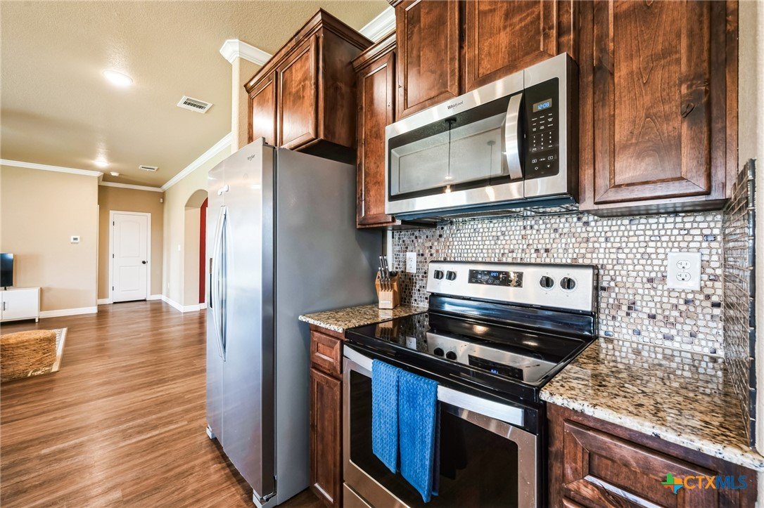 Welcome to your new home at 2503 Paisley Drive in the vibrant West Temple Community! This charming 4-bedroom, 2-bathroom gem is perfectly positioned on a desirable corner lot, offering both privacy and a touch of grandeur. Step inside to discover an inviting open-concept layout, where the heart of the home is a very large L-shaped kitchen island that's perfect for entertaining or casual meals. The kitchen comes fully equipped with a refrigerator, and you'll also enjoy the convenience of an included washer and dryer. One of the secondary bedrooms is enhanced with a mini split unit, ensuring personalized climate control for optimal comfort. The large and open-concept living area is anchored by a beautiful stone fireplace and large picture window, which looks into the large covered patio and private back yard. Outside, you’ll find a separate fenced dog run, providing a great space for your four-legged friends to play safely along with a dog door to give them the freedom to come and go. The home is priced competitively, making it a fantastic opportunity for those looking to settle in a welcoming community. Whether you're hosting friends or enjoying a quiet evening in, this home offers versatility and comfort. Don't miss the chance to make it yours!