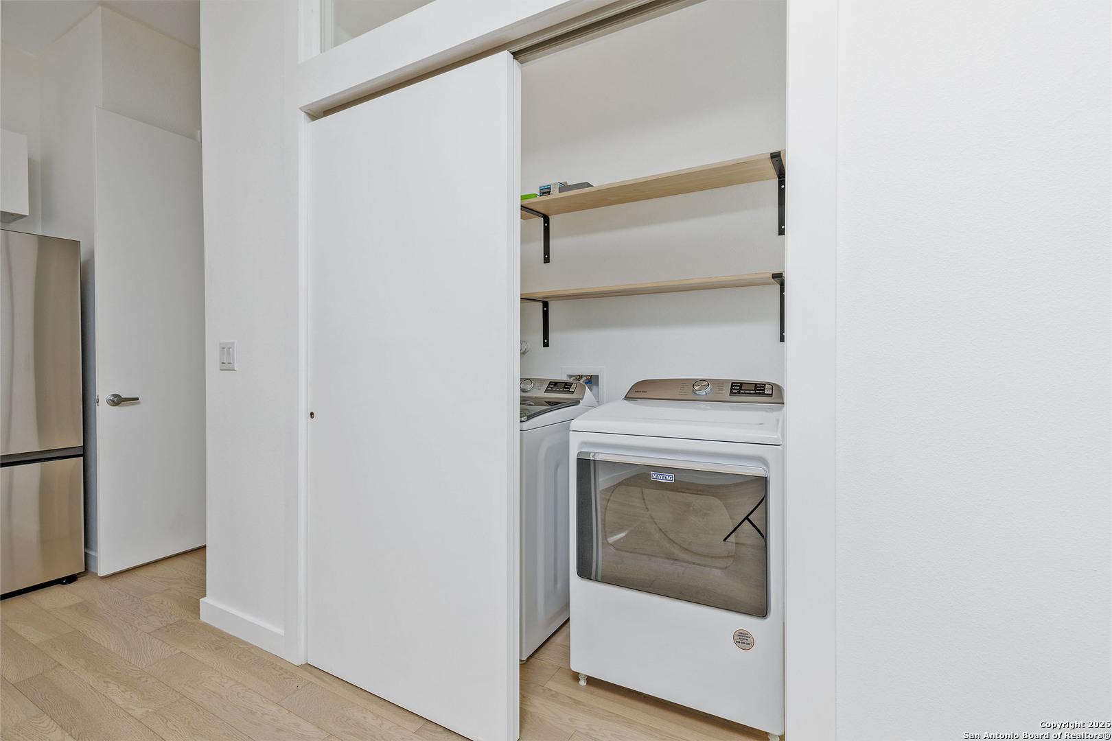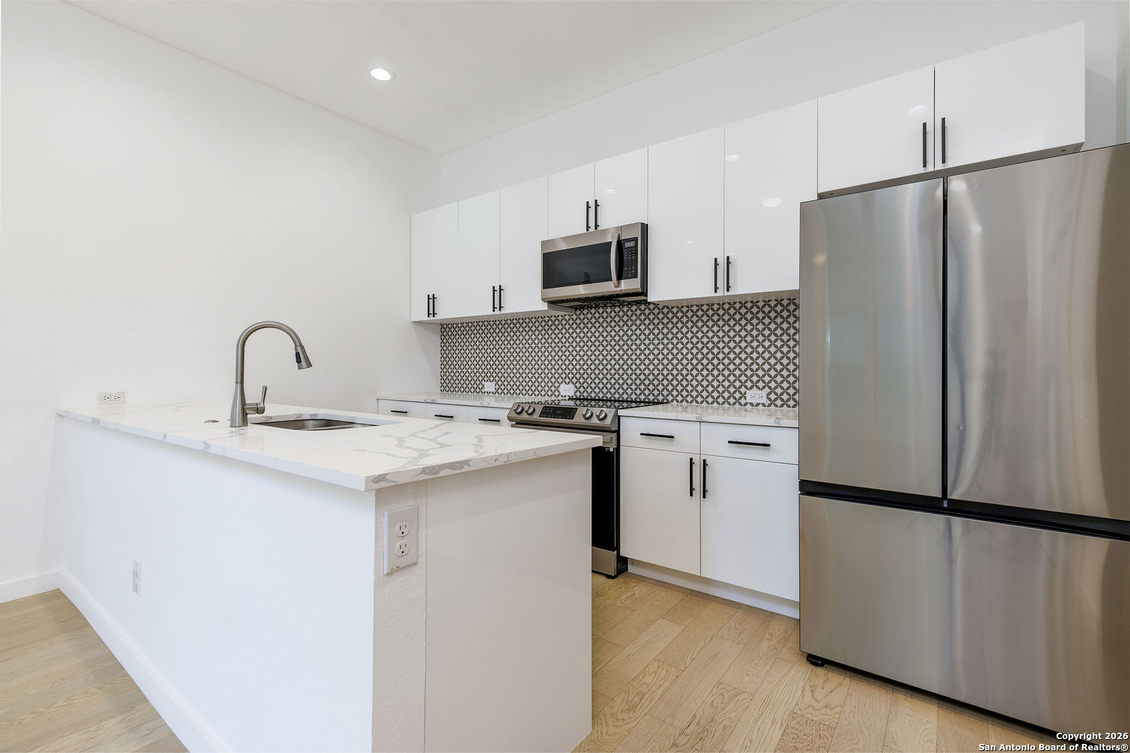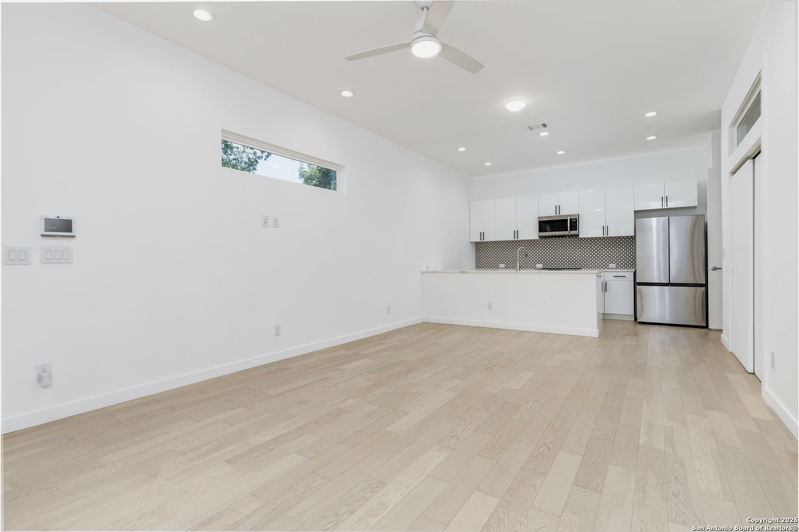 Hey you, yes you, this is the one that you need to stop scrolling for. This beautiful contemporary home has everything that you need to get started. The location of this amazing home is mere minutes away from downtown SA and well within walking distance to many prominent landmarks here in the Alamo City. Vaulted ceilings, luxury vinyl flooring, 2" Faux wood blinds, and double pane windows are some of the first features that you see when entering this home. Approaching the kitchen, the glance of the stainless steel appliances accompanied by the quartz countertops, and the soft closing cabinets will make you fall in love. Don't have a refrigerator to bring with you when you move into this home? No worries. This fully stacked almost new refrigerator is there to meet your needs. The barely used washer and dryer will also remain with the home. These appliance additions alone will save you thousands of dollars! Make your way upstairs and you will have a flex room that you can utilize as a office space, game room, 2nd living area, or whatever other idea you can up with for that space. The primary bedroom has a walk in closet and also boasts a bathroom that will wow you. A double vanity and an expanded tiled shower will meet all of your beauty and hygienic needs. Journey into the garage area and you will view the shiny epoxy floor that is not seen too often. This one is also plumbed for a water softener which is basically a necessity here in the San Antonio area. The backyard provides a great space for a hammock, a BBQ pit, and patio furniture to enjoy and place on your wooden deck. Entry level or experienced investors, this is a great property to add to your Air BNB portfolio that is in a very desired location for tourists. Make the time to see this MUST see home in the heart of the Alamo City.