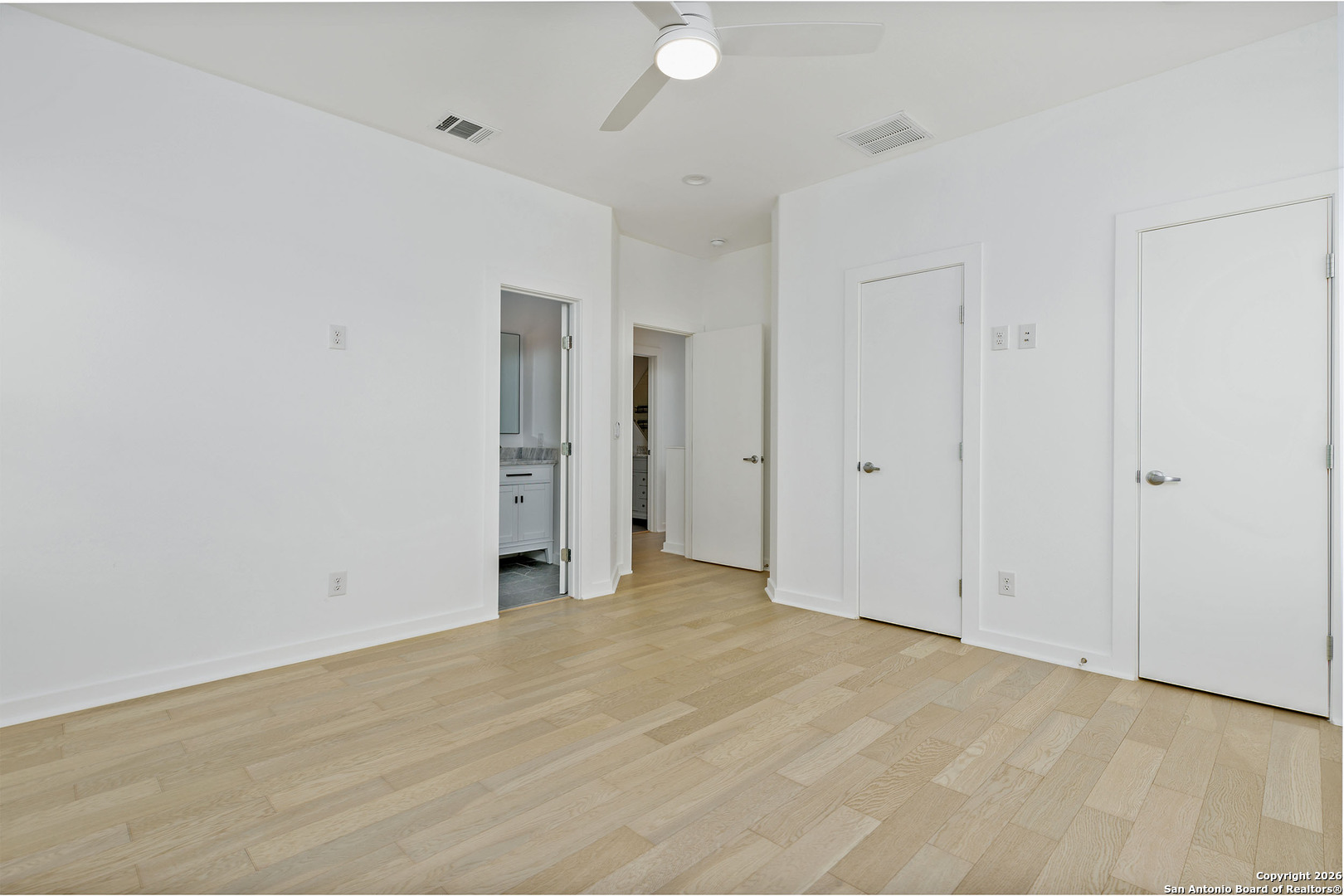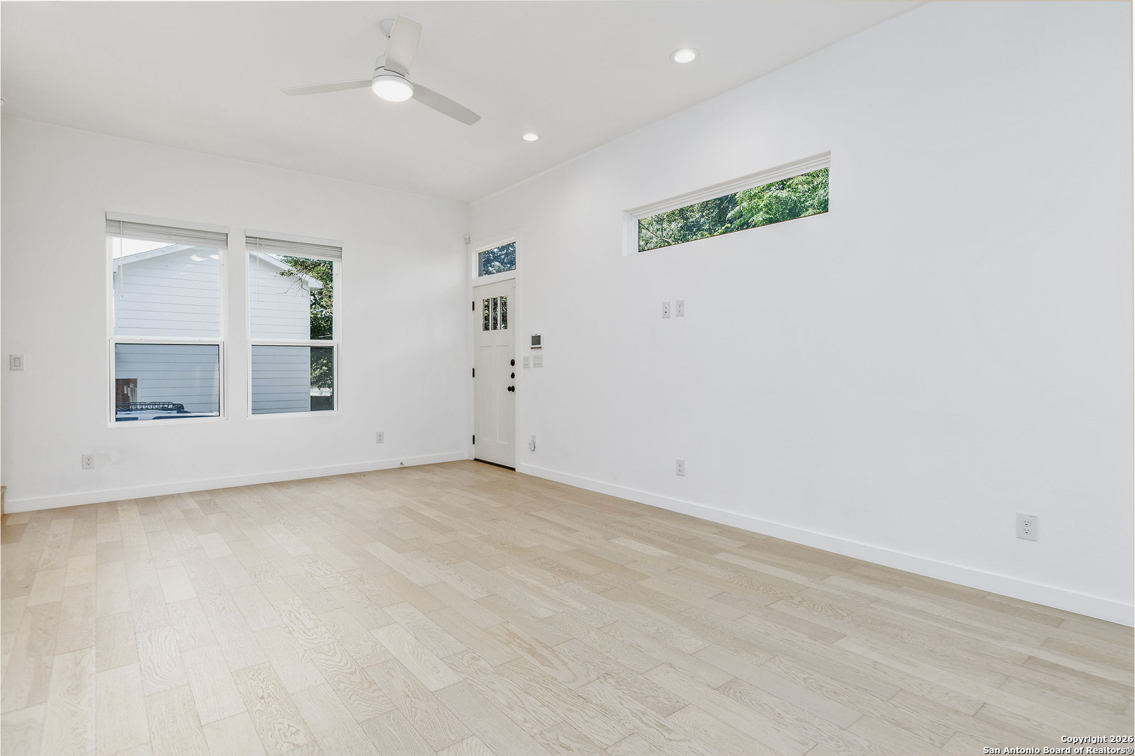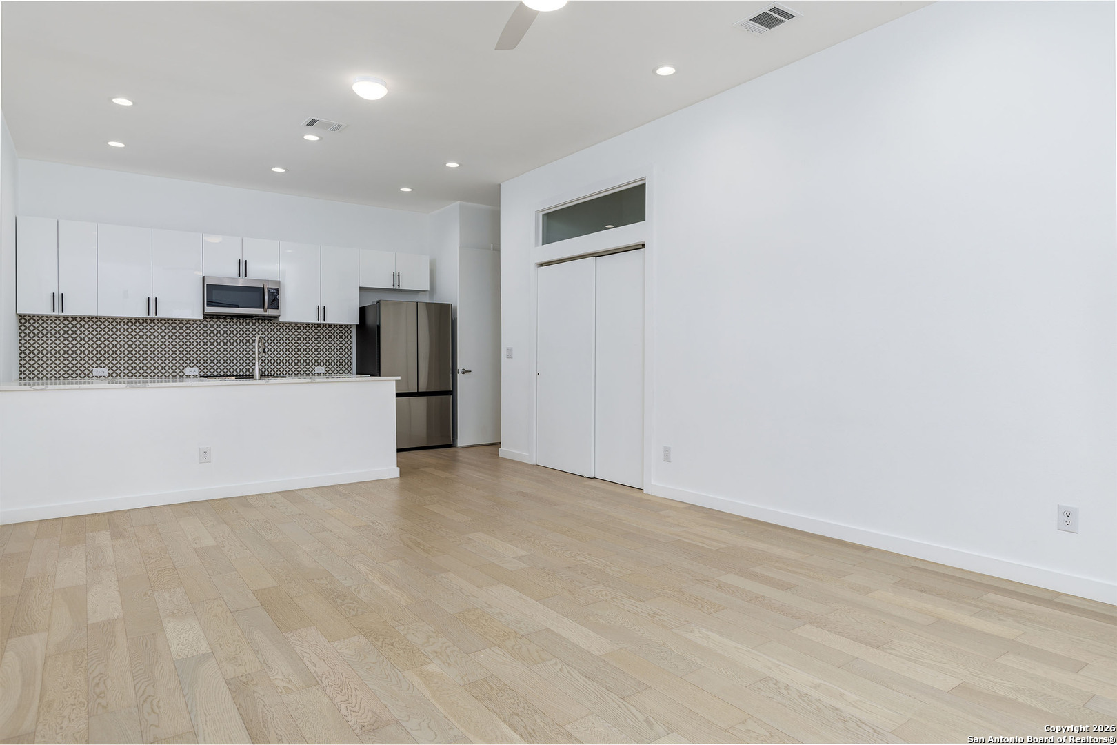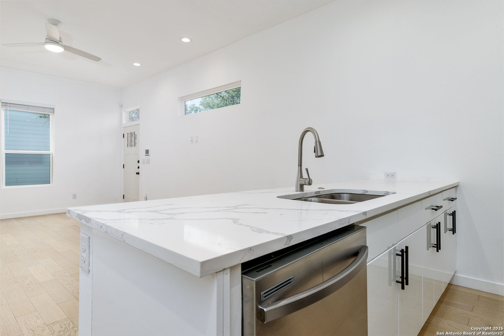 Hey you, yes you, this is the one that you need to stop scrolling for. This beautiful contemporary home has everything that you need to get started. The location of this amazing home is mere minutes away from downtown SA and well within walking distance to many prominent landmarks here in the Alamo City. Vaulted ceilings, luxury vinyl flooring, 2" Faux wood blinds, and double pane windows are some of the first features that you see when entering this home. Approaching the kitchen, the glance of the stainless steel appliances accompanied by the quartz countertops, and the soft closing cabinets will make you fall in love. Don't have a refrigerator to bring with you when you move into this home? No worries. This fully stacked almost new refrigerator is there to meet your needs. The barely used washer and dryer will also remain with the home. These appliance additions alone will save you thousands of dollars! Make your way upstairs and you will have a flex room that you can utilize as a office space, game room, 2nd living area, or whatever other idea you can up with for that space. The primary bedroom has a walk in closet and also boasts a bathroom that will wow you. A double vanity and an expanded tiled shower will meet all of your beauty and hygienic needs. Journey into the garage area and you will view the shiny epoxy floor that is not seen too often. This one is also plumbed for a water softener which is basically a necessity here in the San Antonio area. The backyard provides a great space for a hammock, a BBQ pit, and patio furniture to enjoy and place on your wooden deck. Entry level or experienced investors, this is a great property to add to your Air BNB portfolio that is in a very desired location for tourists. Make the time to see this MUST see home in the heart of the Alamo City.
