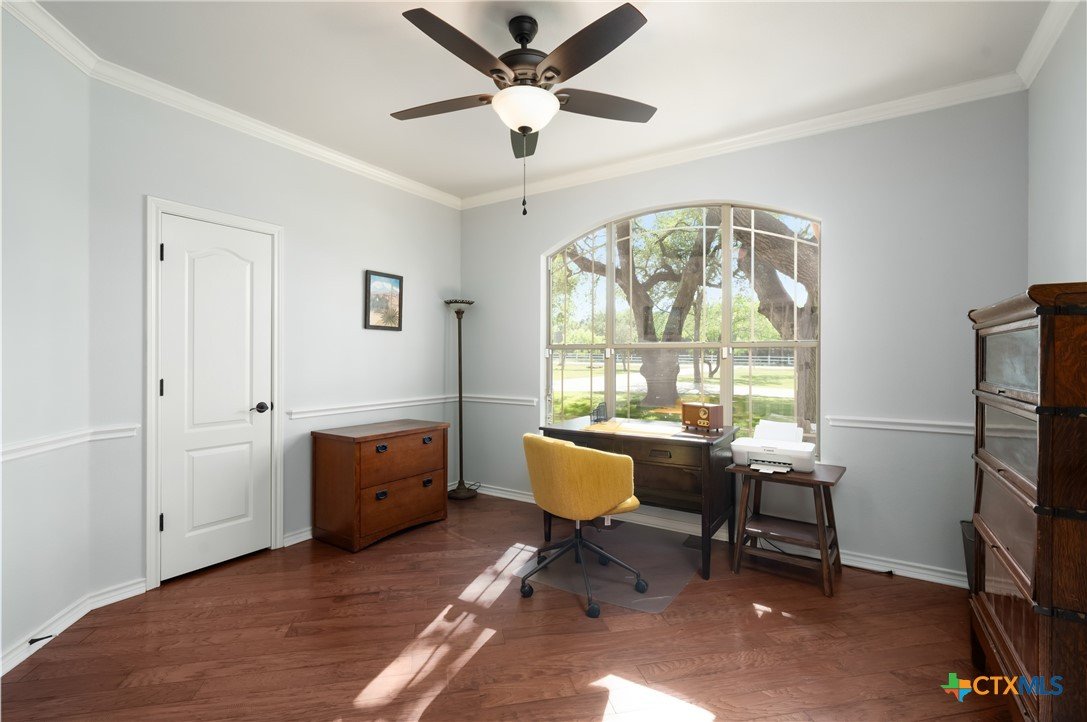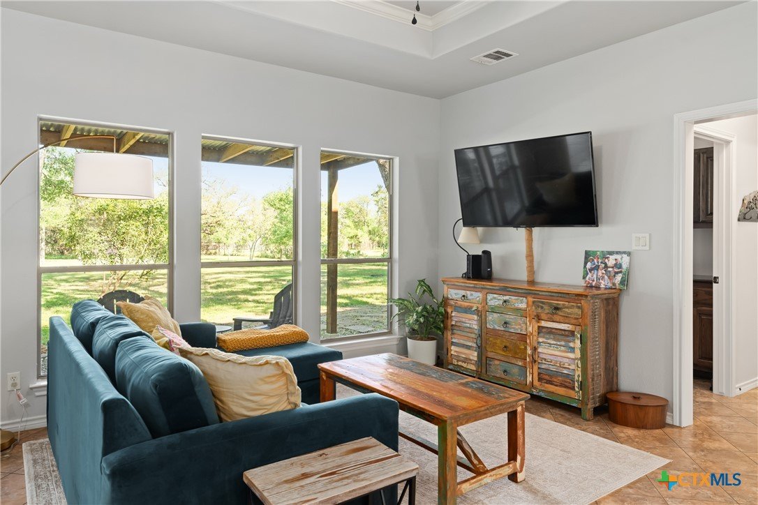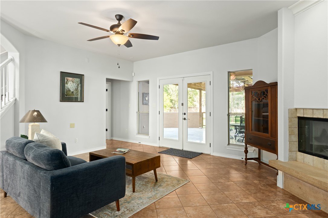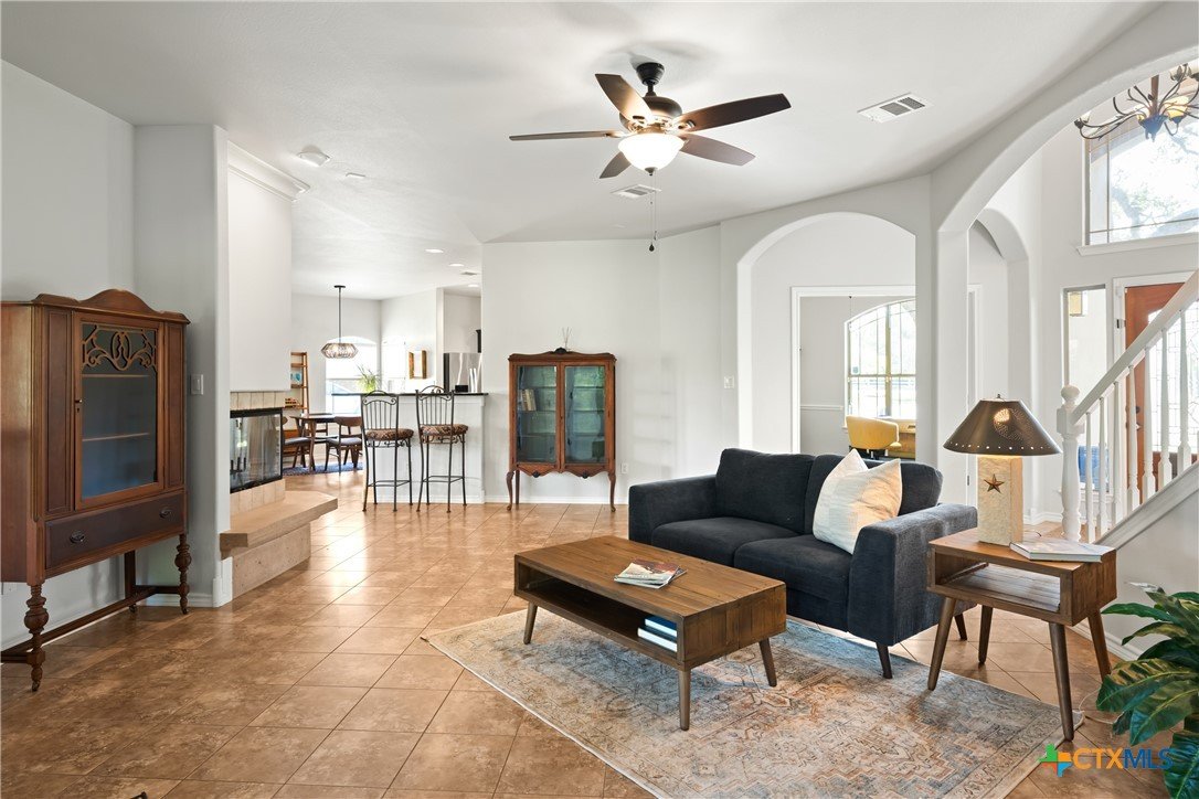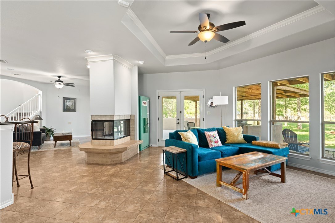 ** OWNER WILL CONSIDER FINANCING*** Nestled on a spacious one-acre lot in the coveted Willow Creek Estates community of San Marcos, this beautifully crafted home offers 3 bedrooms plus a study, 2.5 bathrooms, and a perfect blend of luxury, comfort, and functionality. Step inside to soaring ceilings and warm tile flooring that flows throughout the main living areas. A striking see-through glass fireplace gracefully separates the inviting living room from the formal dining area, creating an open yet cozy ambiance. The chef-inspired kitchen is a culinary dream, featuring a large island with a built-in beverage cooler, double ovens, and a generous walk-in pantry. The oversized primary suite is located on the main level and showcases bay windows with serene views of the private backyard, along with a spa-like ensuite bath. Also on the main floor is a dedicated executive office with a closet—perfect as a work-from-home space or optional fourth bedroom. Upstairs, two spacious secondary bedrooms are connected by a Jack-and-Jill bathroom, ideal for family or guests. Out back, an expansive covered patio invites you to entertain, dine, or simply relax year-round. The cleared backyard is dotted with beautiful, mature trees, offering shade and endless possibilities for customization. A stunning oak tree graces the front yard, creating a grand and welcoming first impression. Perfectly positioned between Austin and San Antonio, this home provides easy access to the best of both cities. Spend weekends floating, fishing, or paddling on the San Marcos River—or enjoy world-class shopping at the nearby San Marcos Outlet Malls.