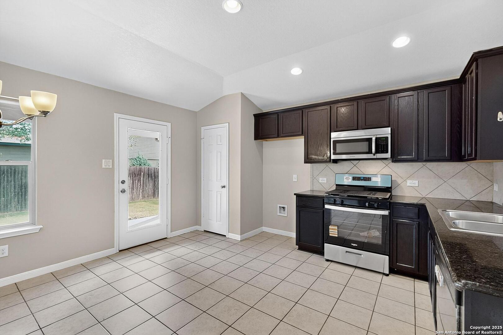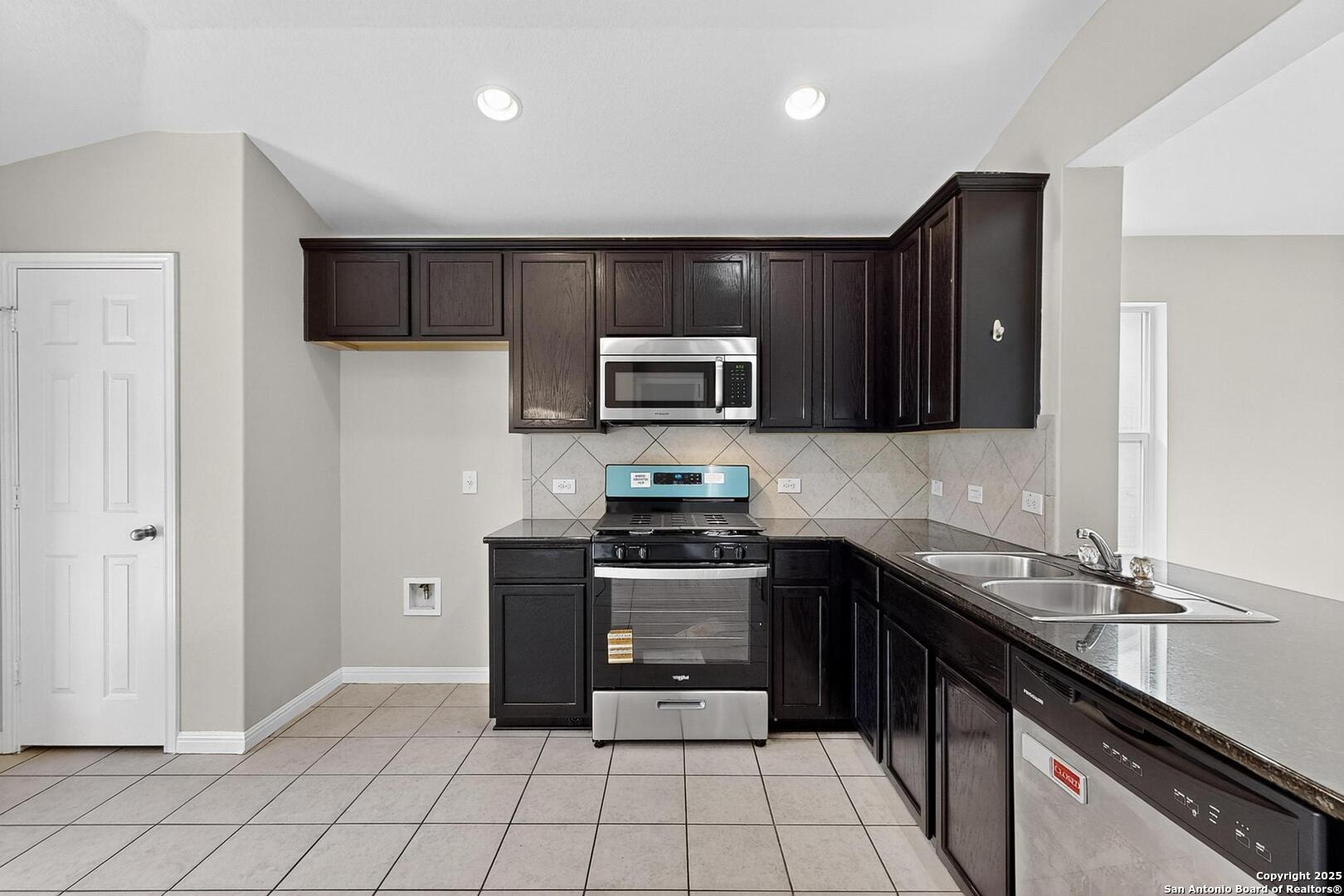 Move in ready single story that features 4 bedrooms with 2 bathrooms. Walk in and feel welcome into this open concept living/dining concept. Ceramic tile in main living areas with carpet in the bedrooms. Kitchen features stainless steel appliances, gas cooking, granite counter tops, and recessed lighting. Enjoy the privacy of your master bedroom with full bath having separate tub and shower. Fourth bedroom could be used as a great office space, too! Covered patio is ready for those cool summer nights. Nestl