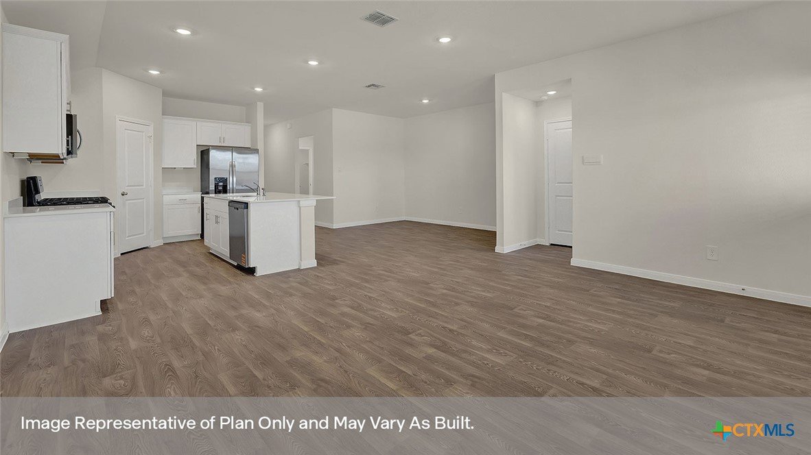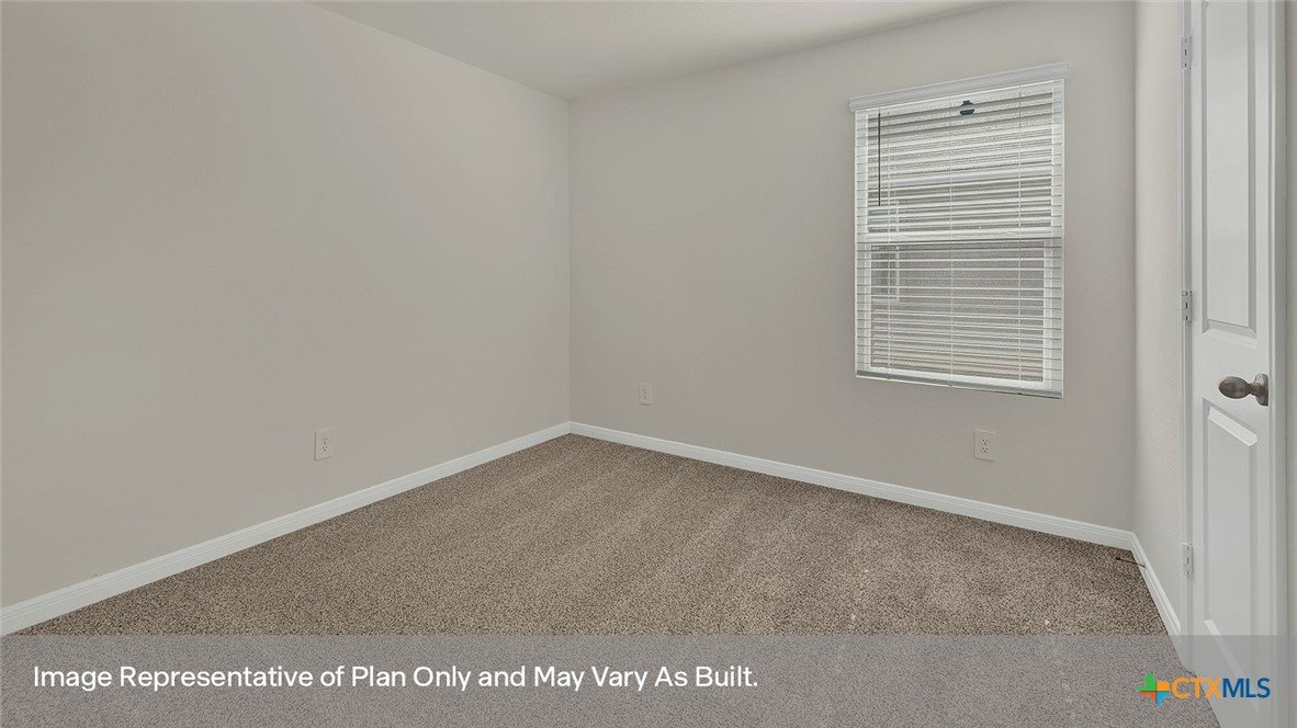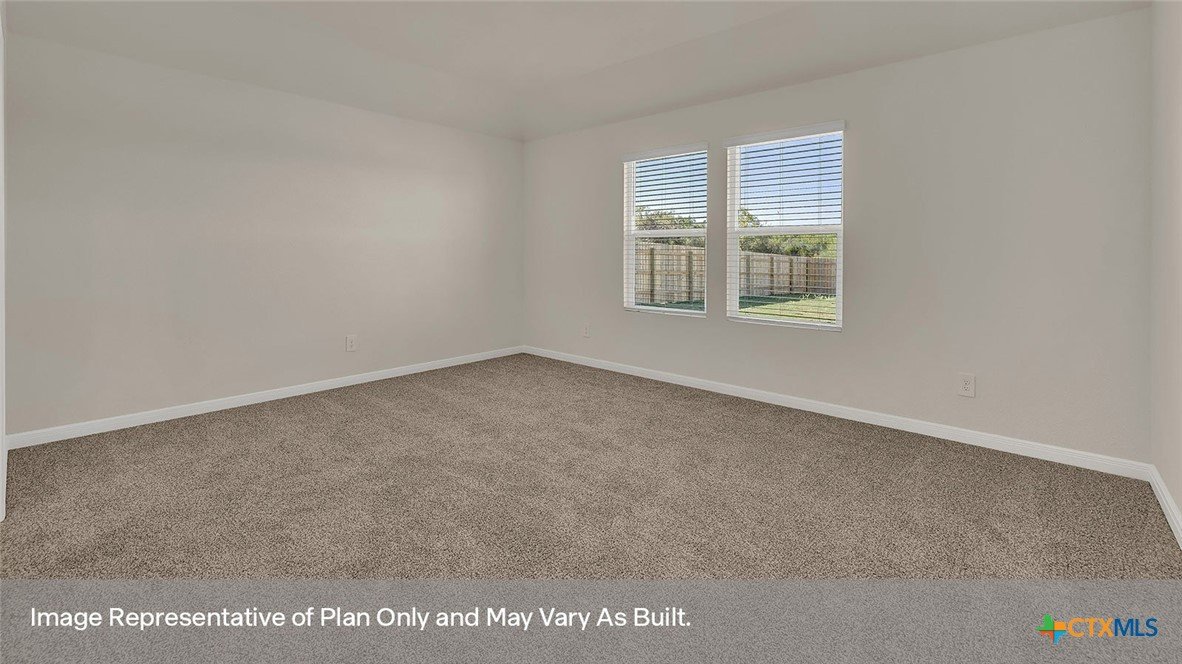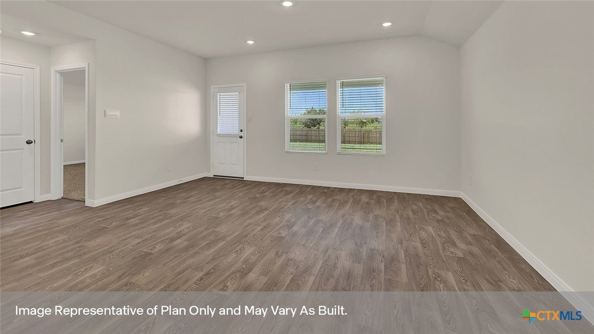 JANUARY ESTIMATED COMPLETION. CORNER LOT. EASY ACCESS TO I-35! Check out the Harris floorplan, our largest one-story home available at Paramount in Kyle, Texas. Perfect for roommates or larger families, this 4 bedroom, 2.5 bathroom, 2 car garage home offers 1,822 square feet of comfortable living space. Our homes in Paramount feature our modern farmhouse exterior and the Harris plan is available in 2 exterior options. At the front of the home, off the foyer, you have two secondary bedrooms and a full bathroom, which includes a shower/tub combination. Moving through the foyer and down a small hall, you will find the half bathroom, utility room and another secondary bedroom. All secondary bedrooms feature a closet with shelving. Whether you use these rooms as an office, child’s room or guest room, there is plenty of space for work, sleep, and play. Making your way through the house, you’ll walk into the heart of the home, the living area. Built as an open concept, move easily between the kitchen, dining, and family room. The L-shaped kitchen includes quartz countertops, a large island with undermount sink, a corner pantry closet, stainless-steel appliances and 36’’ upper cabinets. The primary bedroom is located off the family room. This spacious bedroom will be your oasis at the end of a long day. Enjoy the private bathroom, which features a walk-in shower, marble countertops with dual vanity, separate toilet area with a door, and a large walk-in closet. The Harris includes vinyl flooring throughout the common areas of the home and carpet in the bedrooms. All our new homes at Paramount feature extra storage space in the garage, a covered back patio, full sod, and an irrigation system in the front and back yard. This home comes with our America’s Smart Home base package, which includes Video Front Door Bell, Front Door Deadbolt Lock, Home Hub, Thermostat, and Deako® Smart Switches.