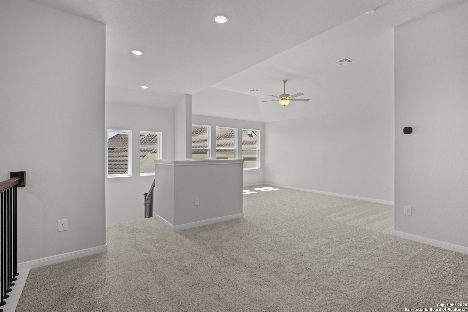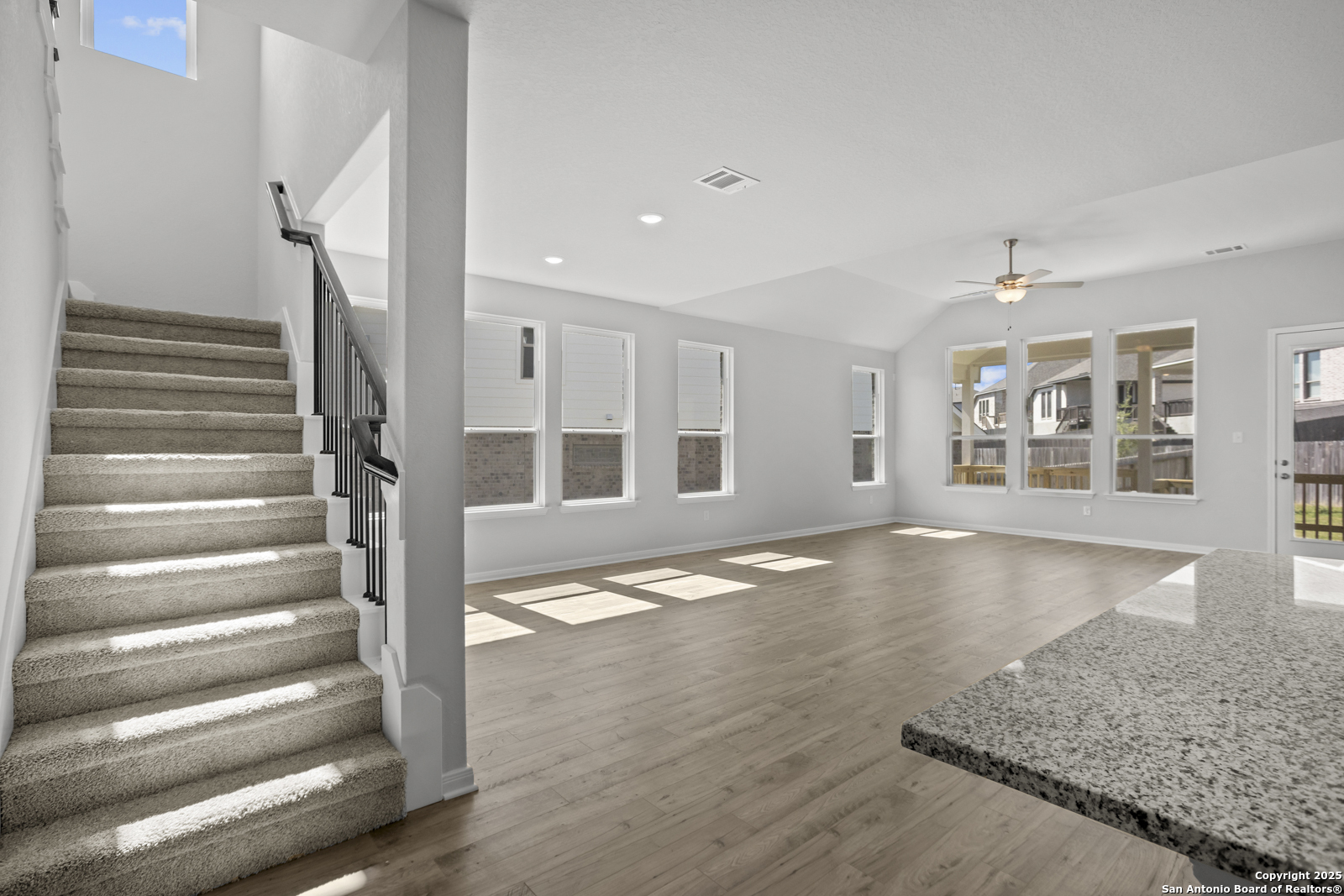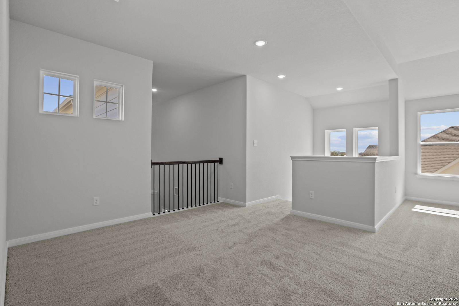 Welcome to 2515 Sueno Point, a beautifully designed Granbury floor plan by Coventry Homes located in the sought-after Ladera community! This stunning two-story home offers 4 spacious bedrooms, 3.5 luxurious baths, and 2,671 square feet of thoughtfully crafted living space. Step through the grand 8-foot entry door into a bright, open-concept layout featuring soaring ceilings, a modern chef's kitchen with 42" cabinetry, stainless steel appliances, and a large island overlooking the dining and family rooms - perfect for entertaining. The downstairs primary suite is a true retreat with a spa-like en-suite bath, dual vanities, a soaking tub, separate shower, and a generous walk-in closet. Upstairs, you'll find a versatile game room and three additional bedrooms, including one with a private en-suite - ideal for guests or multigenerational living. Enjoy Texas evenings on your covered patio, with no rear neighbors for added privacy. Located in a gated section of Ladera with access to top-rated Medina Valley ISD schools, community pool, trails, and playgrounds. Don't miss this opportunity to own a premium Coventry Home in one of San Antonio's fastest-growing areas!