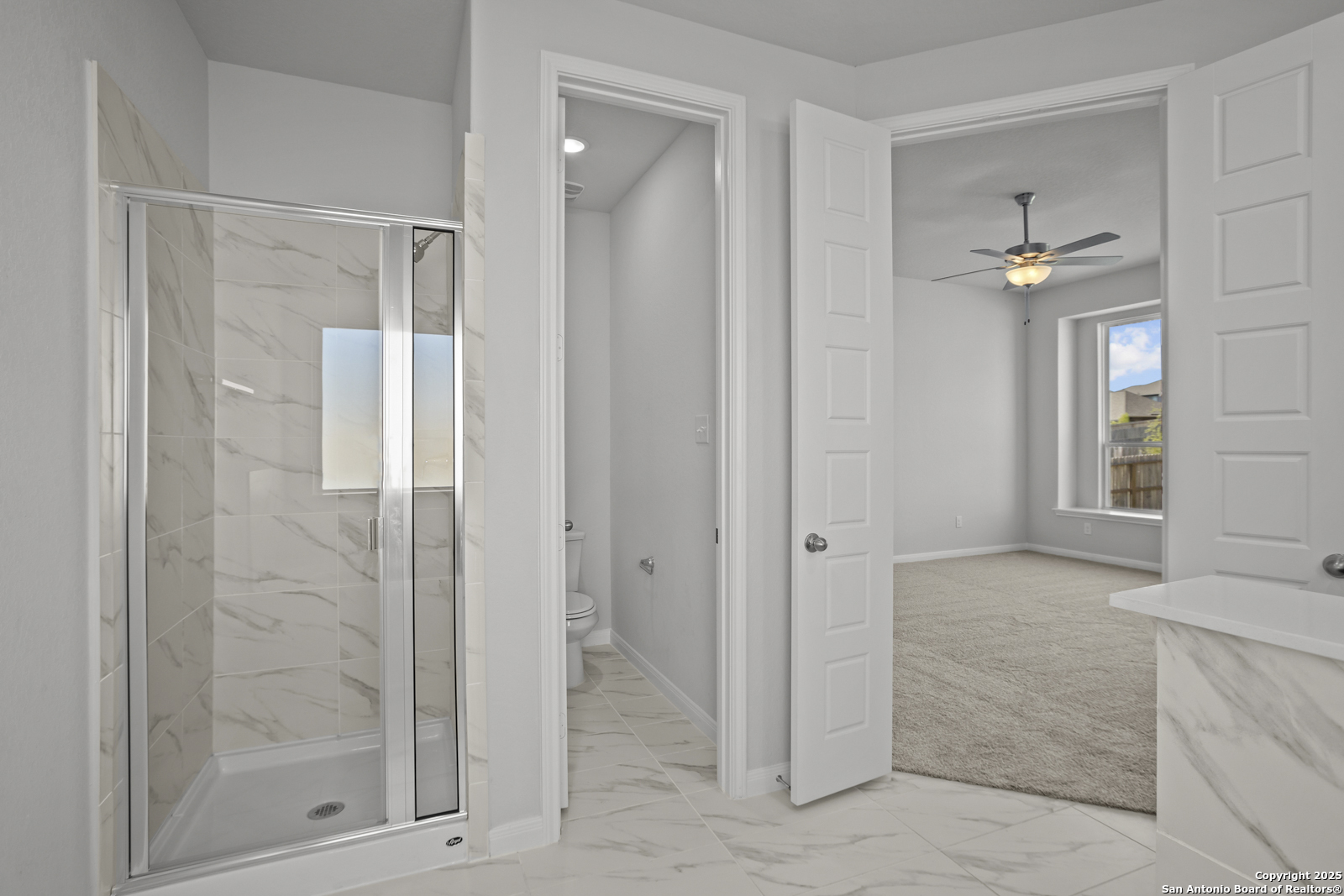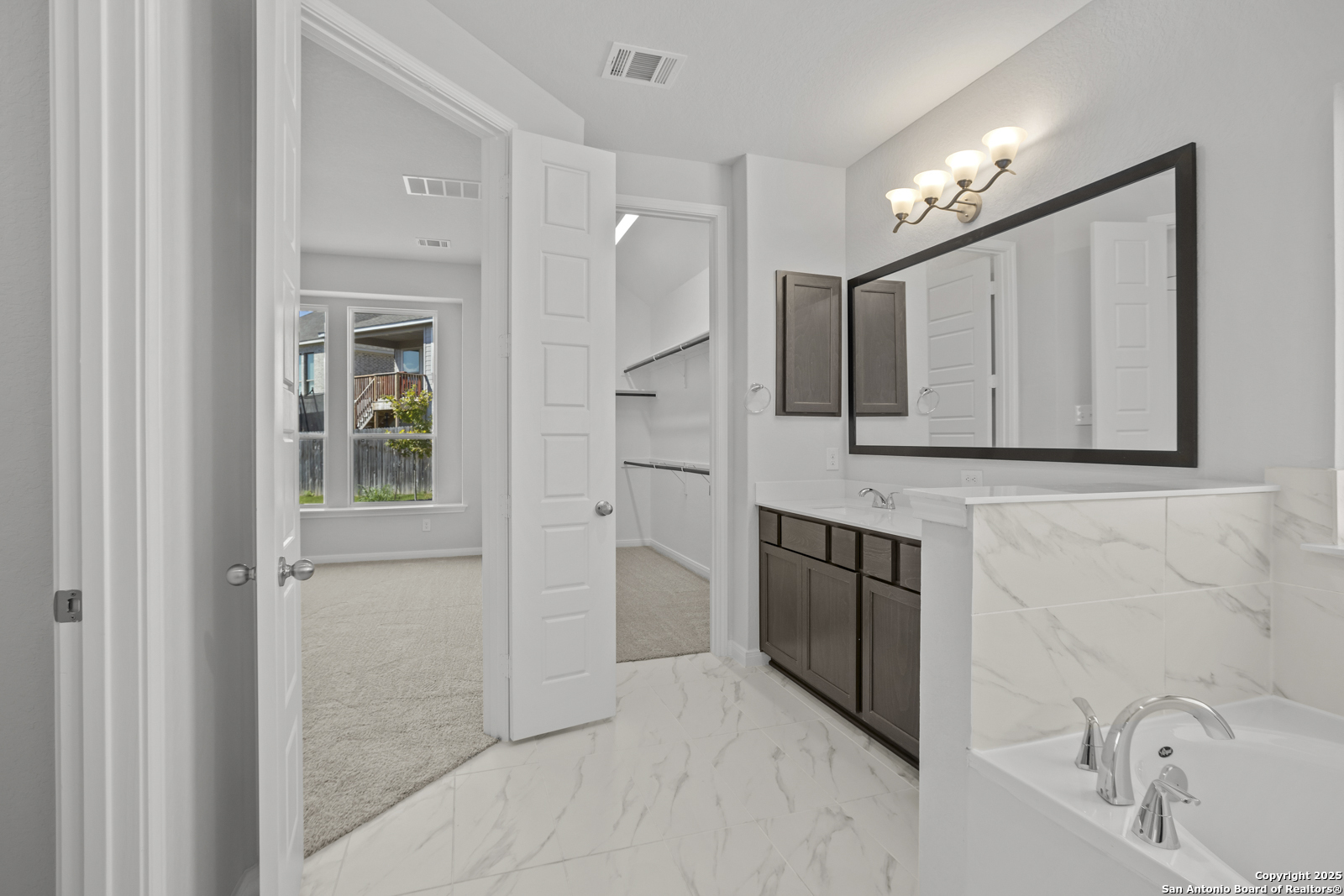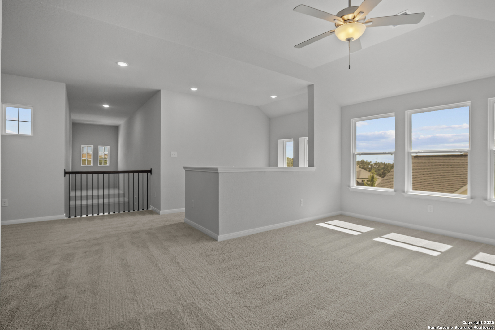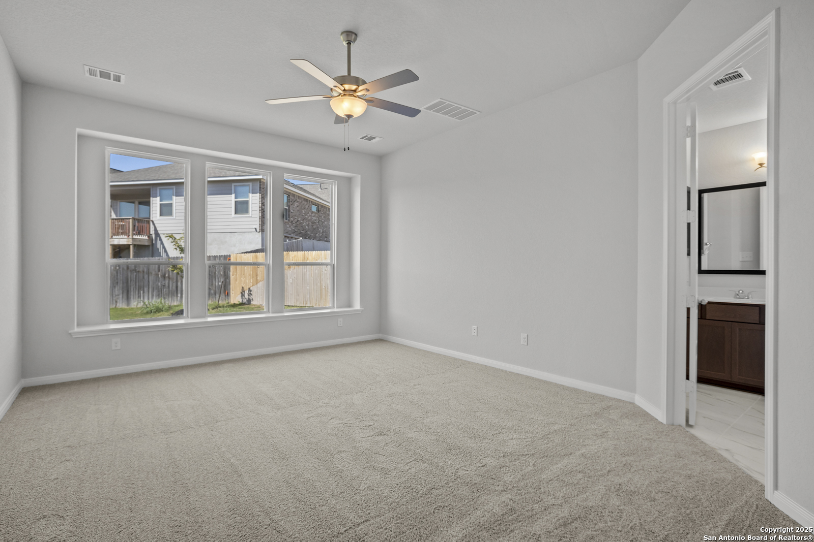Welcome to 2515 Sueno Point, a beautifully designed Granbury floor plan by Coventry Homes located in the sought-after Ladera community! This stunning two-story home offers 4 spacious bedrooms, 3.5 luxurious baths, and 2,671 square feet of thoughtfully crafted living space. Step through the grand 8-foot entry door into a bright, open-concept layout featuring soaring ceilings, a modern chef's kitchen with 42" cabinetry, stainless steel appliances, and a large island overlooking the dining and family rooms - perfect for entertaining. The downstairs primary suite is a true retreat with a spa-like en-suite bath, dual vanities, a soaking tub, separate shower, and a generous walk-in closet. Upstairs, you'll find a versatile game room and three additional bedrooms, including one with a private en-suite - ideal for guests or multigenerational living. Enjoy Texas evenings on your covered patio, with no rear neighbors for added privacy. Located in a gated section of Ladera with access to top-rated Medina Valley ISD schools, community pool, trails, and playgrounds. Don't miss this opportunity to own a premium Coventry Home in one of San Antonio's fastest-growing areas!