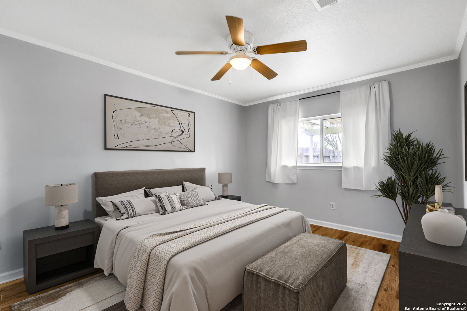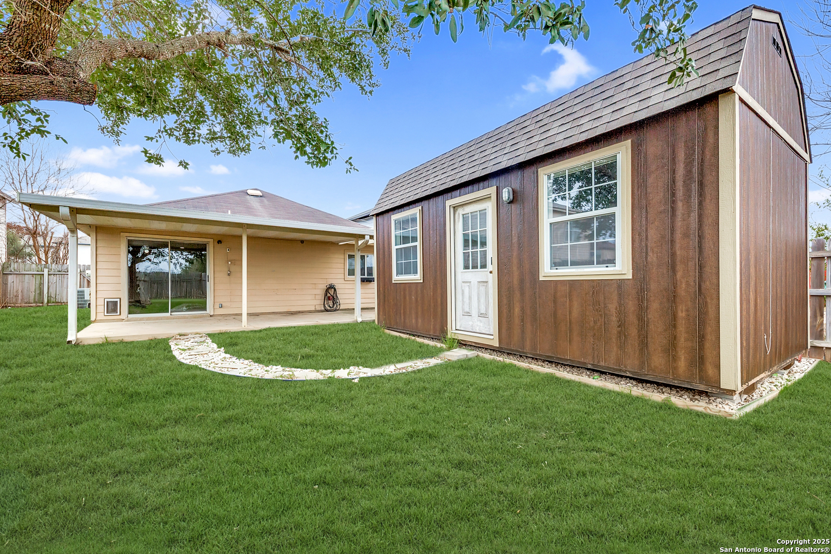 A beautifully updated one-story home in Sunset just hit the market on the far west side of San Antonio! Featuring 3 bedrooms, 2 bathrooms, and 1,343 sq. ft. of cozy living space, this home offers stylish upgrades and thoughtful details throughout. Step inside to LVP flooring, elegant crown molding, and a dedicated laundry room. The kitchen is a dream, complete with a stainless steel refrigerator, microwave, and dishwasher, opening up to a bright, sun-filled dining area. One of the standout features? A backyard casita with AC, electricity, and internet connectivity-perfect for a home office, gym, or creative space. The primary suite boasts a walk-in closet and a stunning, remodeled bathroom with custom subway tile, hexagon flooring, and modern fixtures. Two additional bedrooms share a stylish second bathroom. Love to entertain? The oversized covered back patio is ideal for summer gatherings, while the firepit sets the perfect scene for cozy nights. With a park, green space, fenced playground, and basketball court right behind the home, there's something for everyone to enjoy! Located on a quiet street in Northside ISD, this home is zoned for Michael ES, Vale MS, and Stevens HS. Don't wait-schedule a showing today before it's gone!