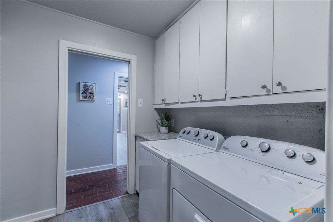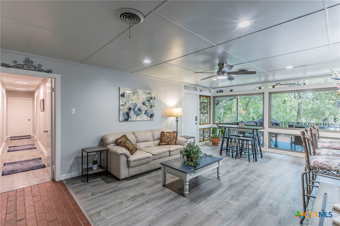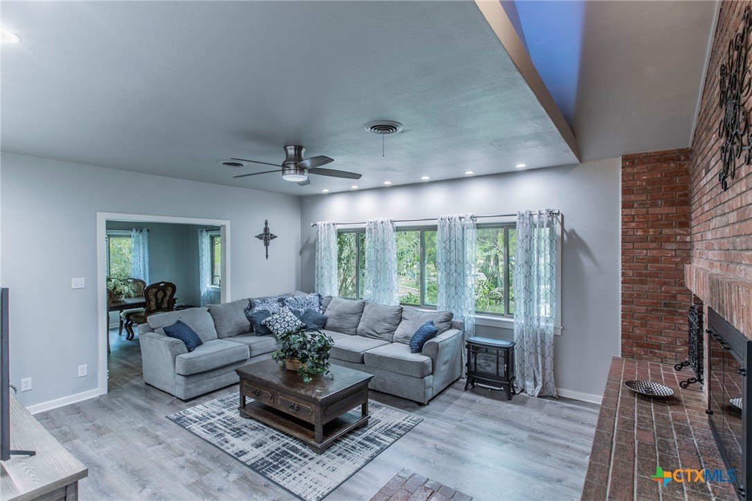 Nestled in the heart of Canyon Creek, this beautifully updated custom home offers a rare combination of privacy, space, and convenience. Set on 3.66 wooded acres with a seasonal creek and lush, park-like grounds, this property is a true sanctuary just minutes from downtown and I-35. Featuring a combined total of 5 bedrooms and 3.5 bathrooms, including a separate guest house, this home is perfect for multi-generational living, working from home, or homeschooling. The main home boasts an open-concept kitchen, stylish modern updates throughout, and extensive brickwork that adds timeless charm. Enjoy the tranquility of nature in the private backyard, explore artistically designed outdoor gardens, and unwind by the outdoor fire pit. Multiple outbuildings provide endless potential—whether for storage, a workshop, or creative studio space. With its blend of serene natural beauty, functional living spaces, and artistic touches, this one-of-a-kind property offers both inspiration and comfort.