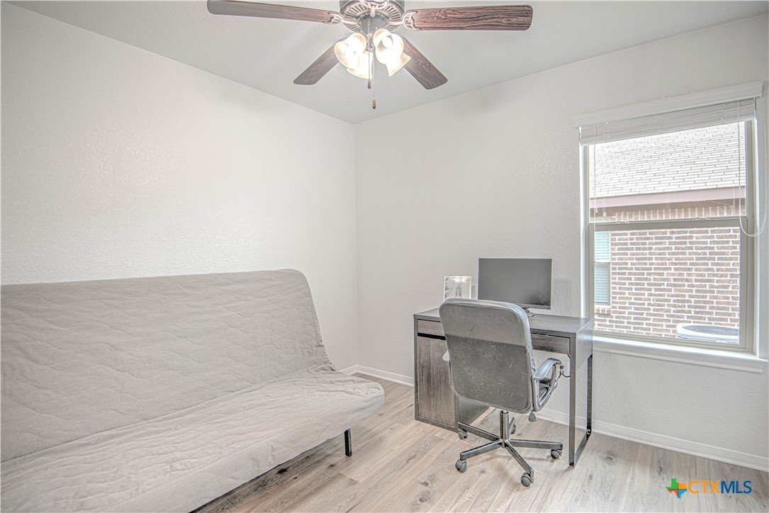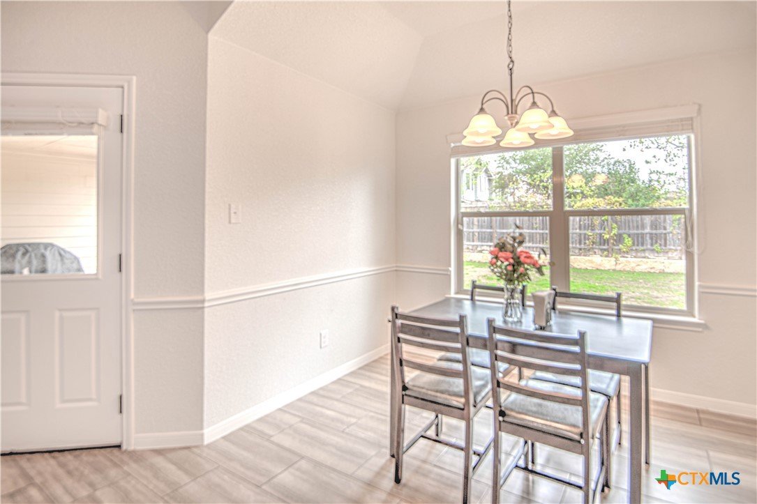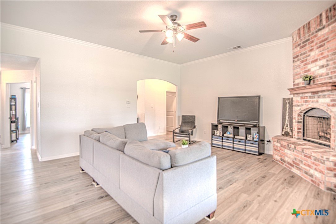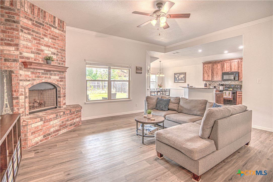 Come by and see this beautiful, immaculately kept home in Temple. The home features four bedrooms and two bathrooms. The Current owners have upgraded the flooring With beautiful wood like tile in the entry way,kitchen and dining area, both bathrooms and utility room. Beautiful bricked corner Wood burning fireplace. The living room features large windows in the dining room allow for lots of natural light. The primary bedroom features high ceilings and extra space to fit an office, or an additional sitting room.The primary bathroom features a large garden tub, with a double sink, upgraded tile wall in the stand alone shower. Faux wood blinds throughout the home. Large covered back patio, With a wood privacy fence make this the perfect place to call home. This home is NOT located in an HOA there are no fees associated with the neighborhood playground/park that is located right up the street.