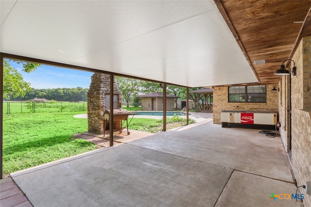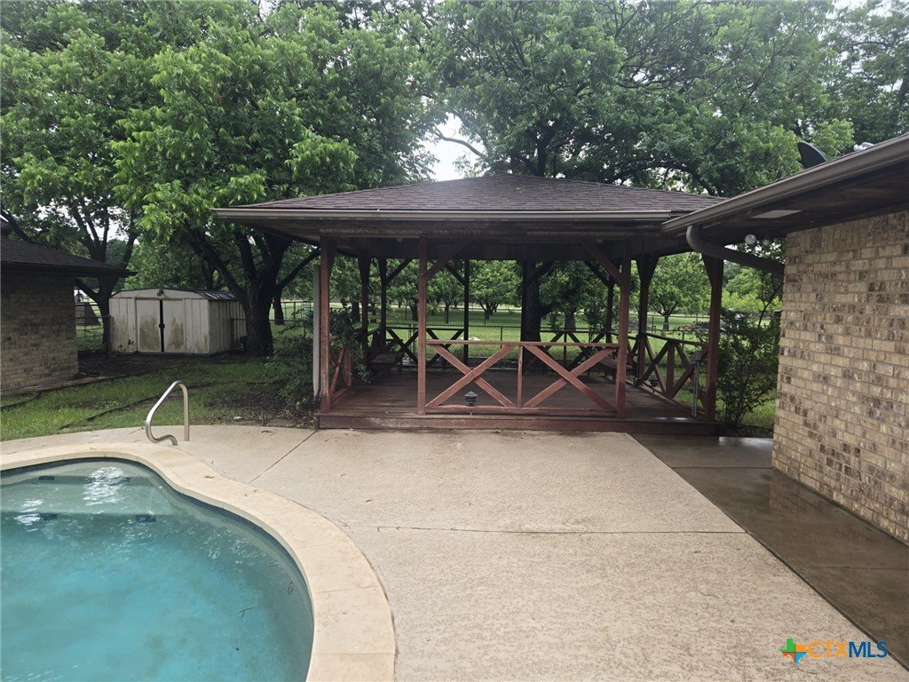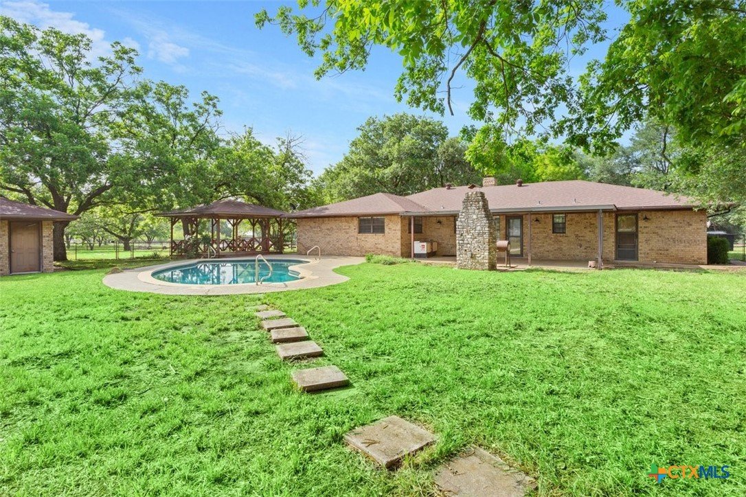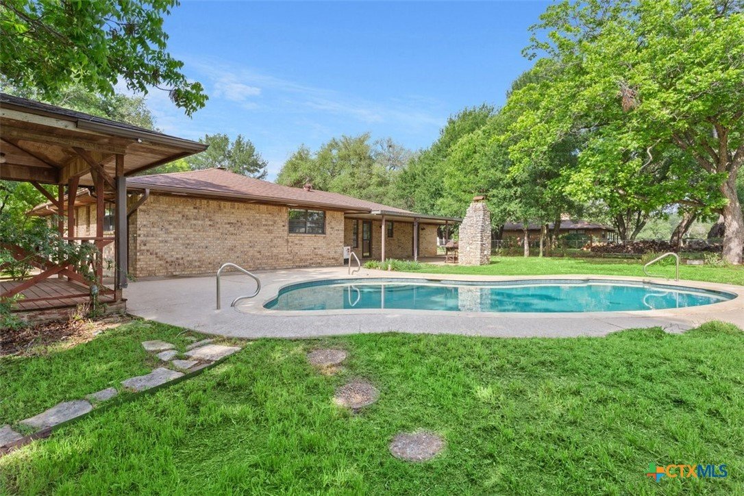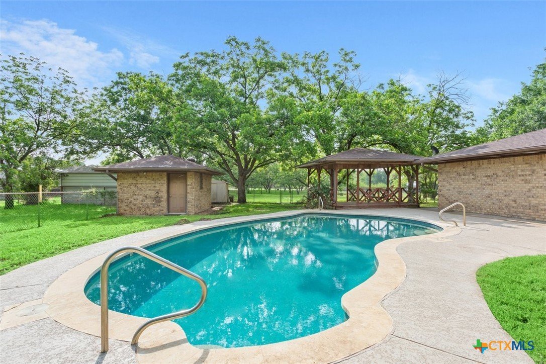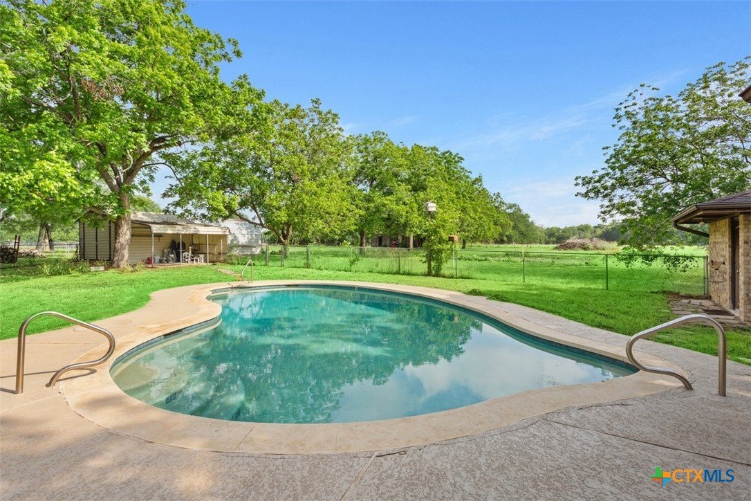 Beautiful property in Academy ISD, low property tax rate area. 2400 sq ft Metal Workshop, Gunite inground swimming pool with cool deck coating on the patio. A large Cabana. A tree covered almost 2 acres. This 3/2 home has been totally remodeled, new kitchen, new primary bath, new paint and floors. Home and property are in excellent condition, ready for you to move in. Home also has a 2 car garage and the pool is serviced weekly. Checks all the boxes, call today! This property has co-op water and a well. Plenty of room for an RV a garden and all your hobbies.