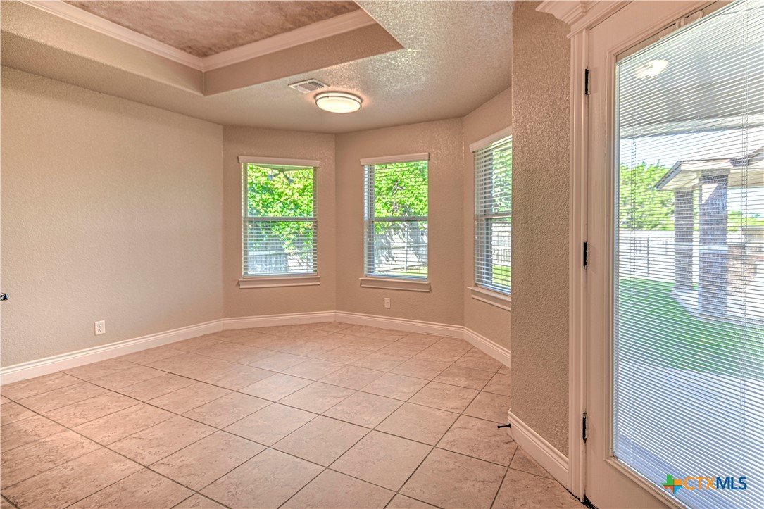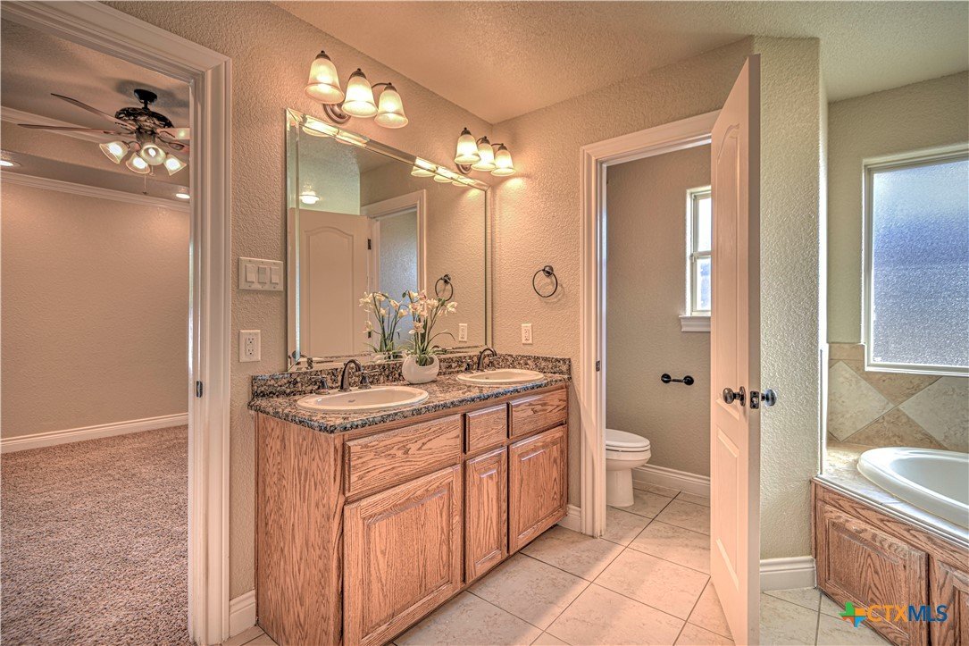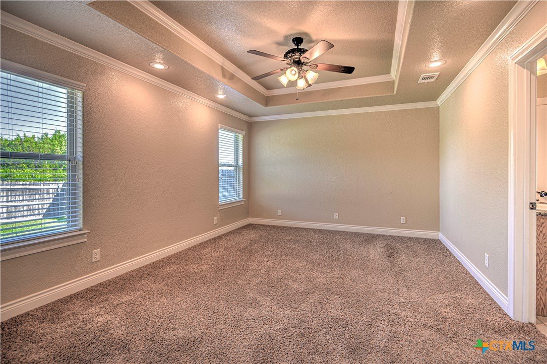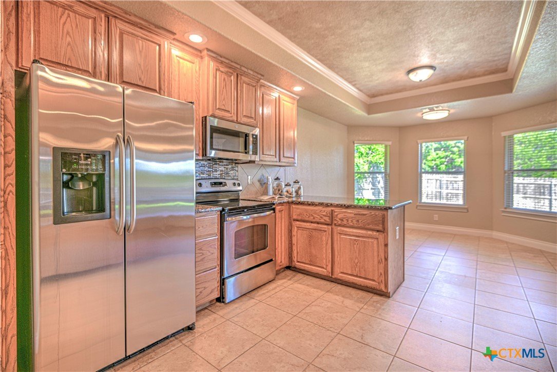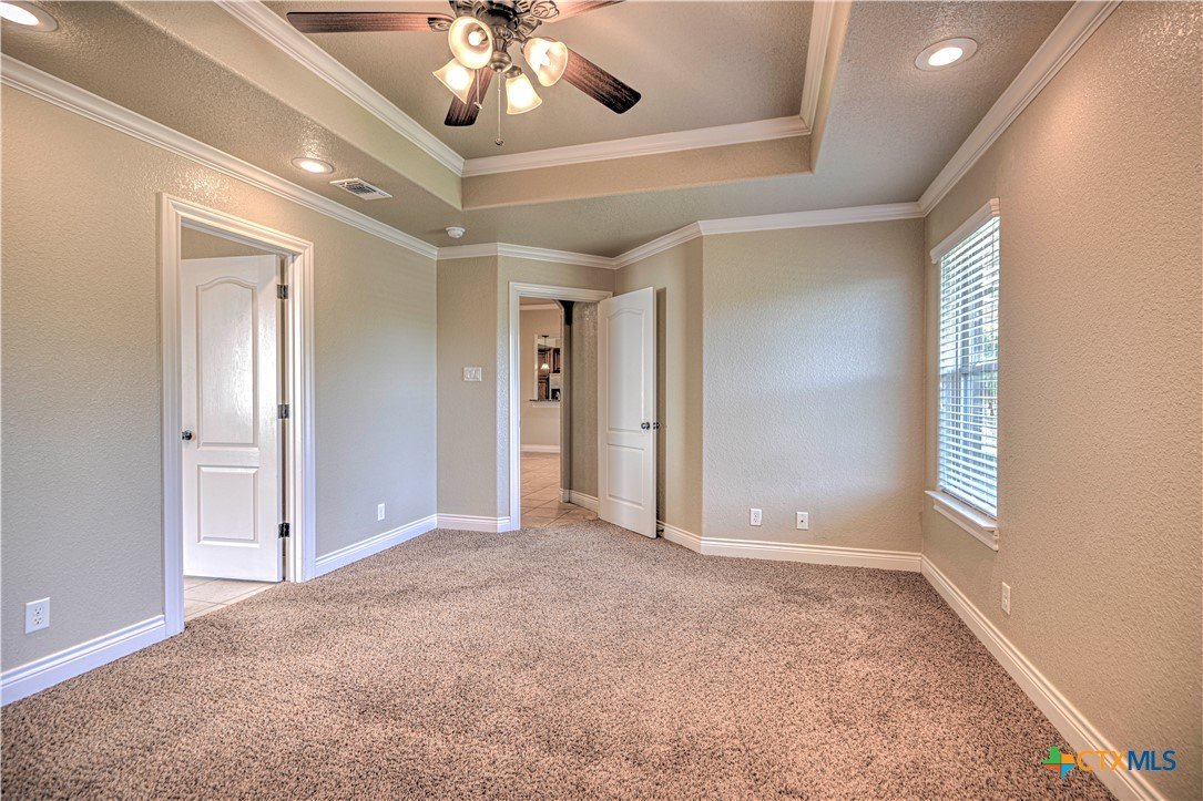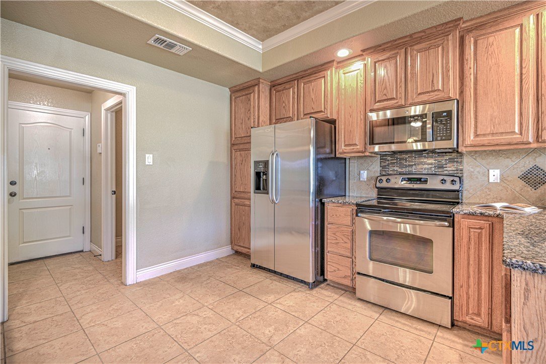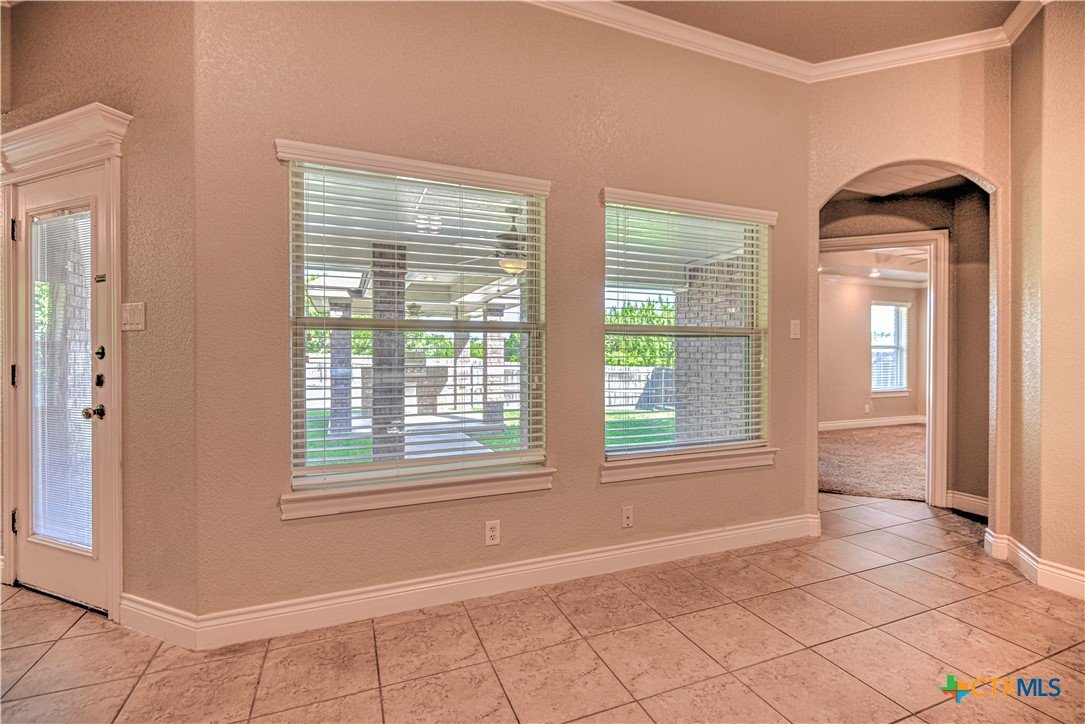 If your dream home includes the perfect place to gather, grill, and grow, this one checks every box—and adds a few you didn’t know you needed. Set beside an open lot for extra privacy and breathing room, this property was designed with hosting in mind. The fully covered extended patio is ready for any occasion, with a built-in grill, ceiling fan, and lighting that keeps the party going well past sunset. A covered walkway connects every outdoor element for a seamless flow between cooking, relaxing, and entertaining. Inside, thoughtful architectural details set the tone—arched entries, classic crown molding, and wide open living areas bring character and warmth to every corner. The spacious great room is anchored by a striking white stone fireplace, perfect for cozy nights or lively get-togethers. The kitchen is a true centerpiece: granite countertops shine under pendant lights, while a tile backsplash and stainless steel appliances add polish and practicality. The long breakfast bar offers front-row seating for casual meals or just keeping the cook company. Tucked away for privacy, the owner’s suite is your personal sanctuary. A tiered ceiling adds elegance, while the luxurious bath features a corner jetted tub and separate shower. You’ll love the oversized walk-in closet—complete with built-in shelving and storage to keep everything in its place. Two of the secondary bedrooms also feature walk-in closets, making this home as functional as it is beautiful.