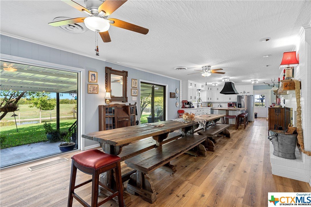 Nestled amidst the natural beauty of 217+/- sprawling acres, this charming 6-bedroom, 3.5 bathroom house is a true haven for those seeking a serene and spacious retreat. With its picturesque location and timeless design, this property offers a perfect blend of rustic elegance and modern comfort. A long, paved winding driveway leads you to the front of the house, creating a sense of anticipation as you approach your new home. Upon entering the home, you are greeted by a wonderful foyer. The main living area features a spacious open concept design, connecting the living room and dining room. Large Bay windows flood the space with natural light and offer breathtaking views of the surrounding landscape. The charming, newly remodeled kitchen boasts quartz countertops, hardwood cabinetry and a working indoor grill. A large island provides additional counter space and a casual dining area. The house features six well-appointed bedrooms, and three and a half bathrooms, each designed with comfort and relaxation in mind. The charm of this property extends outdoors, where you'll find a sprawling covered patio with ample seating, perfect for al fresco dining and entertaining. Beyond the patio, the property offers countless opportunities for outdoor activities, hiking, horseback riding, and exploring the vast acreage. The property includes a 4 acre lake, perfect for fishing or simply enjoying the view. Come experience the tranquility and beauty of a private estate while enjoying the comforts of a thoughtfully designed home. It's a place where nature, luxury, and serenity come together to create an unforgettable living experience.