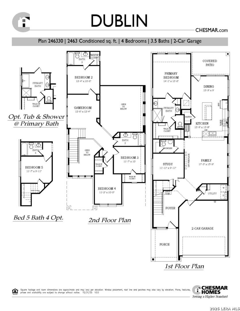 The Dublin floorplan by Chesmar Homes is a spacious and thoughtfully designed two-story new construction home offering approximately 2,463 square feet, 4 bedrooms, 3.5 bathrooms, and a 2-car garage. The first floor features a welcoming foyer that leads into a bright, open-concept living space. A generous family room flows seamlessly into the kitchen and dining area. The kitchen offers ample counter space, a pantry, and efficient workflow, while the dining area opens to a covered patio, extending your living space outdoors. A private study on the main level provides a quiet home office or flex space. The primary suite is located on the first floor, offering privacy and comfort with a walk-in closet and a spa-inspired bath. Upstairs, the Dublin features a large game room and three secondary bedrooms, each with walk-in closets and access to multiple full baths. HOME IS UNDER CONSTRUCTION, Est. July Completion. Some photos are REPRESENTATIVE of the floorplan.