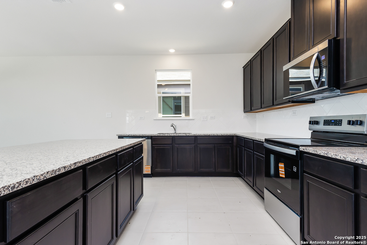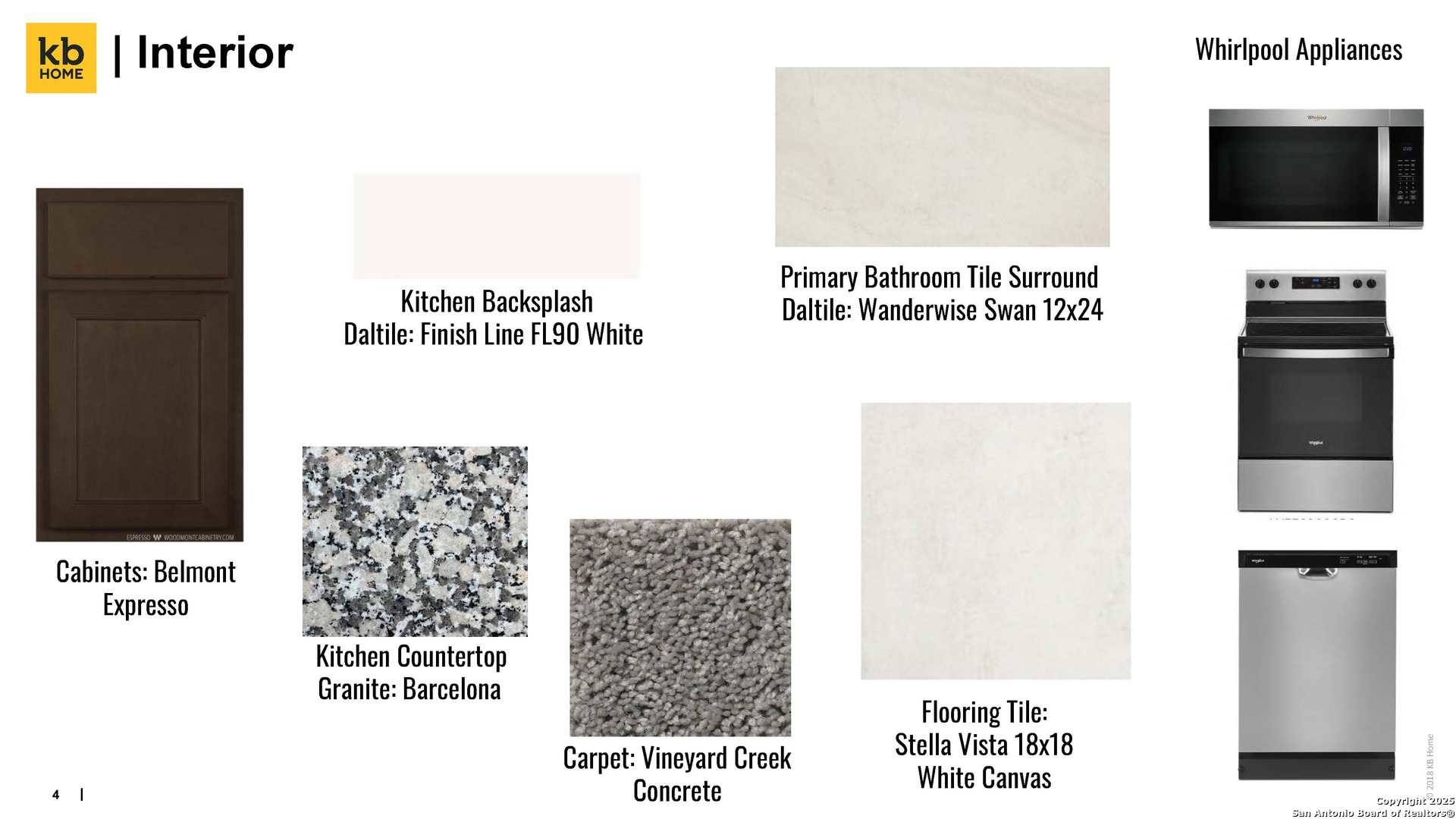Step into style with 9-ft. first-floor ceilings and a private den with elegant double doors. The kitchen is a chef's dream, featuring Whirlpool stainless steel appliances, Woodmont Belmont 42-in. upper cabinets, a Daltile tile backsplash, and an extended breakfast bar. The primary bath offers a raised vanity, upgraded cabinets, and a 42-in. shower with Daltile tile surround. Decorative touches include a Carrara-style entry door, Kwikset Polo interior hardware, and Stella Vista ceramic tile flooring in the bathrooms, kitchen, and laundry room. Enjoy added convenience with storage under the stairs and a soft water loop. Outside, relax with a fully sodded yard and automatic sprinkler system.