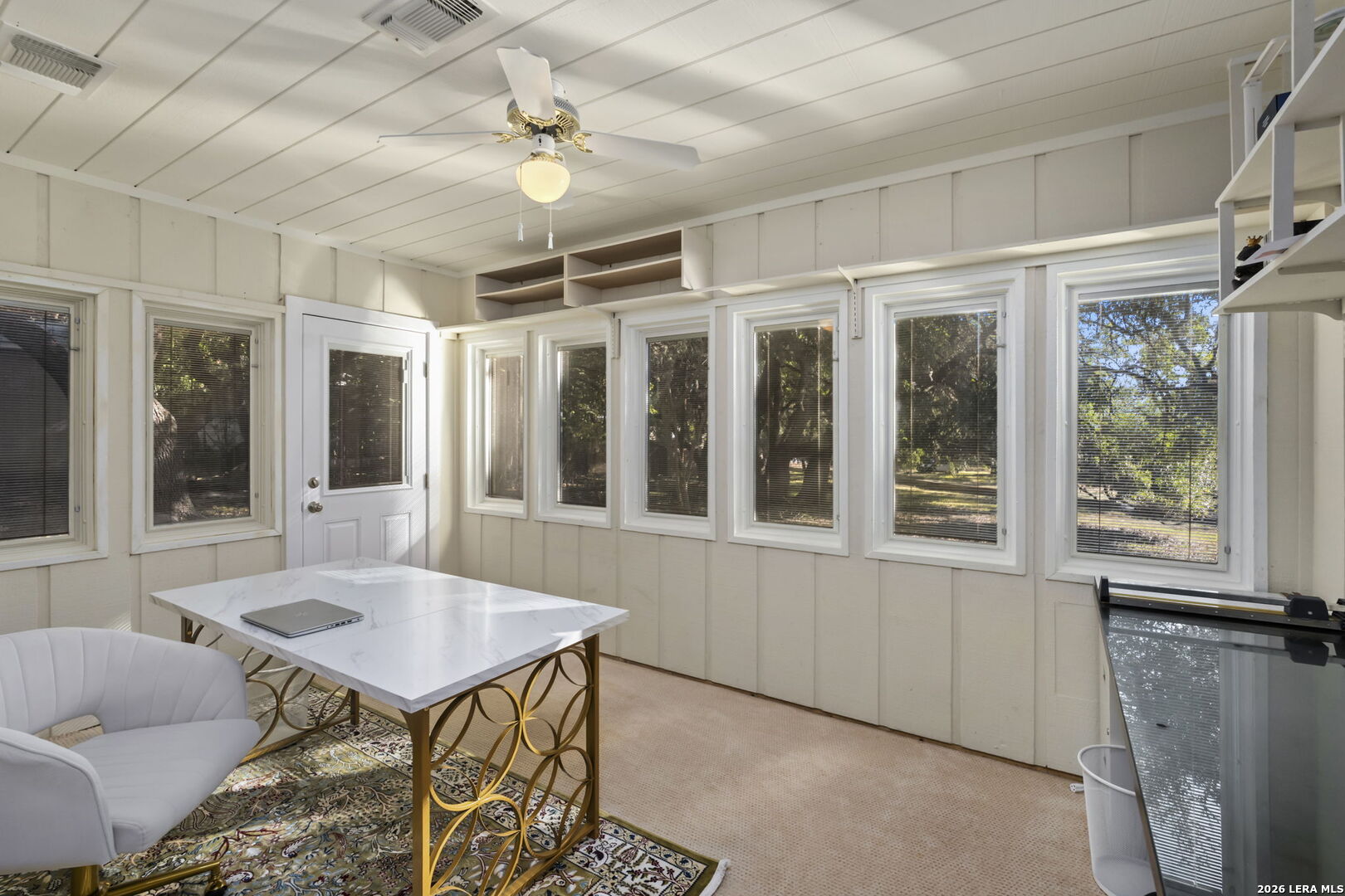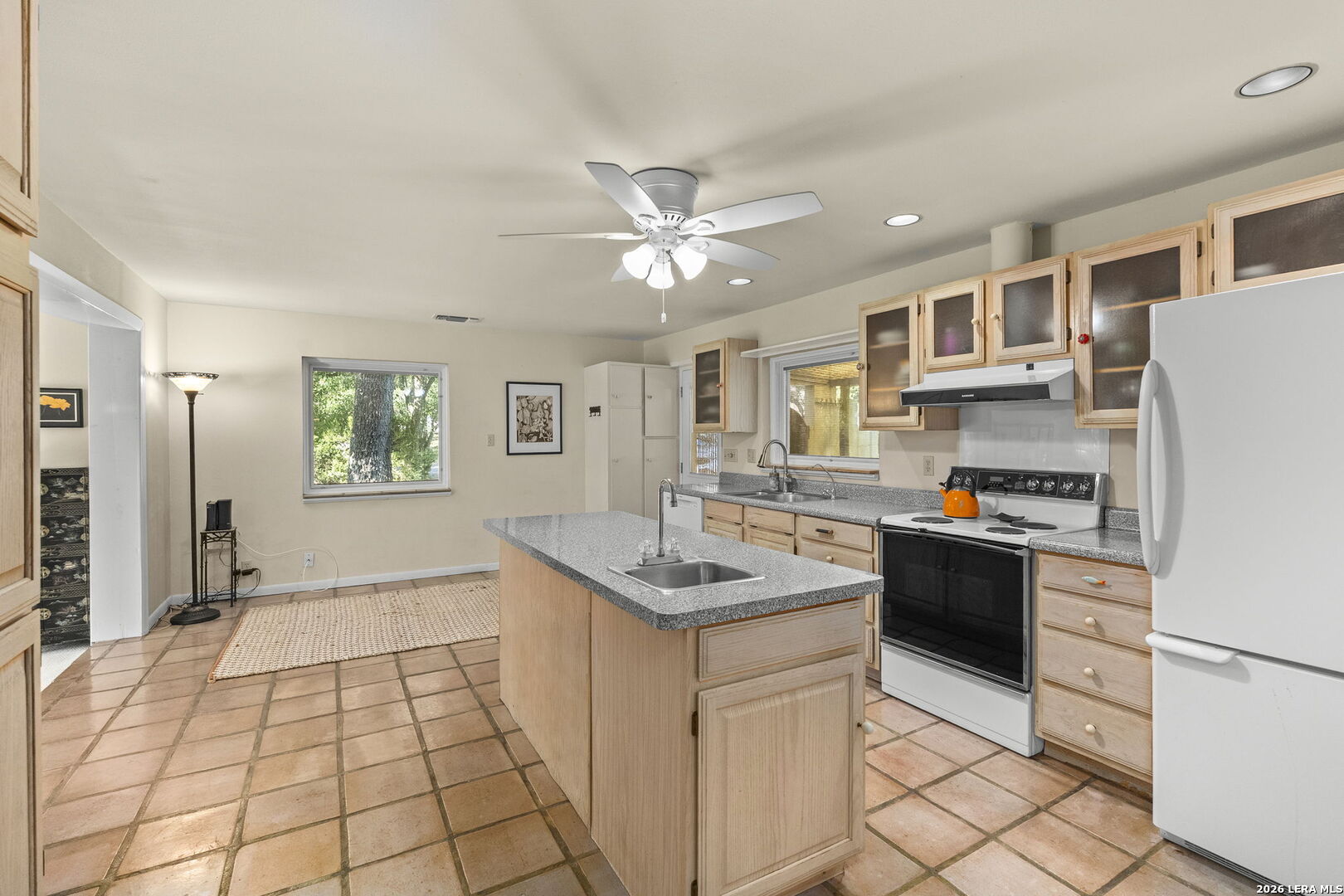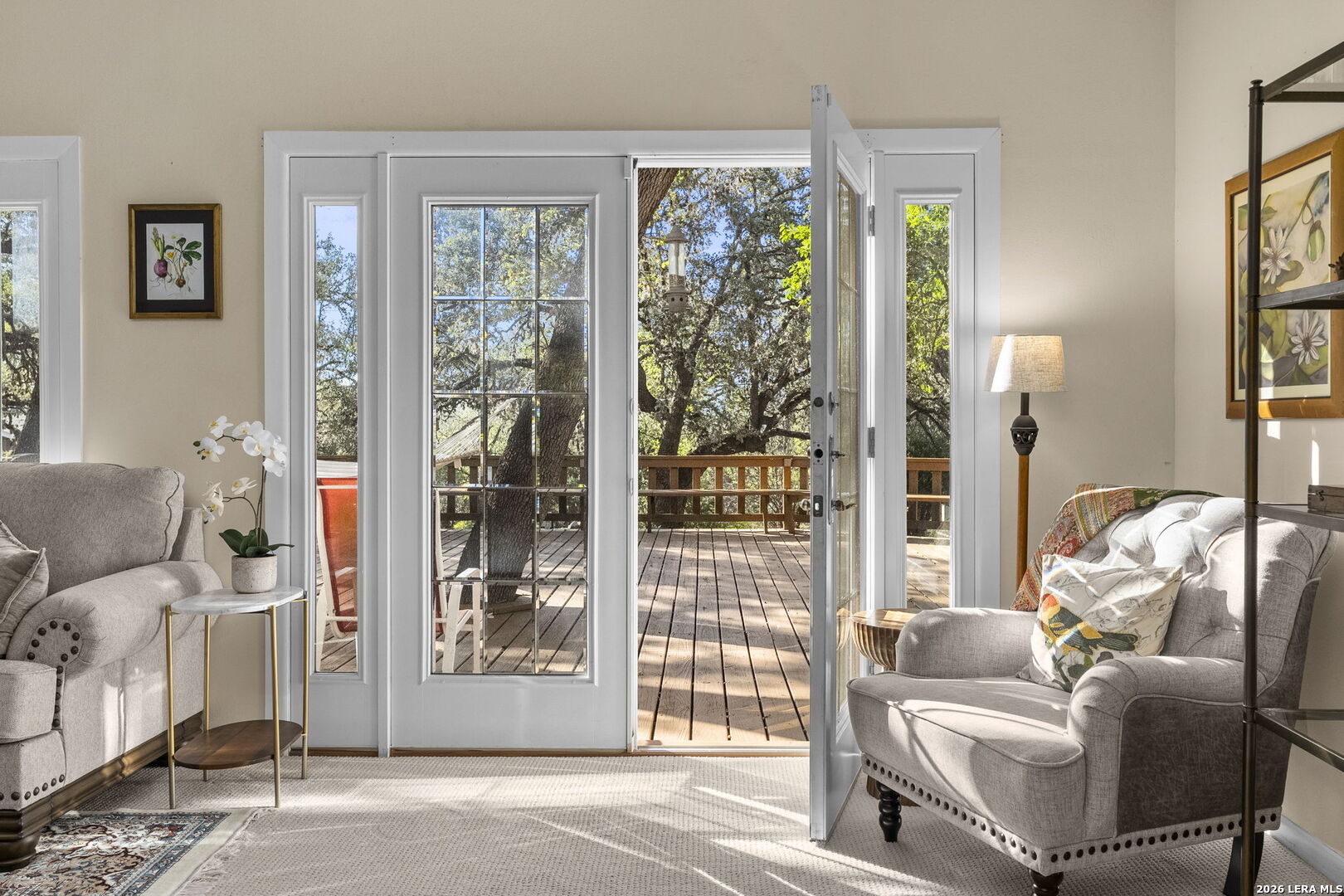 Welcome to Aum Sat Tat Ranch, a serene residential neighborhood in San Antonio featuring wide-open spaces and a true country atmosphere. This peaceful setting offers quiet living while still being conveniently close to shopping and dining, giving you the best of both worlds. Surrounded by mature trees, the property is often graced by both peacocks and deer, freely roaming and adding to its tranquil, natural beauty-creating a private retreat immersed in nature. Inside, the home welcomes you with a light-filled family room, where large windows bring in an abundance of natural sunlight, creating a bright and inviting atmosphere throughout. The thoughtfully designed kitchen offers plenty of space for cooking, gathering, and entertaining with ease. This beautiful home also features two spacious primary bedrooms and a flexible bonus room-perfect for a home office, gym, playroom, or additional bedroom.