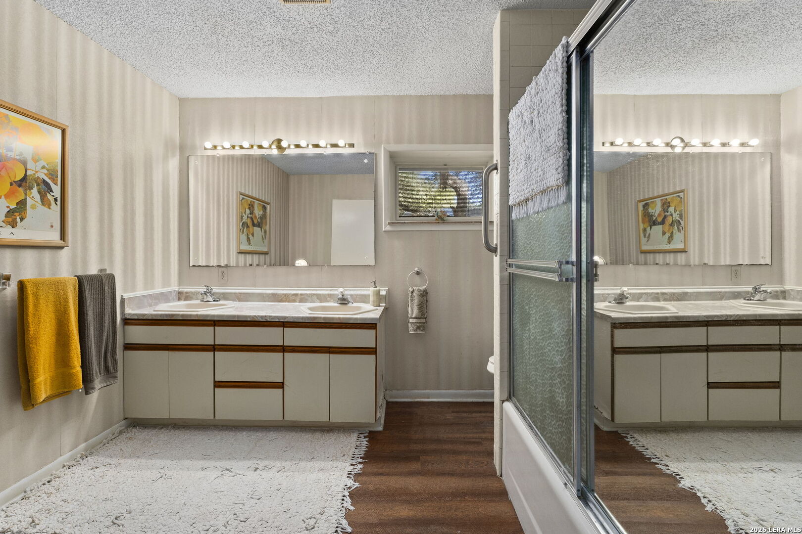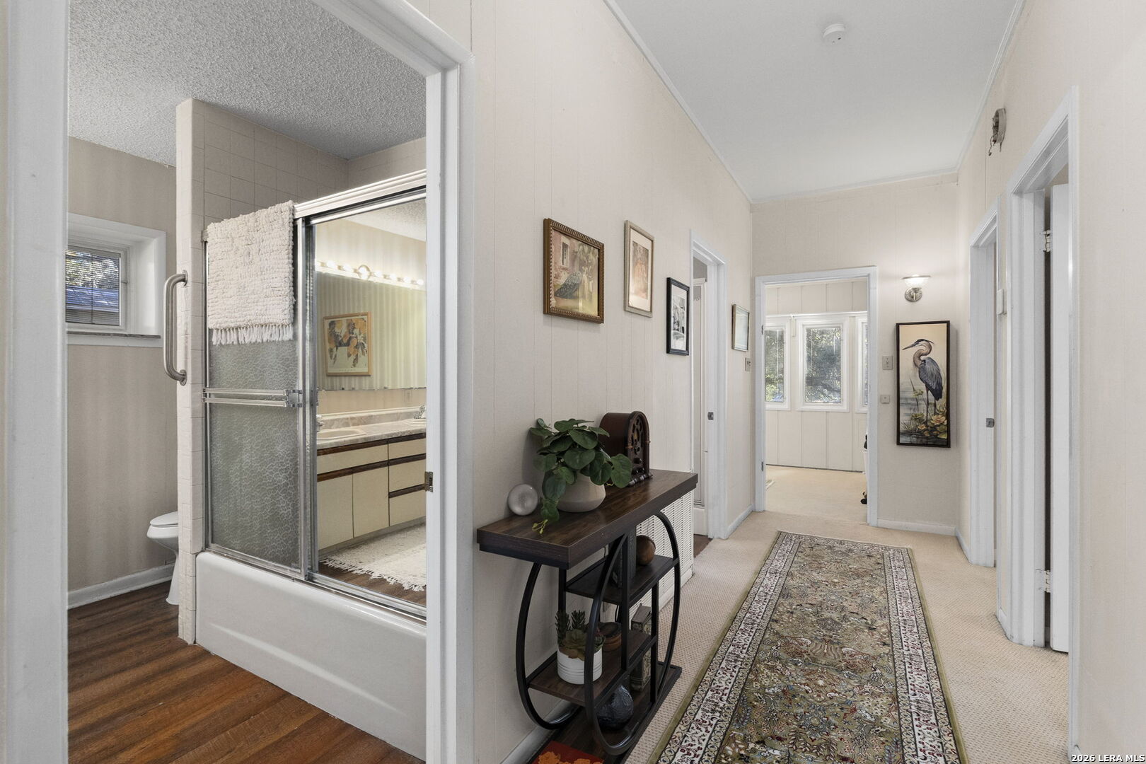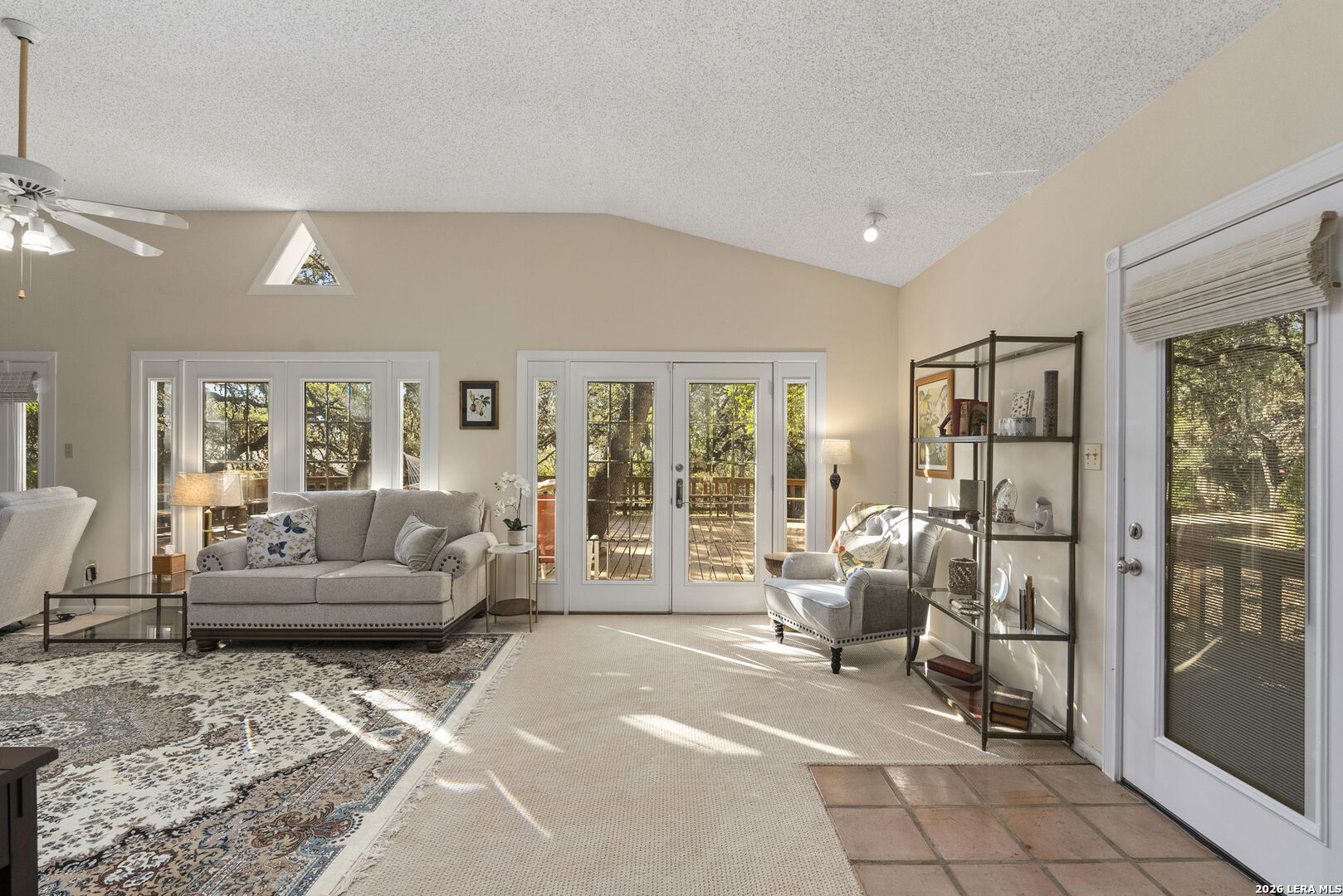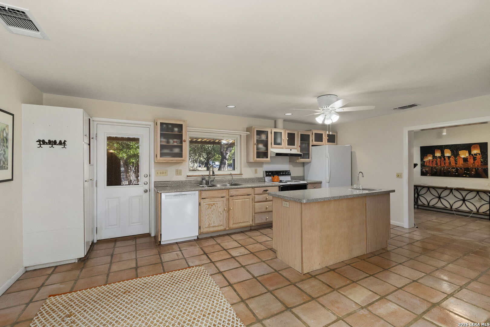 Welcome to Aum Sat Tat Ranch, a serene residential neighborhood in San Antonio featuring wide-open spaces and a true country atmosphere. This peaceful setting offers quiet living while still being conveniently close to shopping and dining, giving you the best of both worlds. Surrounded by mature trees, the property is often graced by both peacocks and deer, freely roaming and adding to its tranquil, natural beauty-creating a private retreat immersed in nature. Inside, the home welcomes you with a light-filled family room, where large windows bring in an abundance of natural sunlight, creating a bright and inviting atmosphere throughout. The thoughtfully designed kitchen offers plenty of space for cooking, gathering, and entertaining with ease. This beautiful home also features two spacious primary bedrooms and a flexible bonus room-perfect for a home office, gym, playroom, or additional bedroom.