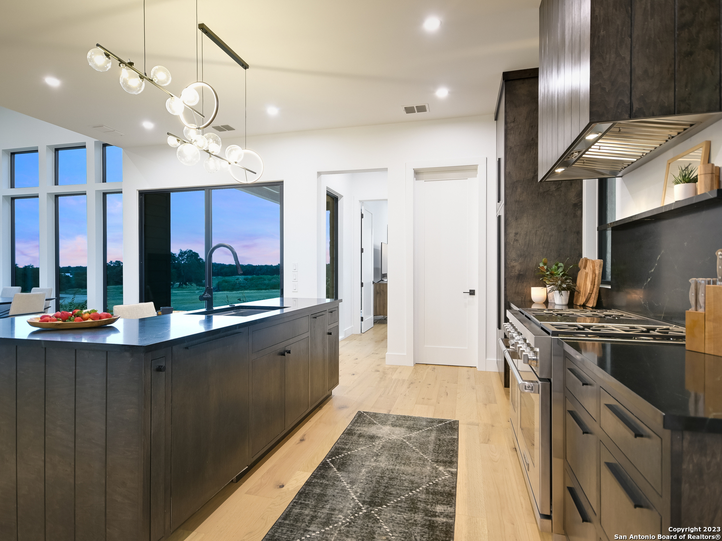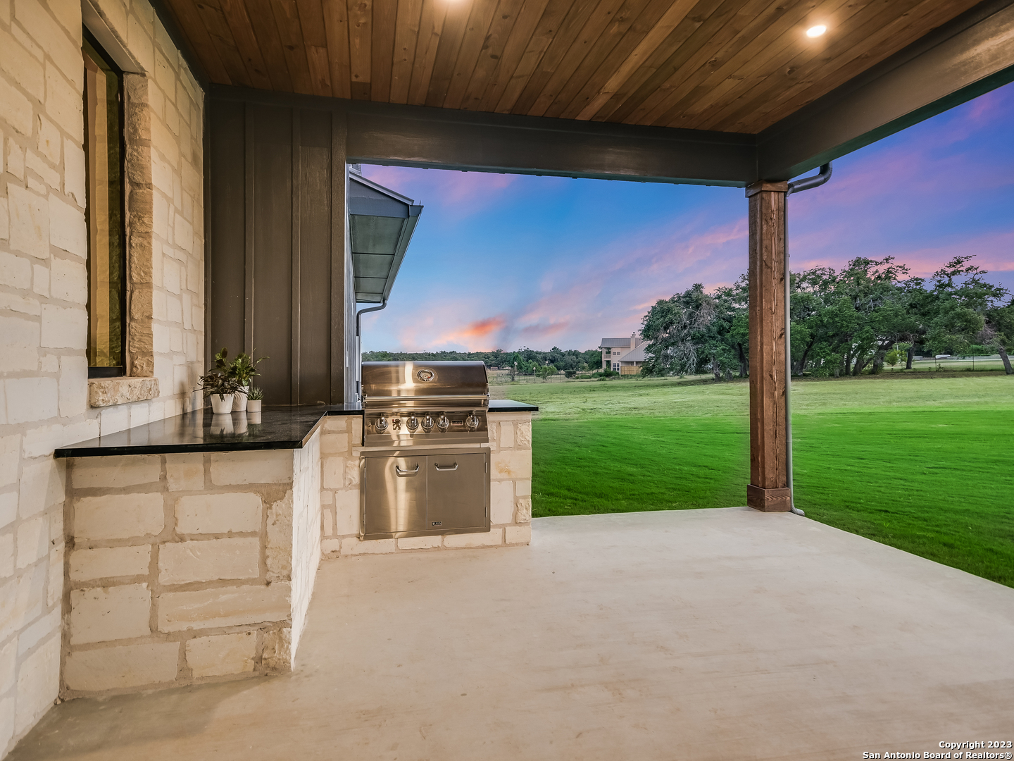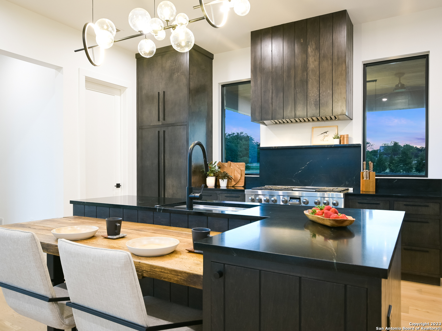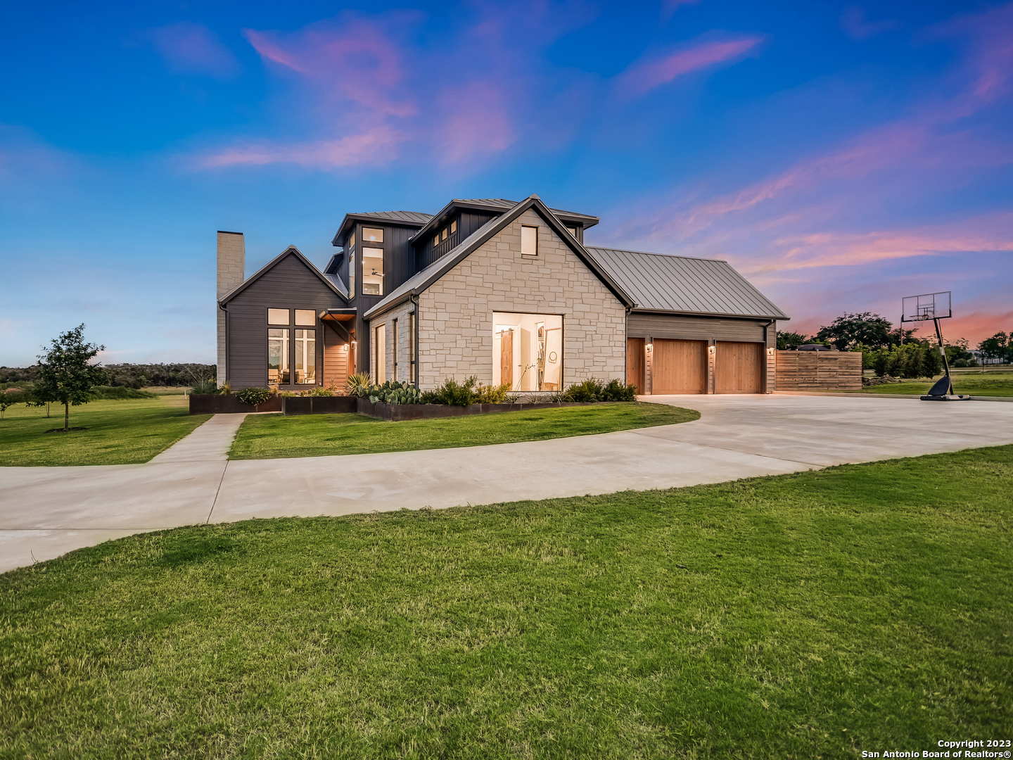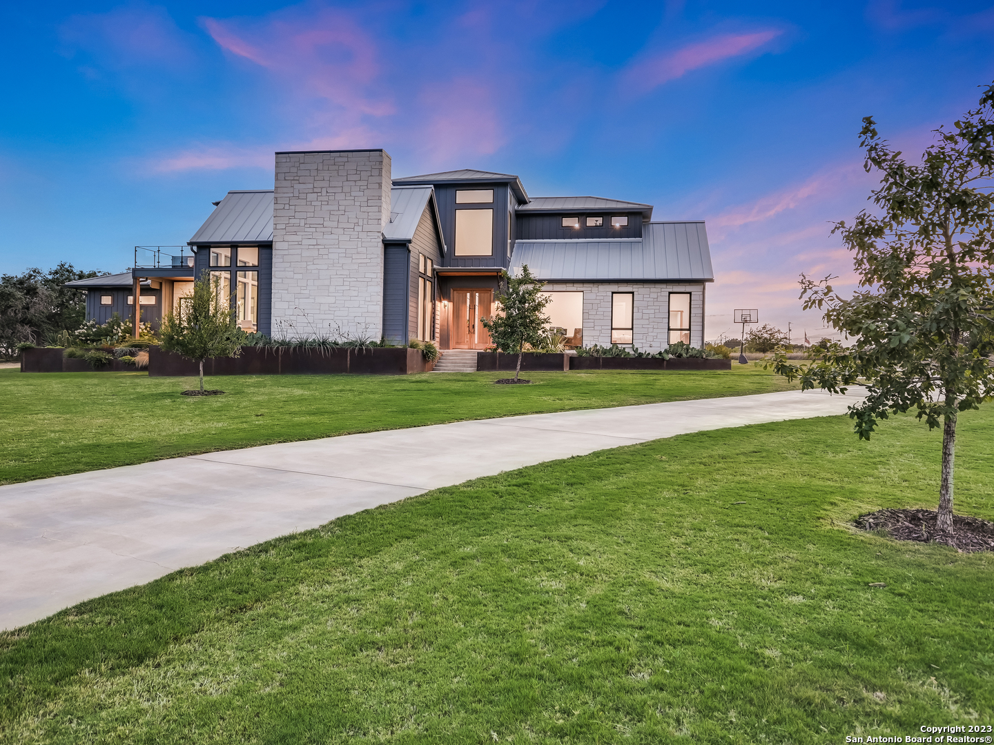 Welcome to this exceptional property that perfectly blends modern architecture with sophisticated design elements. From the moment you arrive, you'll be captivated by the sleek lines and contemporary appeal of this stunning home. Large windows throughout flood the interior with natural light, creating a bright and airy ambiance. The seamless integration of indoor and outdoor spaces allows for breathtaking views of the surrounding landscape, while providing a sense of serenity and tranquility. The pristine kitchen is a chef's dream, boasting high-end appliances, sleek cabinetry, and ample counter space. A large pantry offers plenty of storage space, keeping your kitchen organized and clutter-free. Step onto the inviting front porch and envision yourself sipping a morning coffee or enjoying an evening sunset. This charming outdoor space provides a welcoming retreat and adds to the overall curb appeal of the property. Upstairs, a balcony awaits, providing an elevated vantage point to admire the surroundings. Whether you're enjoying a quiet moment with a book or savoring a morning cup of tea, this balcony offers a serene escape. Indulge in the ultimate entertainment experience in the media room, where you can enjoy your favorite movies or host game nights with friends and family. Step outside into the expansive back yard and discover an outdoor kitchen that is perfect for hosting unforgettable gatherings. Don't miss the opportunity to own this remarkable property with its modern architecture, large windows, pristine kitchen with bar seating, inviting front porch, spacious pantry, upstairs balcony, media room, outdoor kitchen, and expansive back yard. Embrace the luxurious lifestyle that awaits and make this house your dream home. Schedule a showing today and experience the perfect blend of modern living and outdoor paradise.