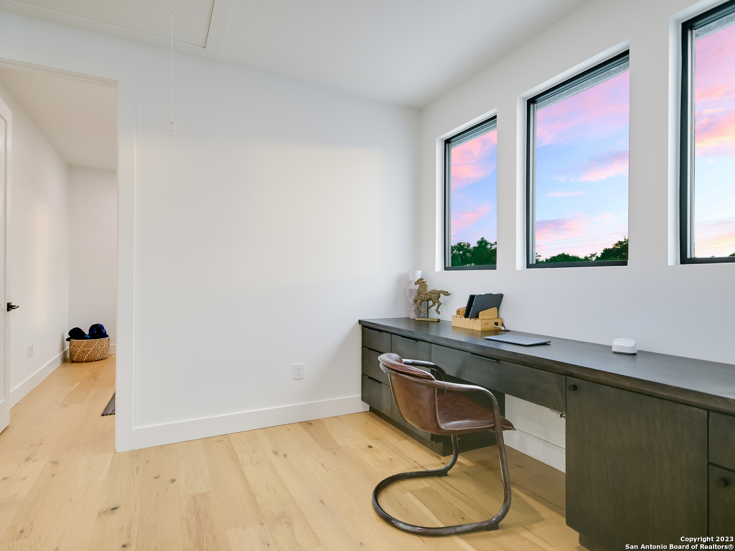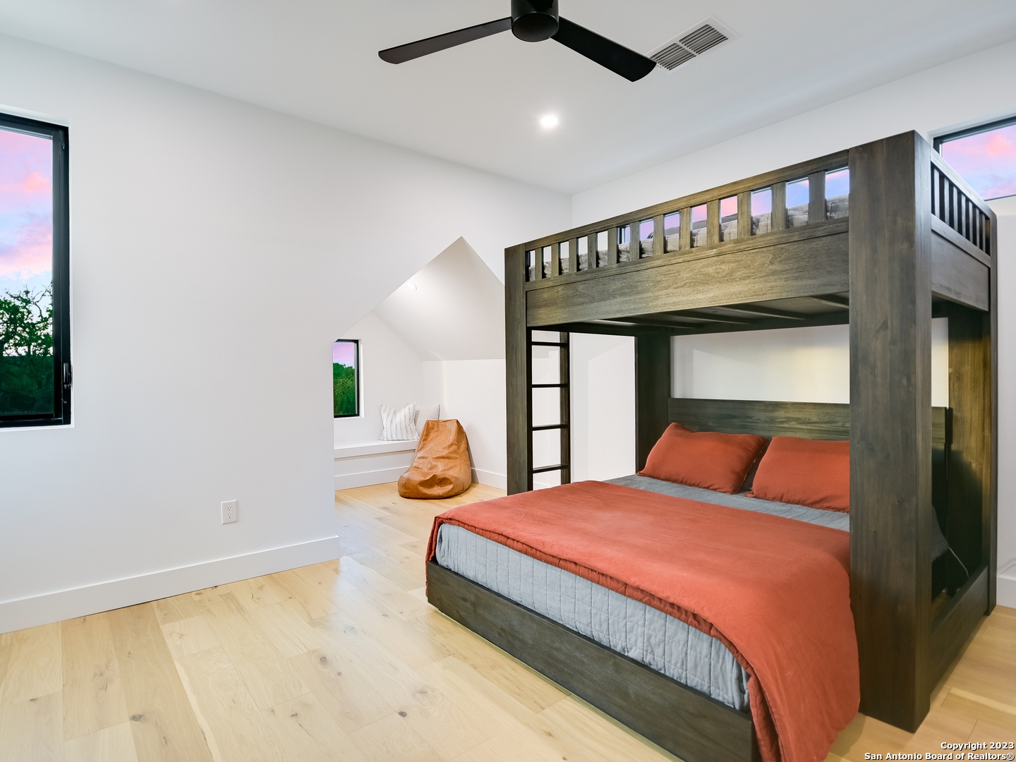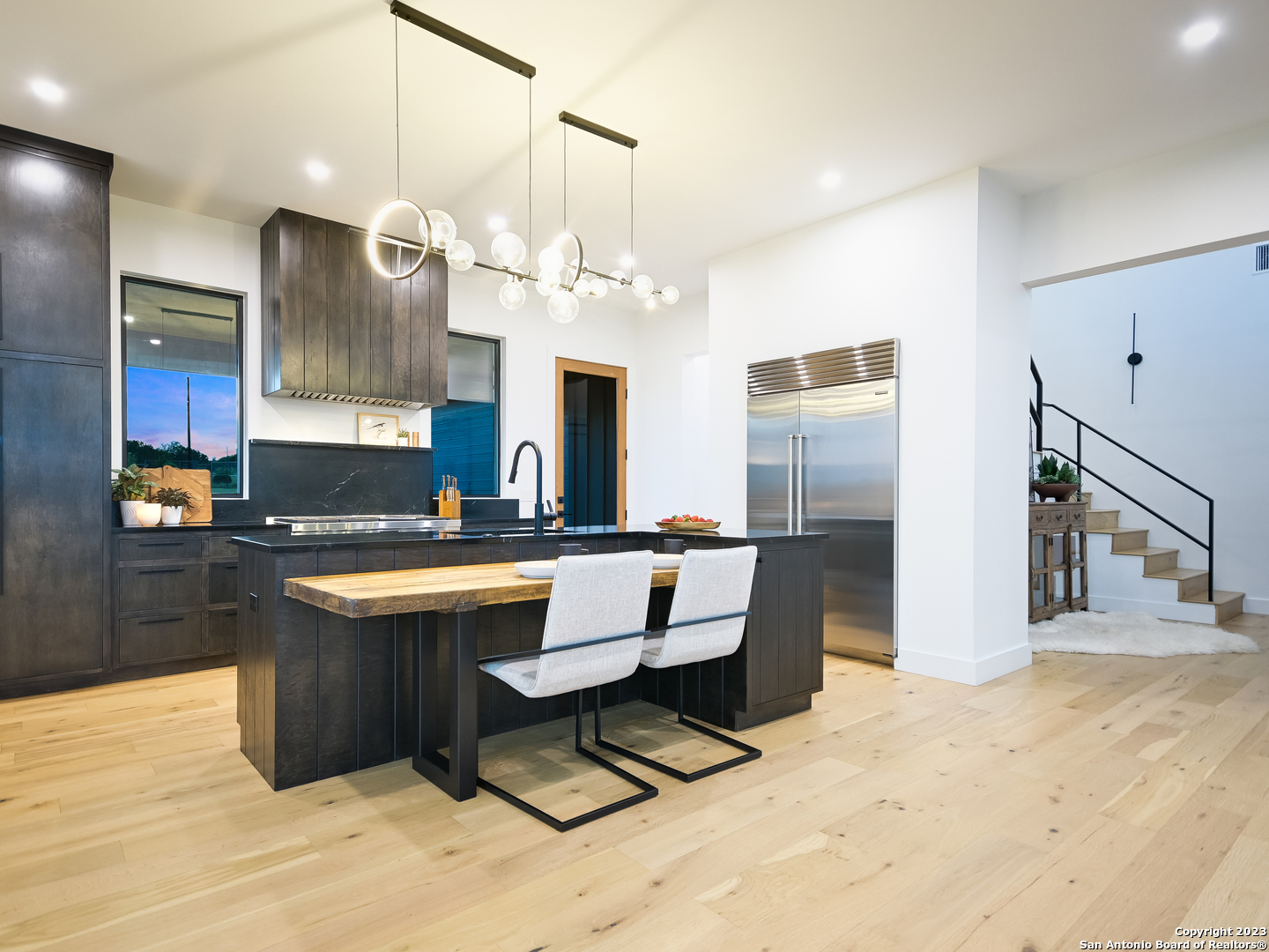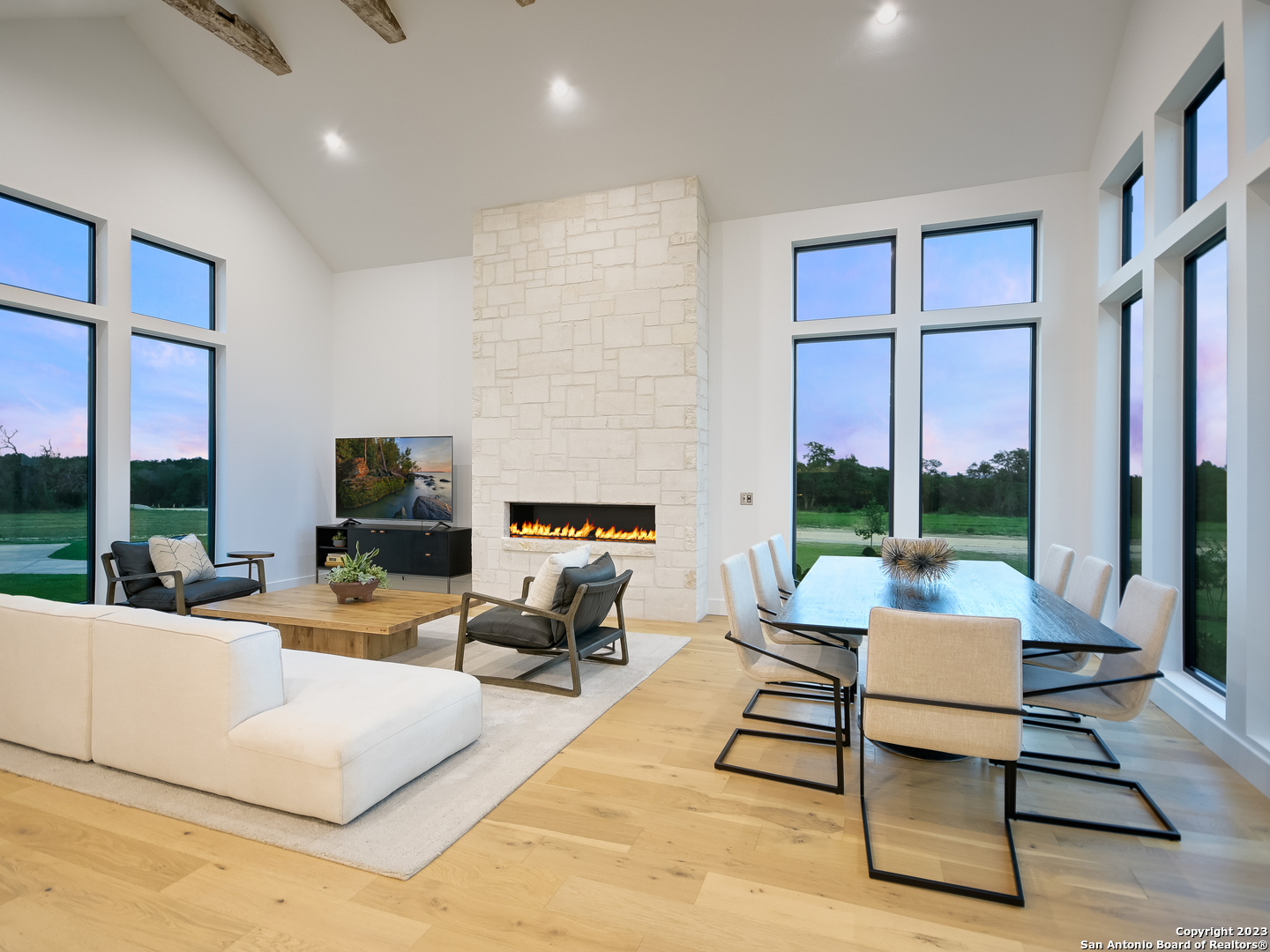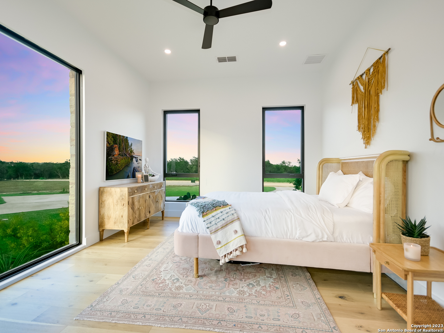 Welcome to this exceptional property that perfectly blends modern architecture with sophisticated design elements. From the moment you arrive, you'll be captivated by the sleek lines and contemporary appeal of this stunning home. Large windows throughout flood the interior with natural light, creating a bright and airy ambiance. The seamless integration of indoor and outdoor spaces allows for breathtaking views of the surrounding landscape, while providing a sense of serenity and tranquility. The pristine kitchen is a chef's dream, boasting high-end appliances, sleek cabinetry, and ample counter space. A large pantry offers plenty of storage space, keeping your kitchen organized and clutter-free. Step onto the inviting front porch and envision yourself sipping a morning coffee or enjoying an evening sunset. This charming outdoor space provides a welcoming retreat and adds to the overall curb appeal of the property. Upstairs, a balcony awaits, providing an elevated vantage point to admire the surroundings. Whether you're enjoying a quiet moment with a book or savoring a morning cup of tea, this balcony offers a serene escape. Indulge in the ultimate entertainment experience in the media room, where you can enjoy your favorite movies or host game nights with friends and family. Step outside into the expansive back yard and discover an outdoor kitchen that is perfect for hosting unforgettable gatherings. Don't miss the opportunity to own this remarkable property with its modern architecture, large windows, pristine kitchen with bar seating, inviting front porch, spacious pantry, upstairs balcony, media room, outdoor kitchen, and expansive back yard. Embrace the luxurious lifestyle that awaits and make this house your dream home. Schedule a showing today and experience the perfect blend of modern living and outdoor paradise.