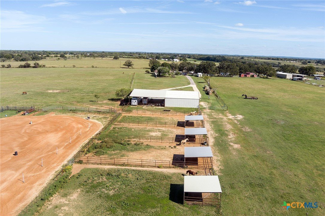 Great Horse property close to town. Custom built 3/2 Rock home sits on top of hill overlooking 19 plus acres improved grasses, horse facilities including 4 paddocks with runs, 3 stalls inside of big barn, tack room, workshop, covered parking for trailers, lighting, electric hookups for RVs, riding arena area and 6 horse walker all included. Custom home also has spacious rooms, living with rock fireplace, Kitchen/living/dining combo, extra room for office and nice 2 car attached carport. Beautiful clean property with improved grasses and really good sandy loam. All only 5 miles to Lockhart and easy access to Hwy 183 and 130 toll road.