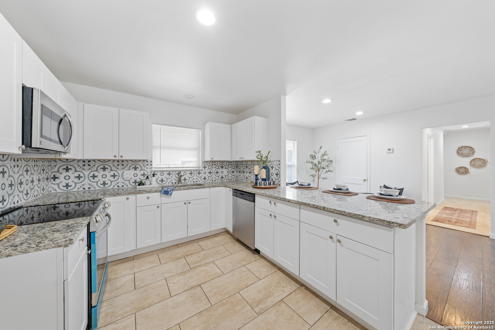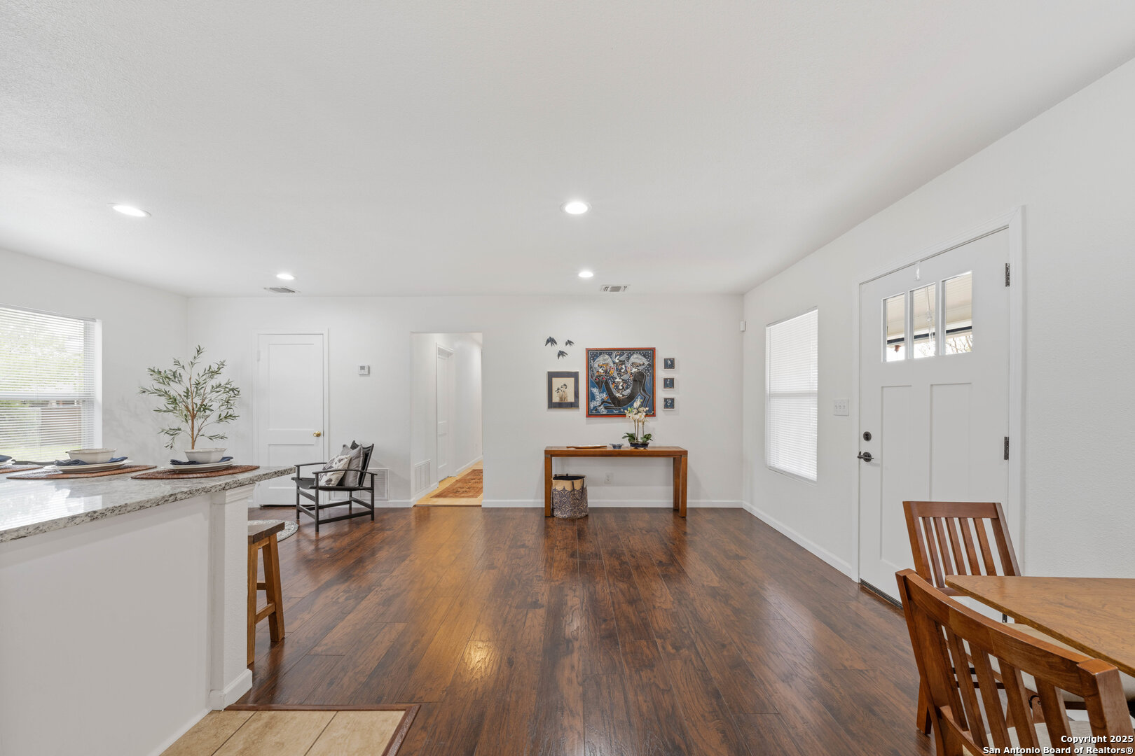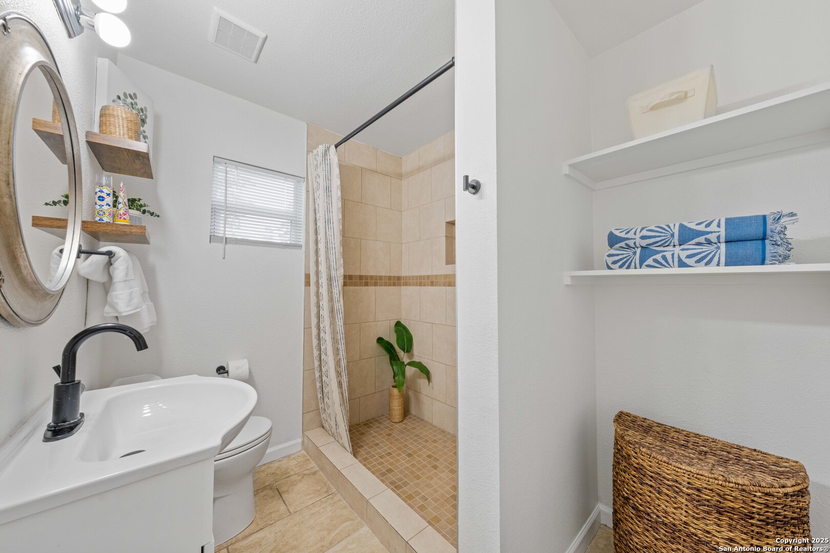 Great and affordable neighborhood in North Central San Antonio with quick access to downtown, The Pearl, The Quarry, Woodlawn lake, I-10 and 410. Inside, discover a modern kitchen with granite countertops, stainless-steel appliances, refreshed bathrooms, and elegant finishes throughout. A converted garage for additional living space. The primary suite offers a true retreat with a double vanity and separate his-and-her closets. Outside, updated exterior creates stunning curb appeal, while covered decks at both the front and back invite you to relax and enjoy the nice flat large yard and covered patio that can accommodate large gatherings. A small garden ready space awaits your personal touch perfect for adding your own vegetables or seasonal blooms. The lot is deep with alley access in the back, so there's plenty of opportunity to build an additional structure as well.