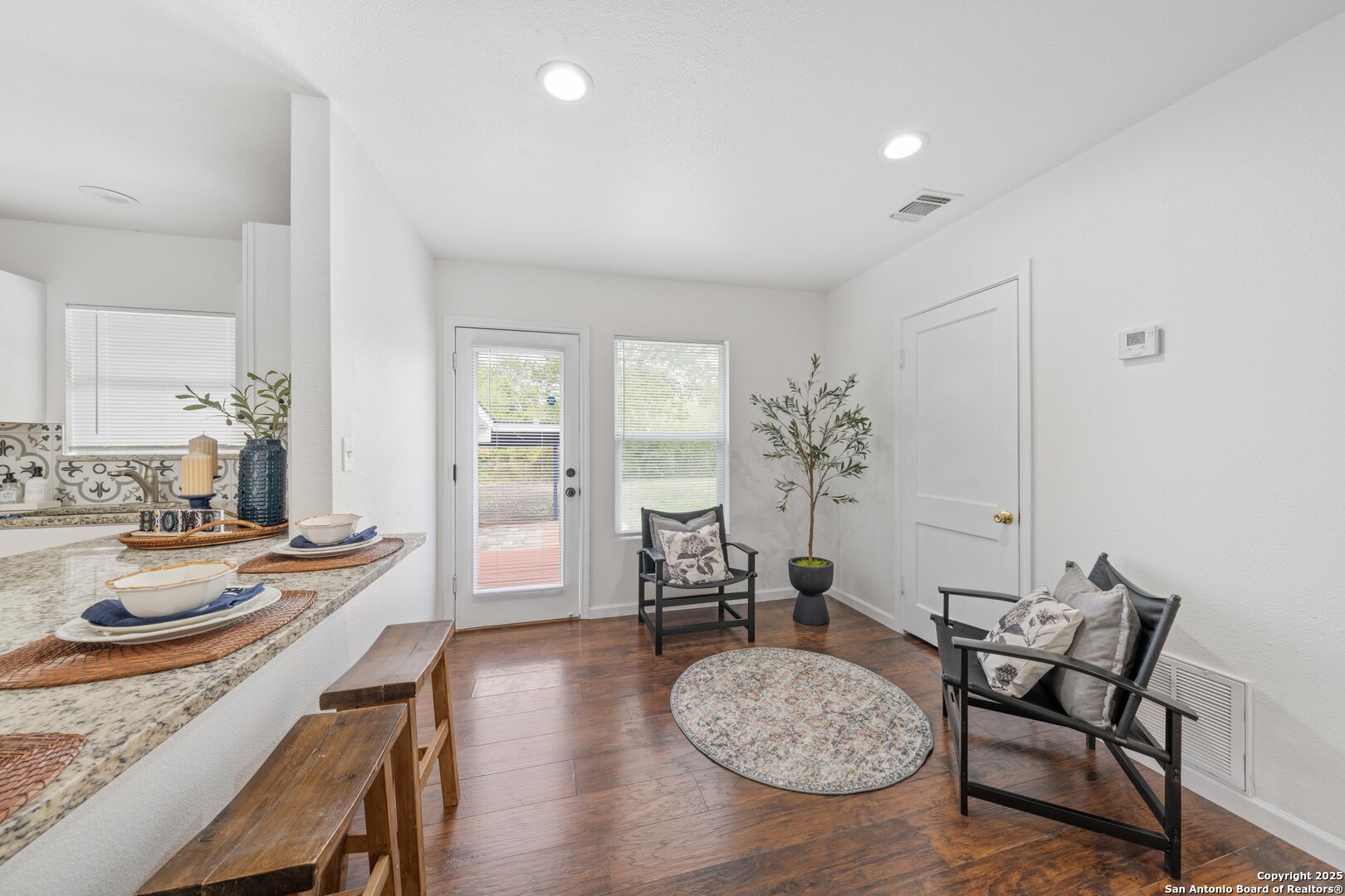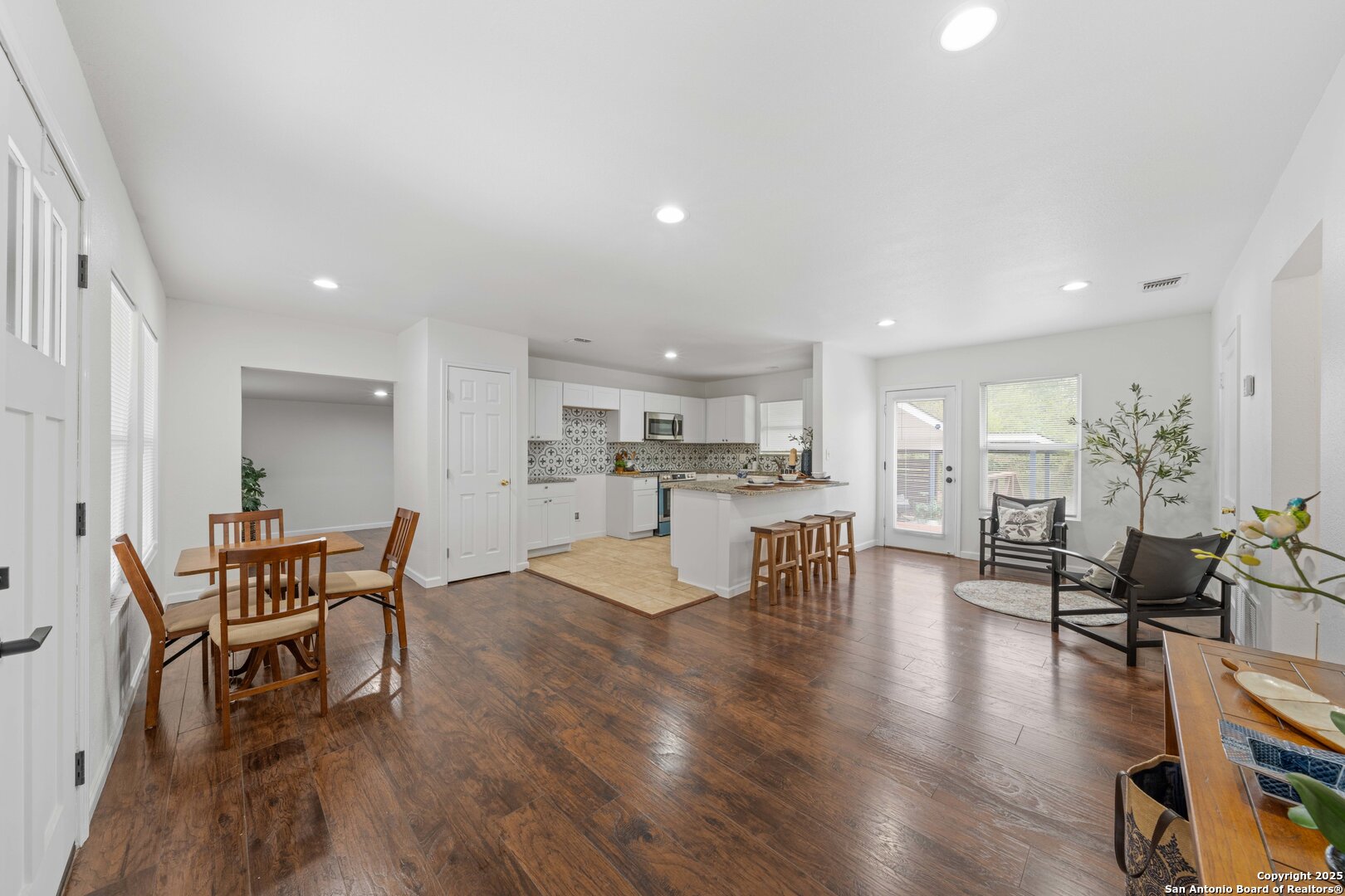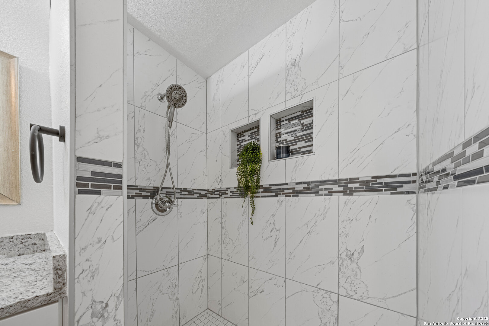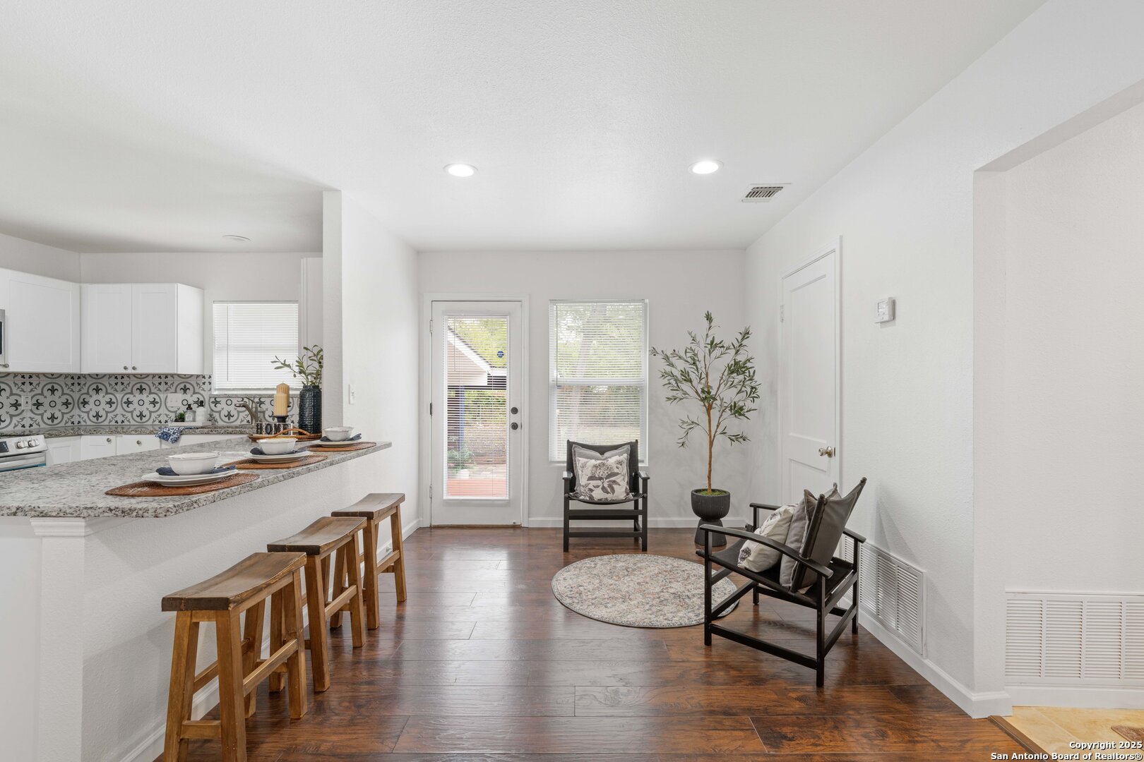 Great and affordable neighborhood in North Central San Antonio with quick access to downtown, The Pearl, The Quarry, Woodlawn lake, I-10 and 410. Inside, discover a modern kitchen with granite countertops, stainless-steel appliances, refreshed bathrooms, and elegant finishes throughout. A converted garage for additional living space. The primary suite offers a true retreat with a double vanity and separate his-and-her closets. Outside, updated exterior creates stunning curb appeal, while covered decks at both the front and back invite you to relax and enjoy the nice flat large yard and covered patio that can accommodate large gatherings. A small garden ready space awaits your personal touch perfect for adding your own vegetables or seasonal blooms. The lot is deep with alley access in the back, so there's plenty of opportunity to build an additional structure as well.