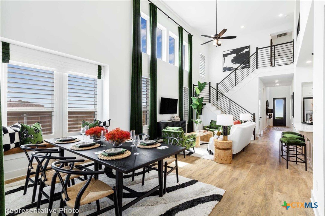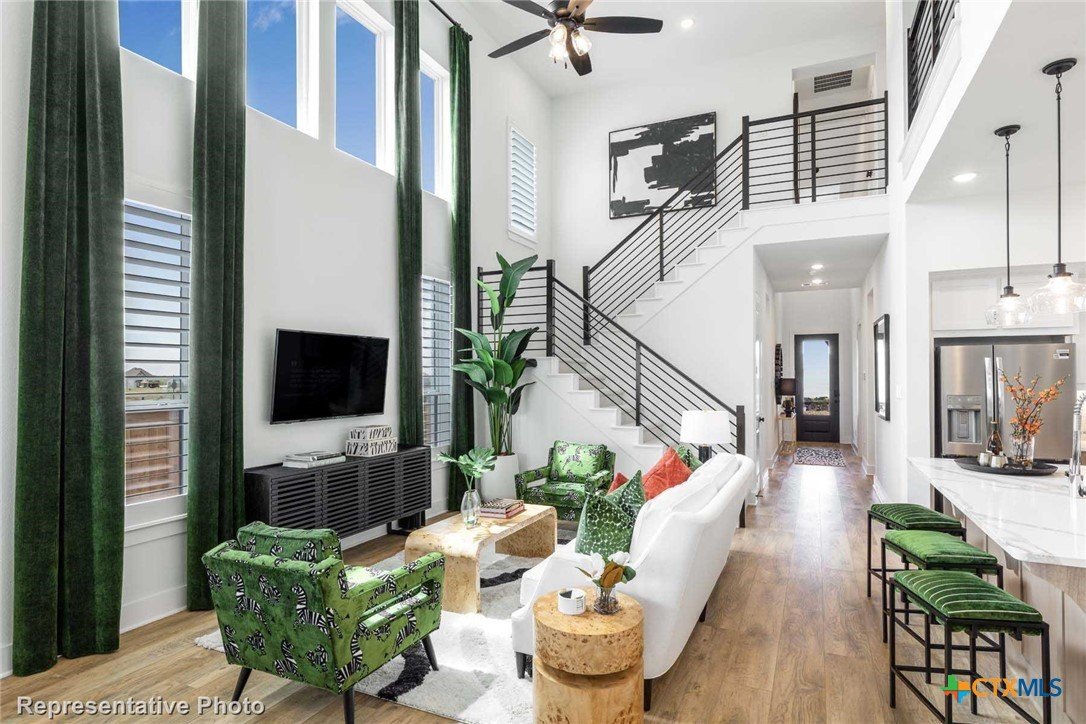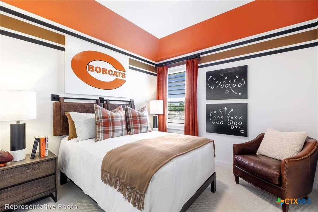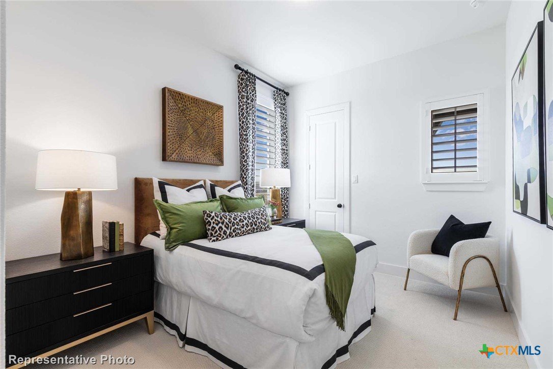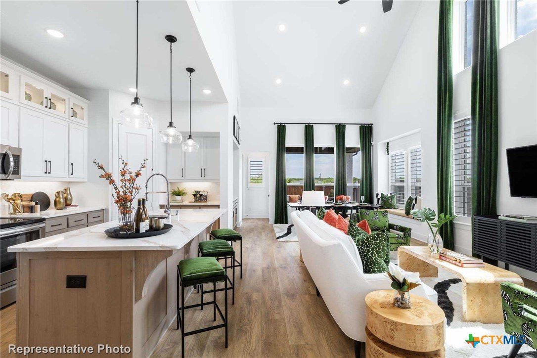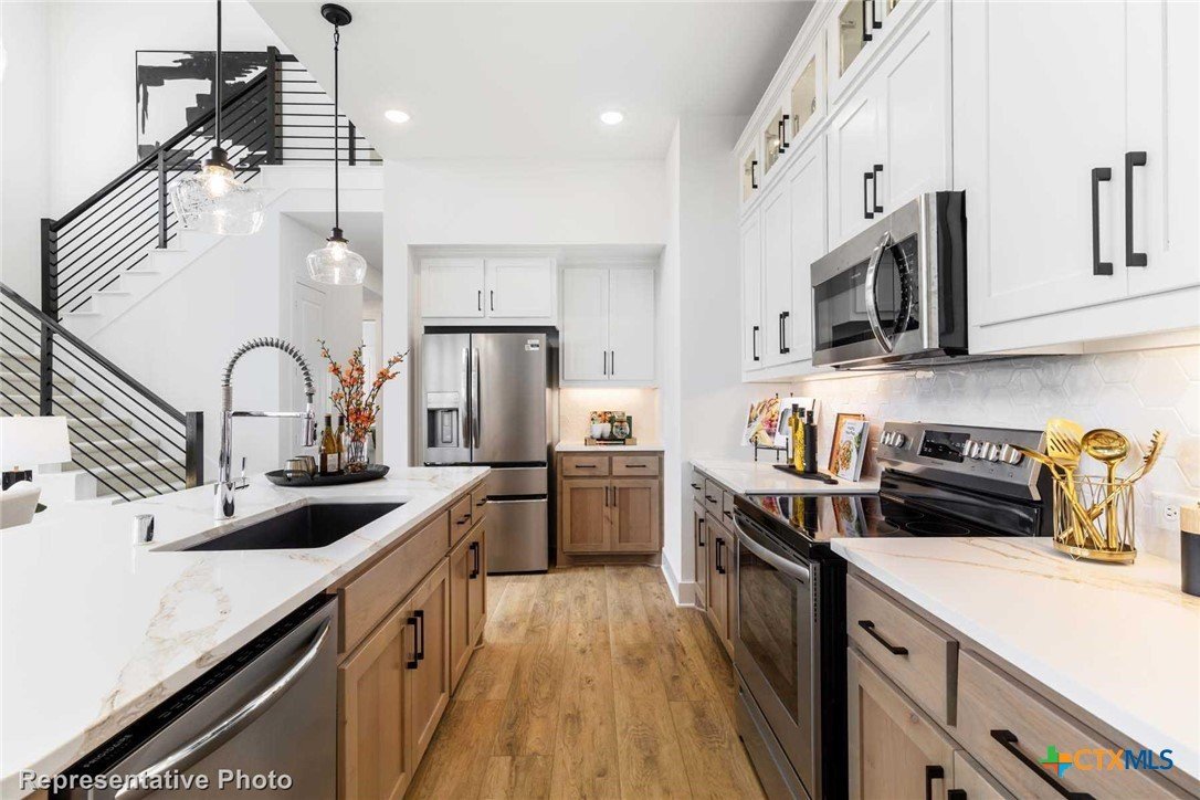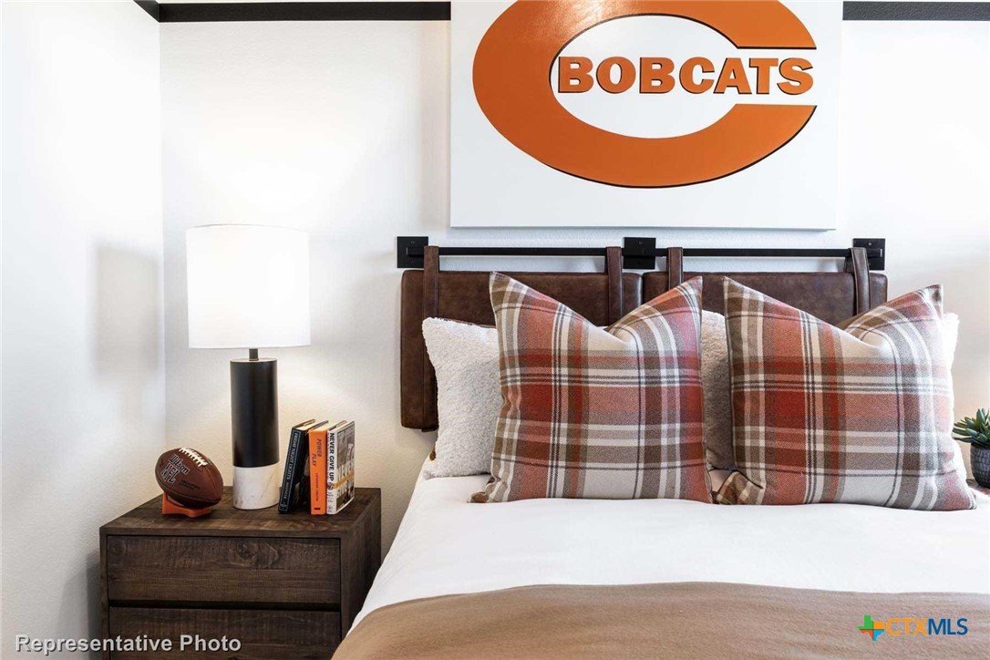 MLS 563278 - Built by Highland Homes - Ready Now! ~ Two story home with brick elevation and the added option of an entertainment room on the second floor make it one of our larger two story plans. Features include gourmet kitchen with microwave oven, gas cooktop w stainless steel vent hood and center island with quartz countertops. This home includes 8' doors downstairs, freestanding tub in primary bath, master bay window, iron railing at stairs to top ilo standard half wall, and extended outdoor living area. Full sod and sprinkler system included!