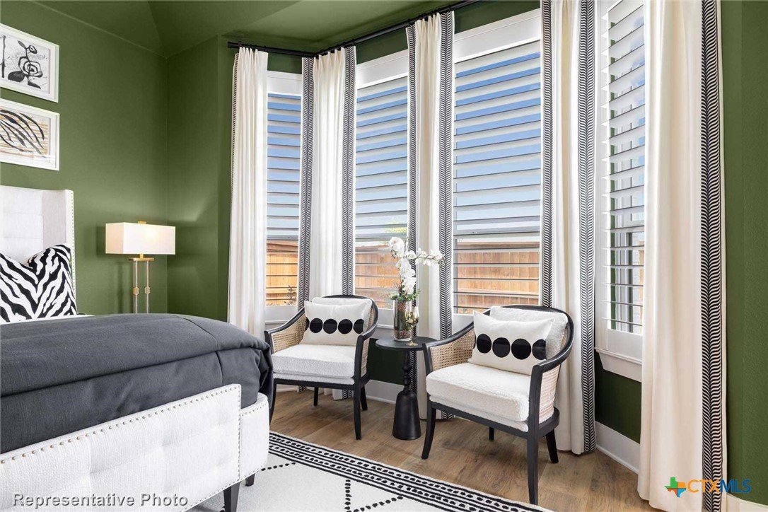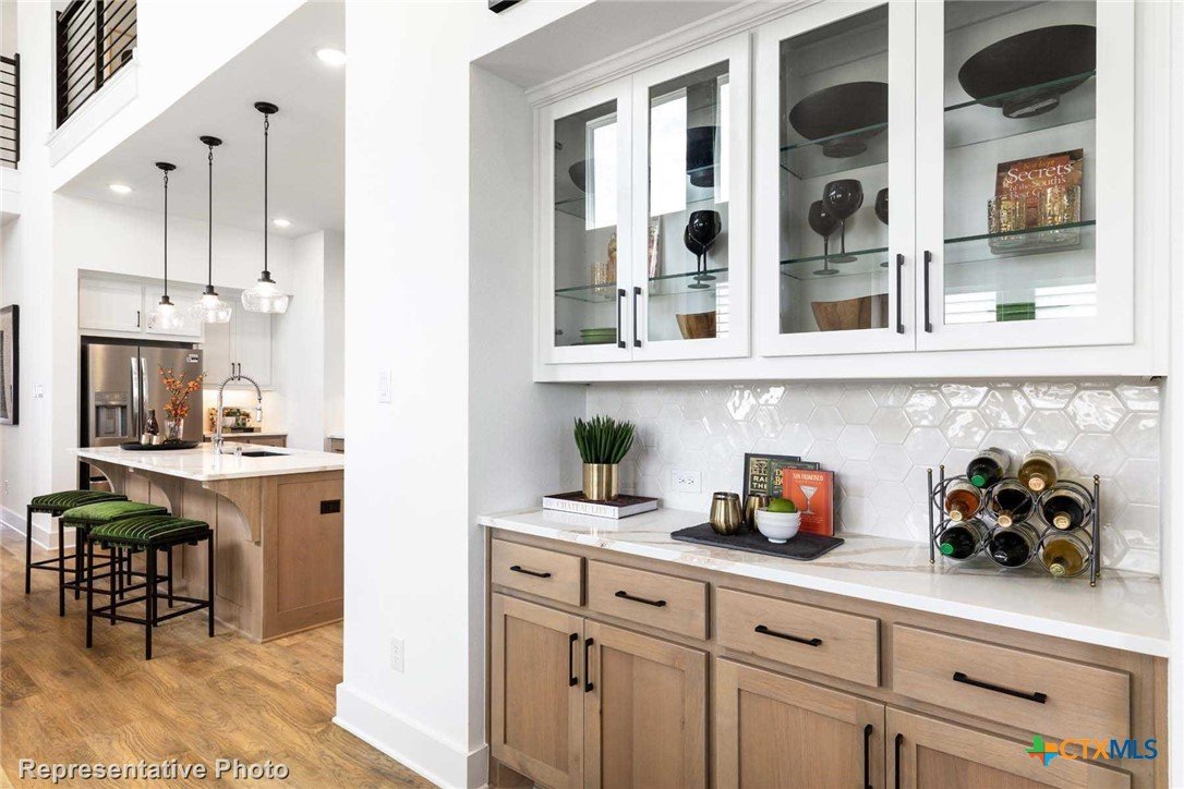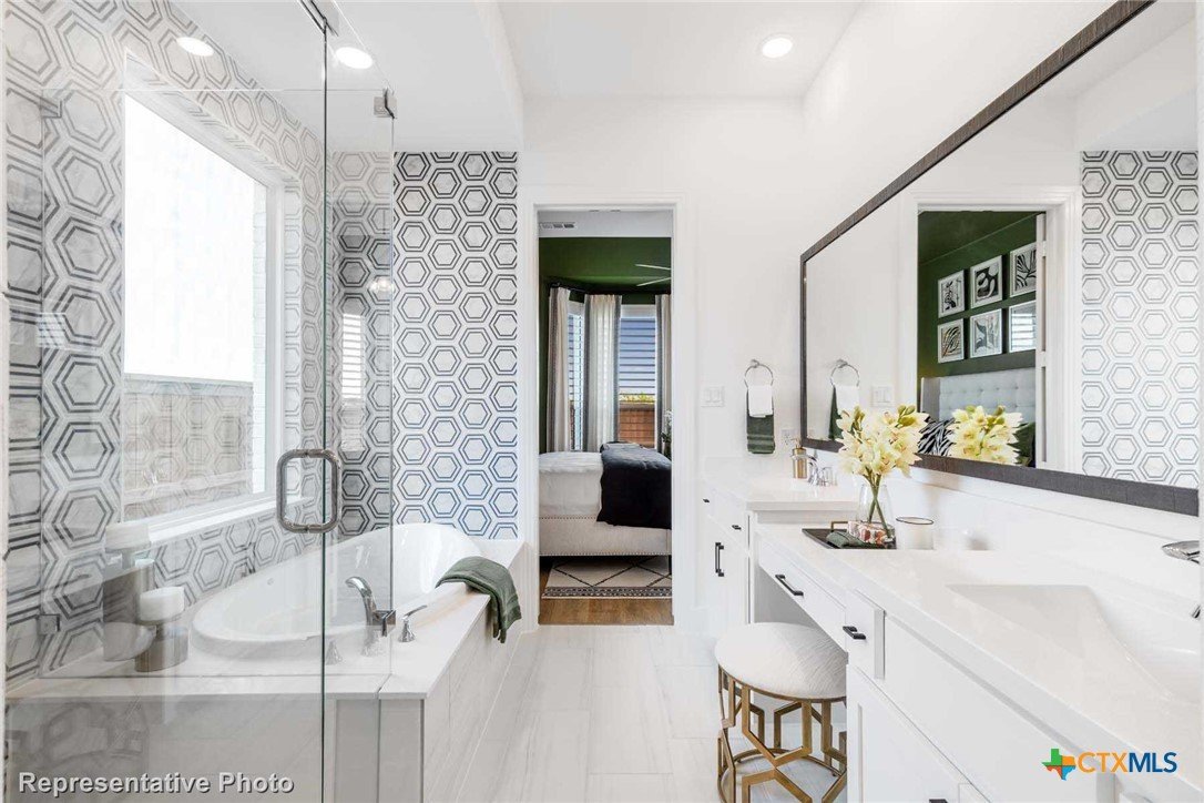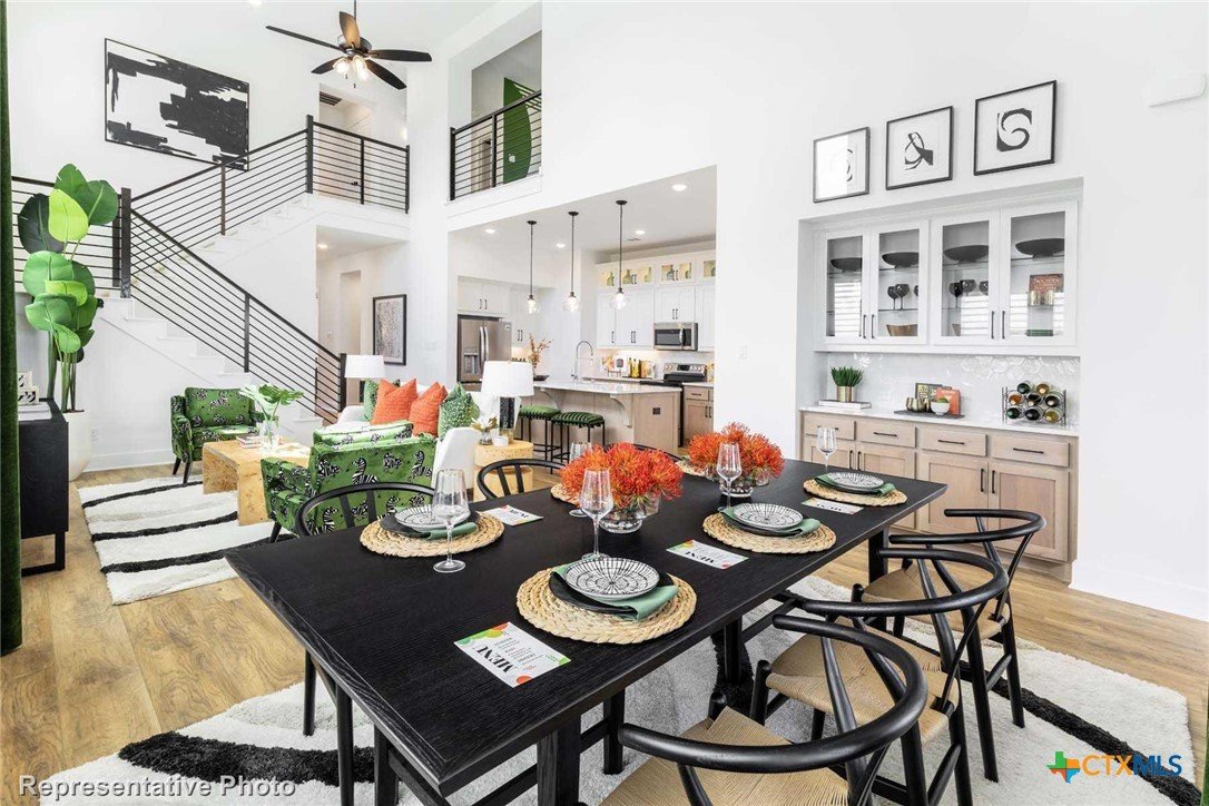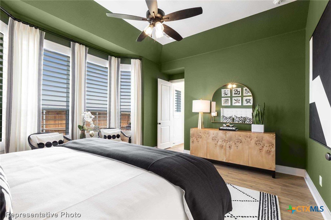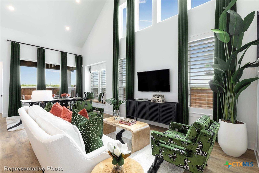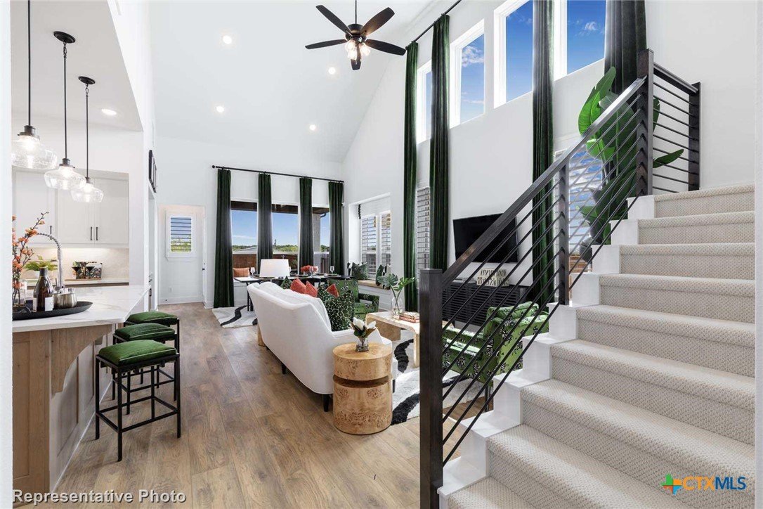 MLS 563278 - Built by Highland Homes - Ready Now! ~ Two story home with brick elevation and the added option of an entertainment room on the second floor make it one of our larger two story plans. Features include gourmet kitchen with microwave oven, gas cooktop w stainless steel vent hood and center island with quartz countertops. This home includes 8' doors downstairs, freestanding tub in primary bath, master bay window, iron railing at stairs to top ilo standard half wall, and extended outdoor living area. Full sod and sprinkler system included!