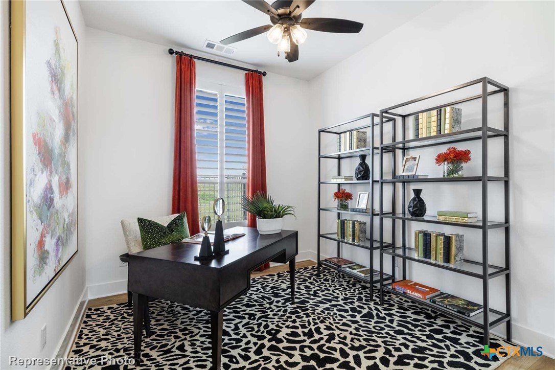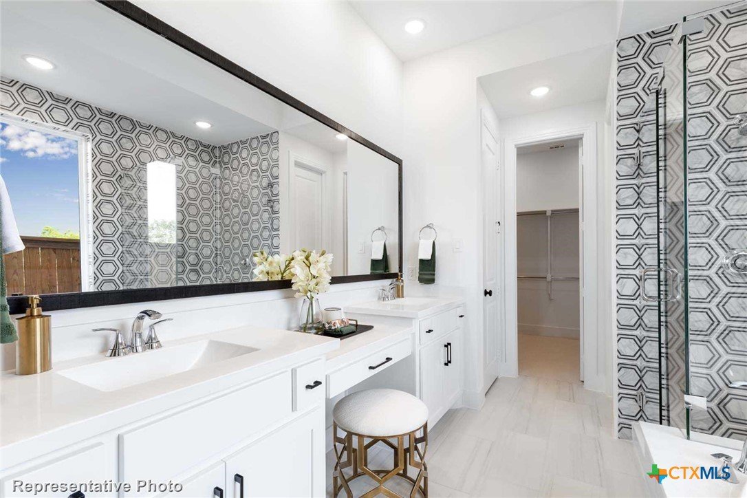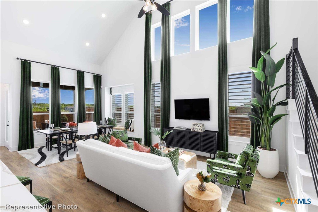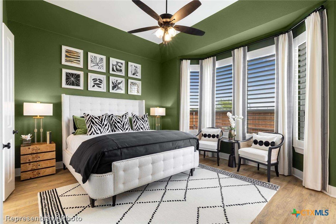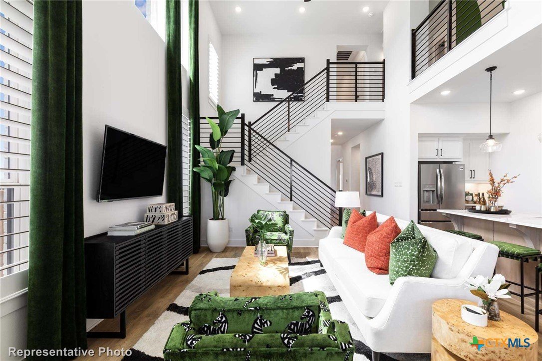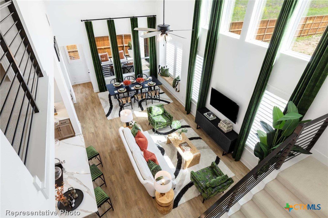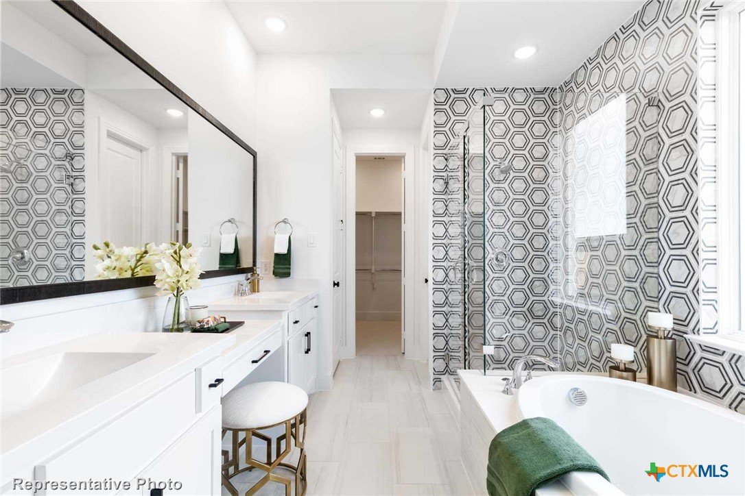 MLS 563278 - Built by Highland Homes - Ready Now! ~ Two story home with brick elevation and the added option of an entertainment room on the second floor make it one of our larger two story plans. Features include gourmet kitchen with microwave oven, gas cooktop w stainless steel vent hood and center island with quartz countertops. This home includes 8' doors downstairs, freestanding tub in primary bath, master bay window, iron railing at stairs to top ilo standard half wall, and extended outdoor living area. Full sod and sprinkler system included!
