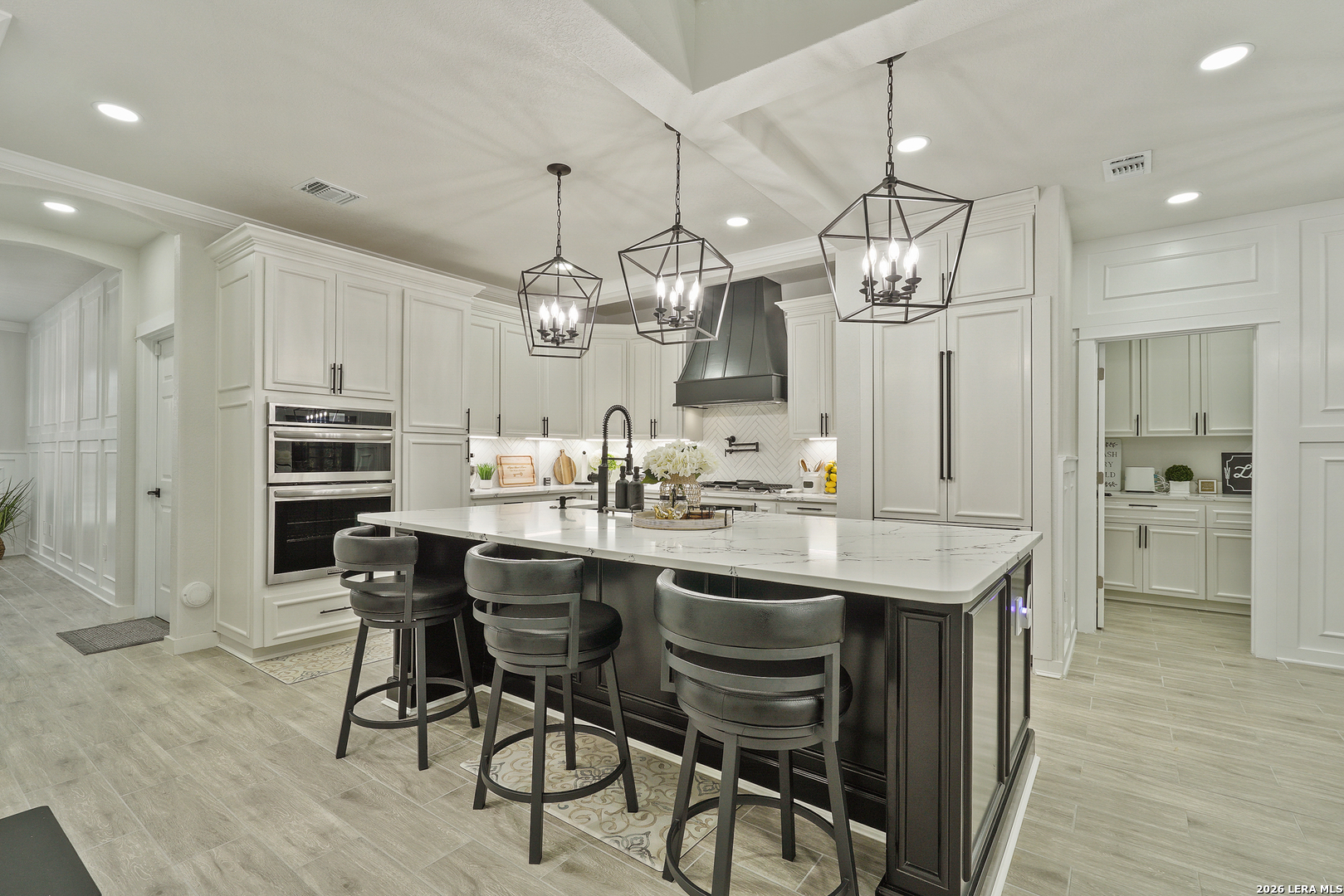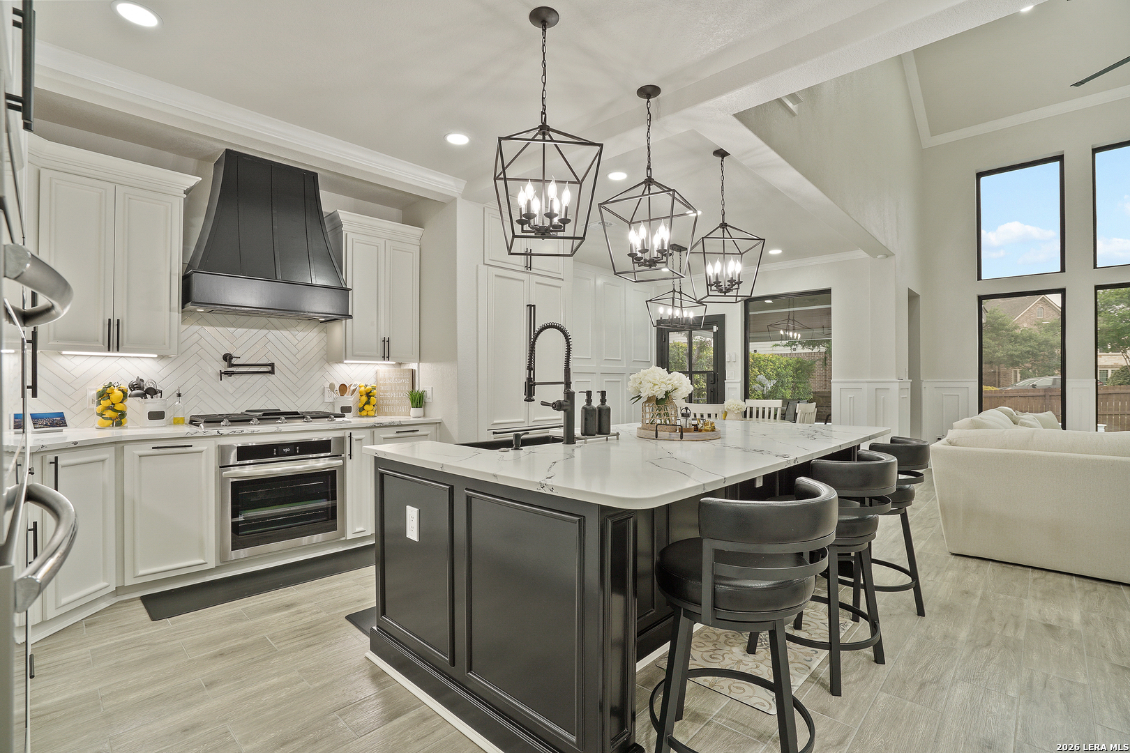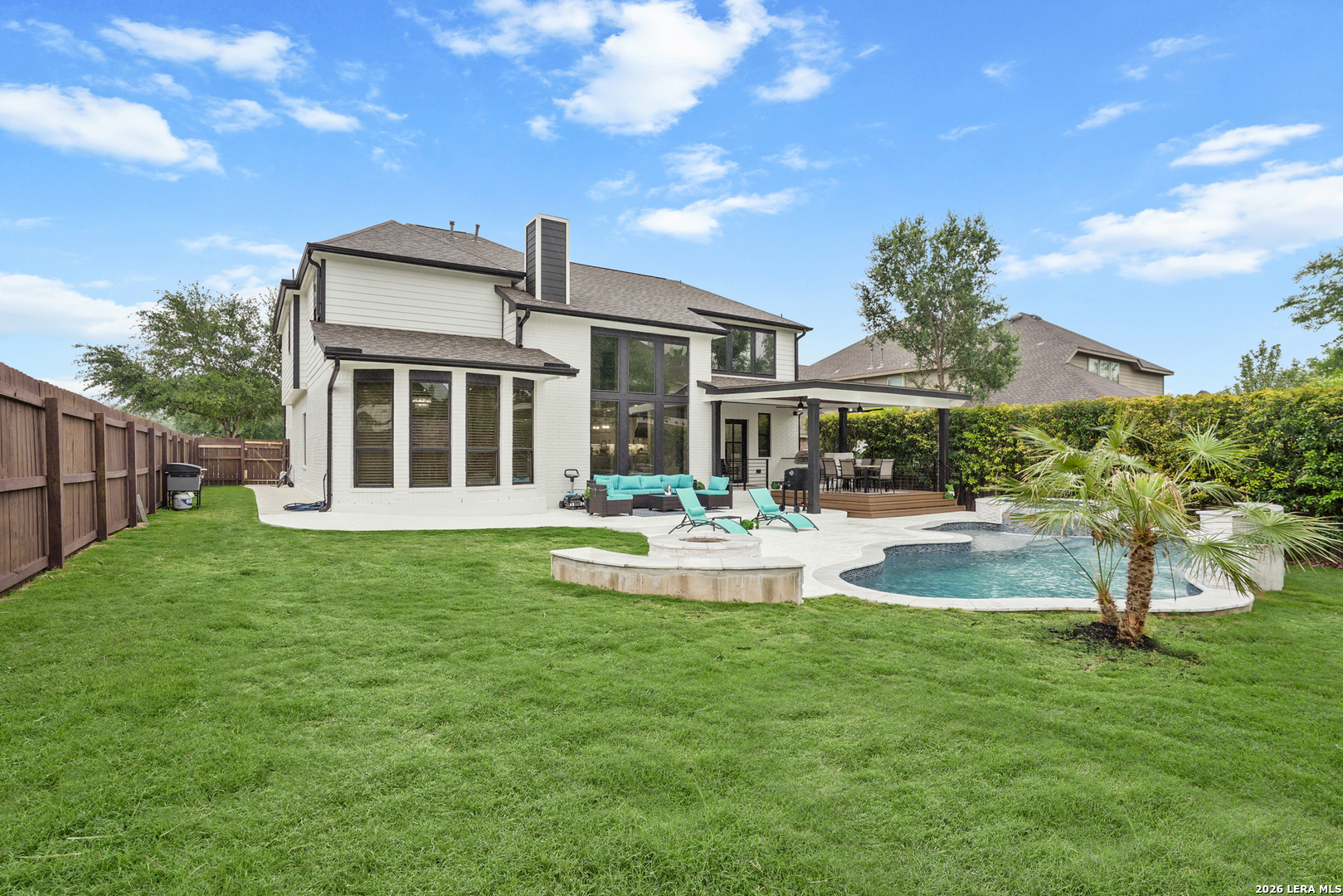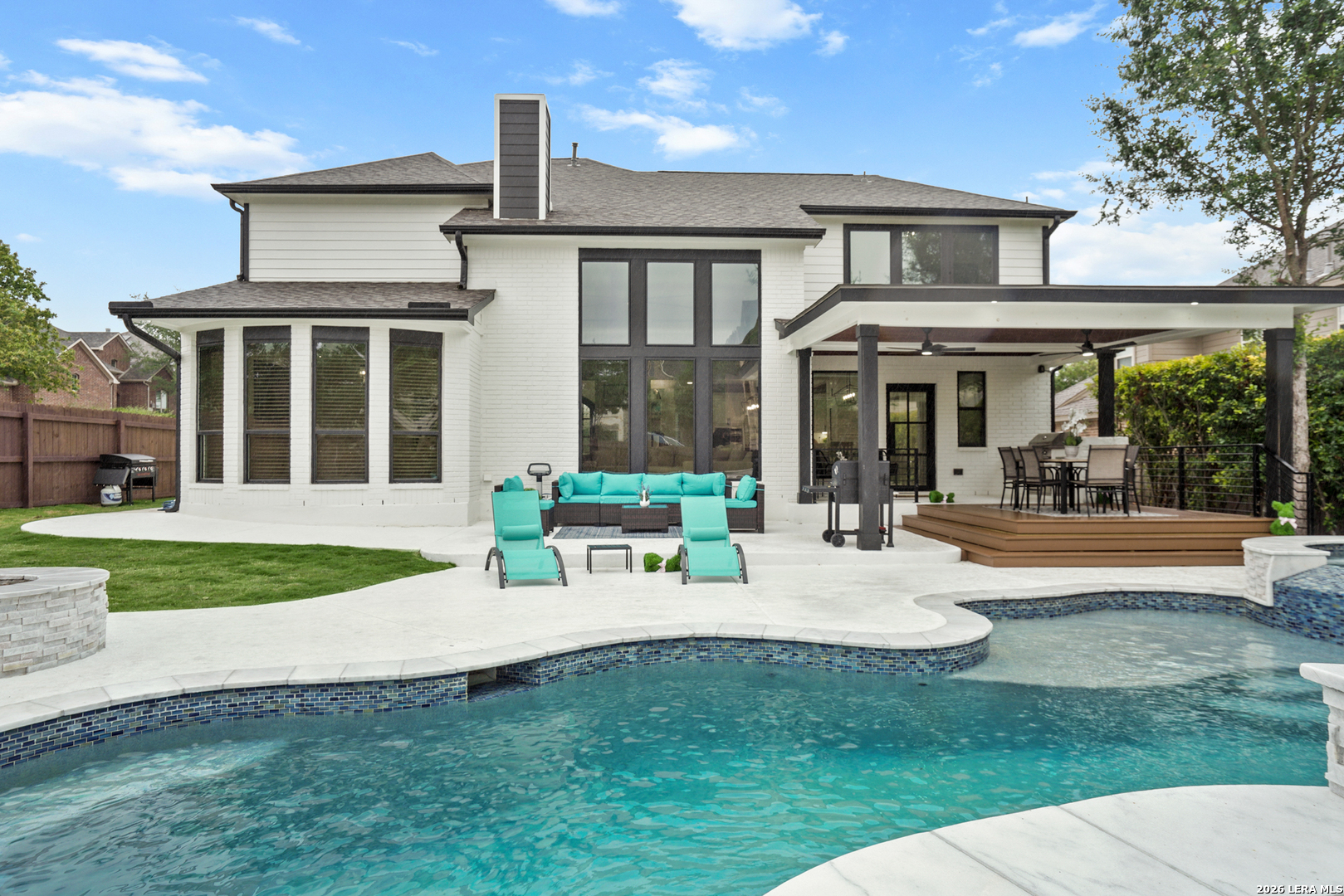 This beautifully updated home offers a seamless blend of comfort, style, and modern convenience with extensive upgrades throughout. Major improvements include a fully replaced roof, updated fencing, and completely modernized plumbing and electrical systems for peace of mind. The home features two high-capacity Carrier 5-ton AC units, electric water heaters, and a water softener system, ensuring year-round efficiency. Inside, you'll find elegant crown molding, upgraded wainscoting, custom cabinets and closets, and enhanced windows with a sleek blinds system. The kitchen is equipped with upgraded appliances and a quiet trash compactor. Additional highlights include custom stair railings, epoxy-coated garage flooring, and quiet-control garage doors. Outdoor living has upgraded pool coping, added sidewalks, and an extended covered deck with a full outdoor kitchen. Also includes a custom TV stand, commercial-grade fridge, washer and dryer set, wine fridge, and under-counter beverage cooler.
