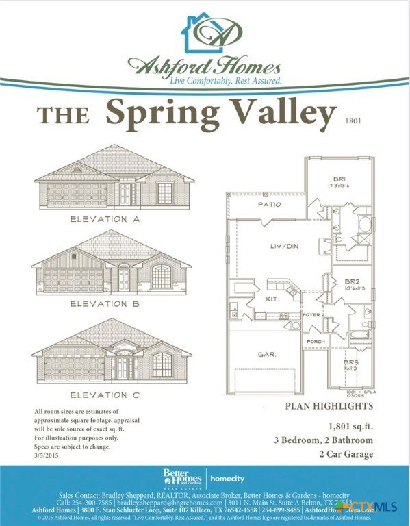 Ashford Homes presents the Spring Valley plan. This beautiful 3 bedroom home features large open spaces with lots of storage. The home features wood look ceramic tile floors, granite countertops, stainless steel appliances to include a refrigerator, ceiling fans in every room, full yard sod, sprinkler system and privacy fence.