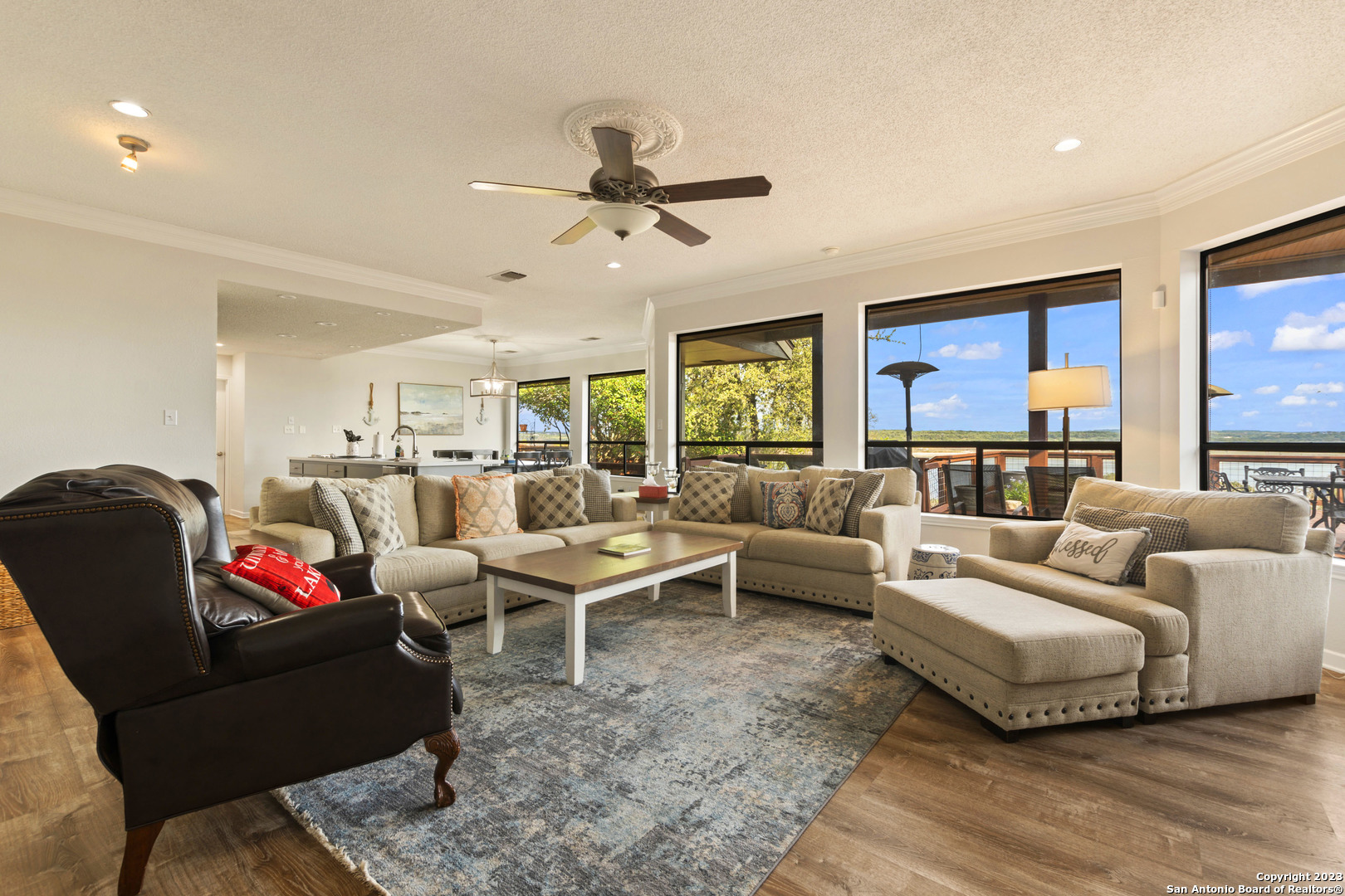 MEMORIES ARE MADE AT THE LAKE!!! This exceptional waterfront home embraces panoramic lake views from the moment you walk thru the front door. The interior was beautifully remodeled (2022) and the exterior was painted and roof replaced (2025). The main level includes an open concept living room, dining room, kitchen, primary suite, laundry room, half bath and study. The updated kitchen has a large center island with breakfast bar seating, quartz countertops, soft close cabinets and new stainless steel appliances. New easy care waterproof luxury vinyl flooring has been installed throughout the home. Primary bath and upstairs guest bath have been fully updated to include quartz countertops, new tile and seamless glass shower enclosures. Two of the upstairs bedrooms share a private balcony both with "WOW" views of the lake. The supersized deck on back is perfect for entertaining, grilling and watching the evening sunsets. All of this plus a gentle walk down to the water makes this home "THE ONE".