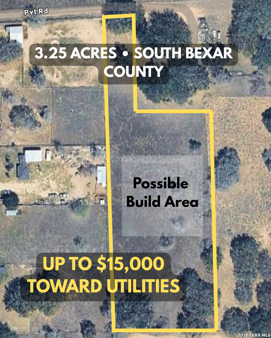 Price improvement + seller incentives available! Seller offering up to $15,000 toward buyer's allowable costs for water, septic, or electrical installation (subject to lender approval). Discover 3.254 acres of peaceful countryside in southern Bexar County, now offered at $169,900. This cleared and build-ready property offers a blend of level terrain and mature trees, providing both usability and natural beauty. Located just off Campbellton Rd with convenient access to Loop 1604 and Hwy 16, this private tract offers the perfect balance of country living with proximity to city amenities. The property is partially fenced, recently surveyed with clearly marked boundaries, and includes a 30-foot recorded ingress/egress easement for access. No HOA provides flexibility for a variety of residential uses, including custom homes or manufactured homes (buyer to verify). Utilities are nearby; buyer to verify availability. Septic required. Recently subdivided from a larger tract, this is a great opportunity to secure acreage close to San Antonio with space, flexibility, and long-term potential.