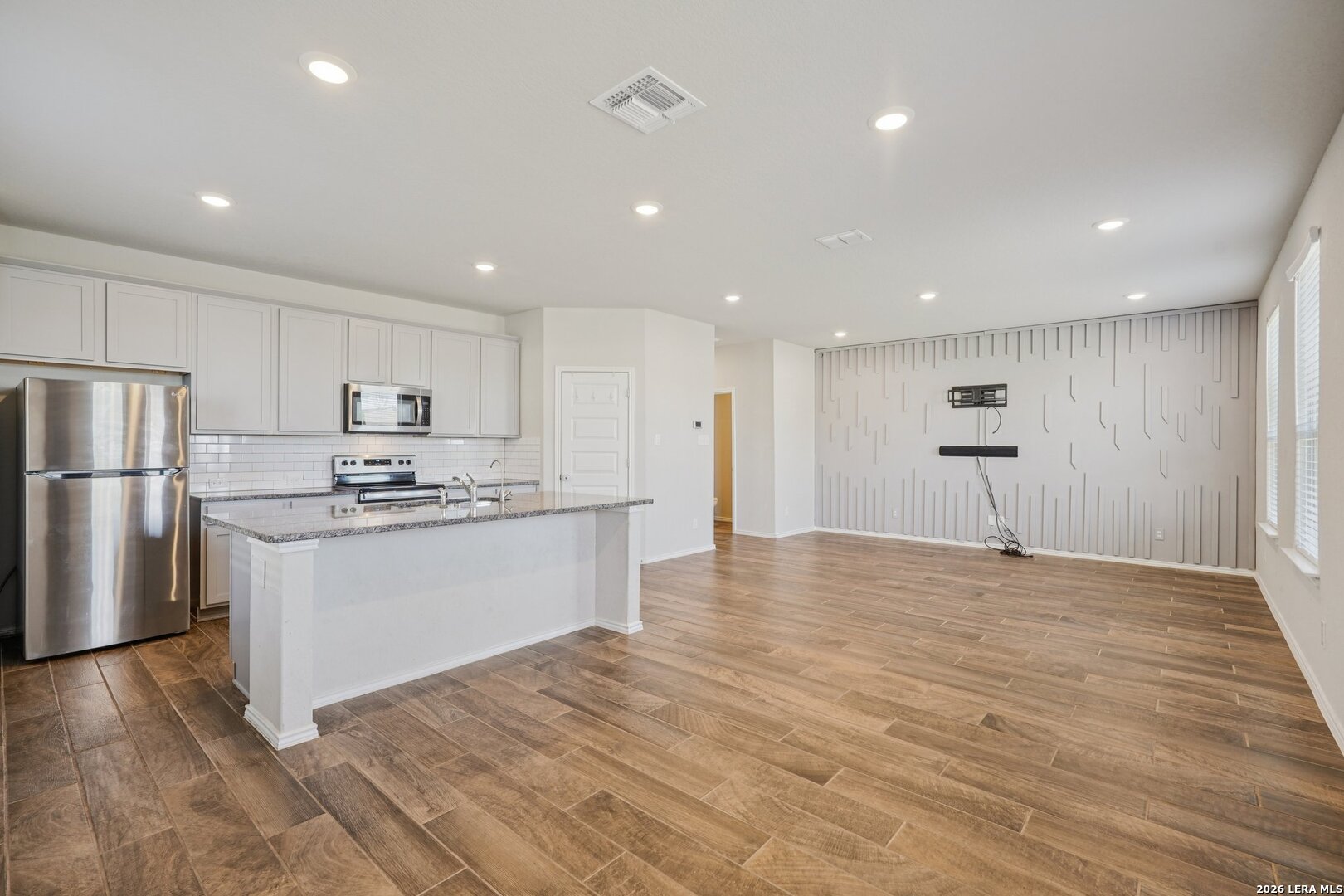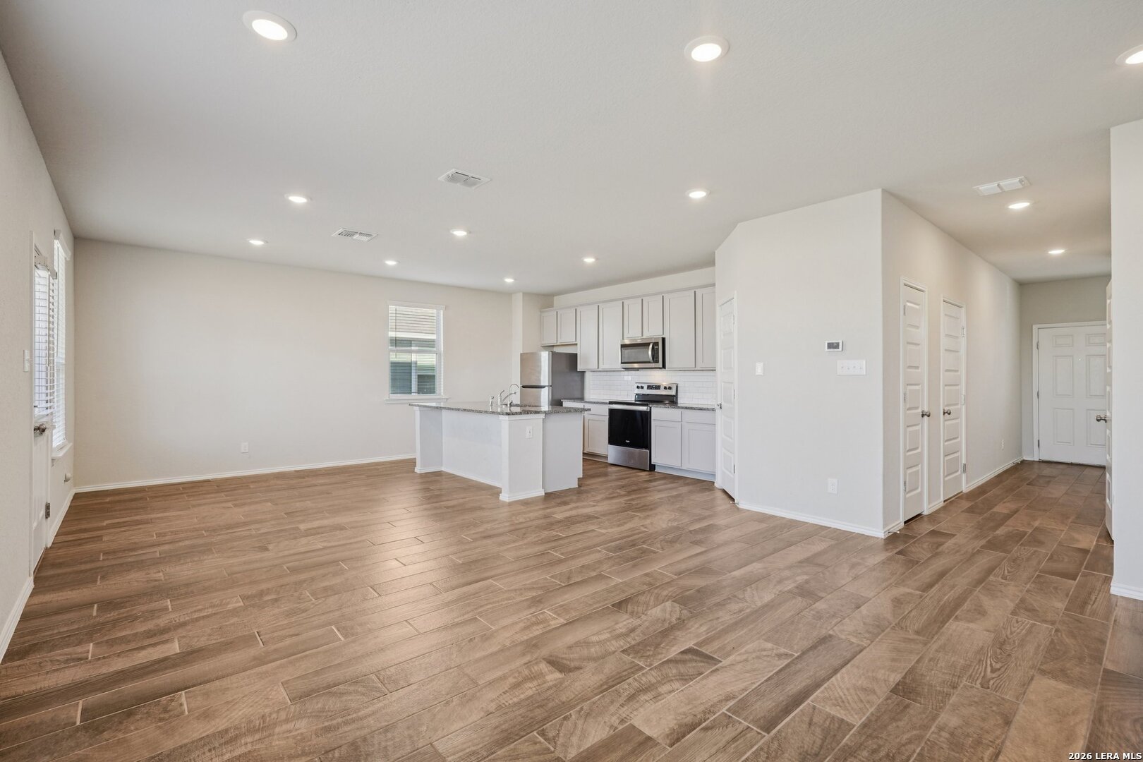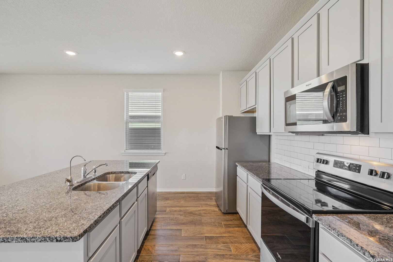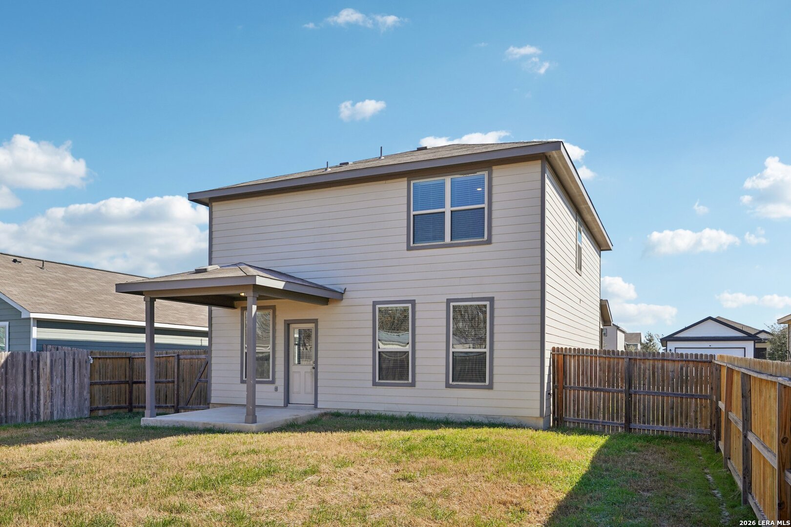 Very low Assumable VA rate. This modern 2 story home features 3 bedrooms, 2.5 baths, and space for everything. You'll love the open floor plan, natural lighting, and ceramic tile flooring. Your island kitchen features sleek granite counters, stainless steel appliances, and 42 inch cabinetry. Upstairs, you'll find a large loft with built-in shelves and a cozy reading nook. The primary suite comes with a roomy walk-in closet, dual sinks, and walk-in shower. Two additional bedrooms are split for extra privacy, along with the second full bath offering plenty of counter space. Relax on your covered patio or host backyard BBQ's anytime. Residents also have access to a community park/playground and sports court. Easy access to 46 and I-35, only 15 mins to HEB, 20 mins to New Braunfels, 30 mins to San Marcos, and 40 mins to Downtown San Antonio.