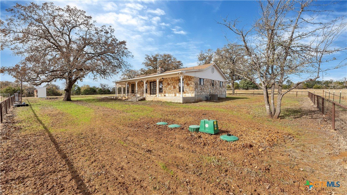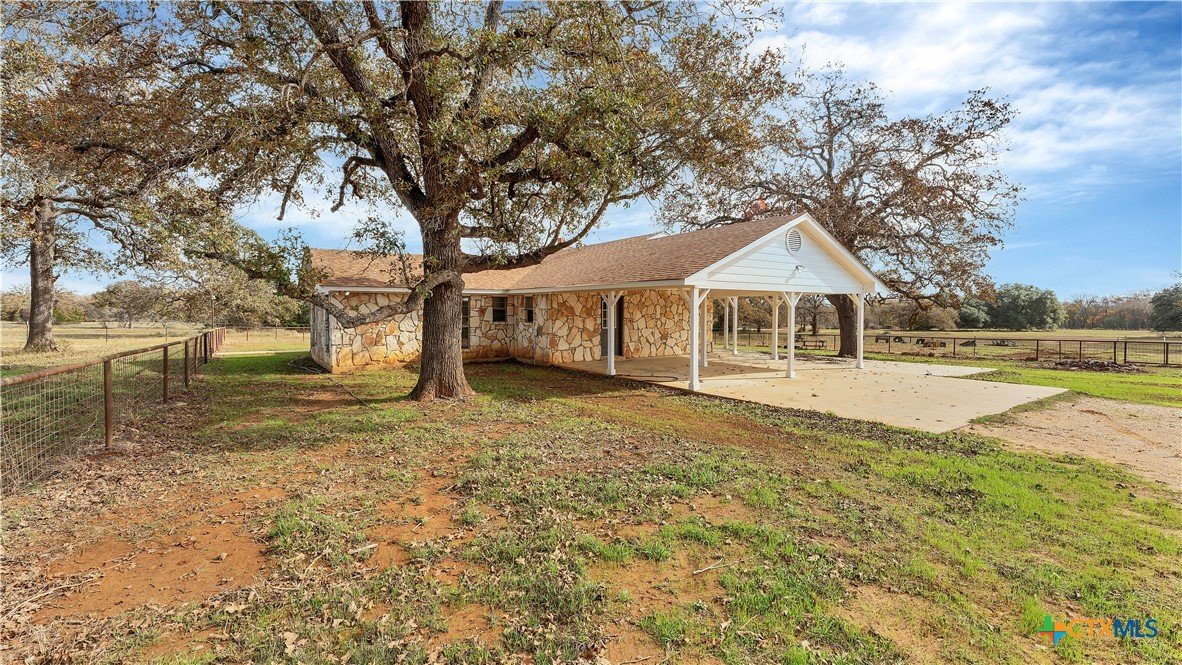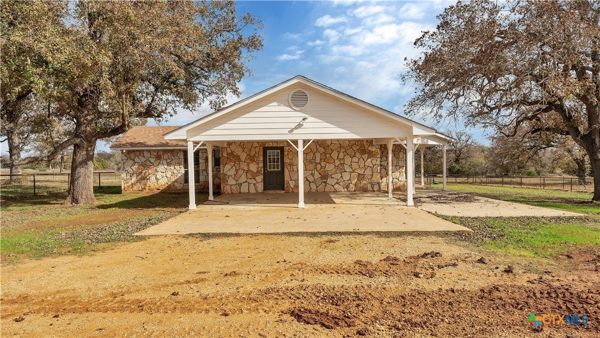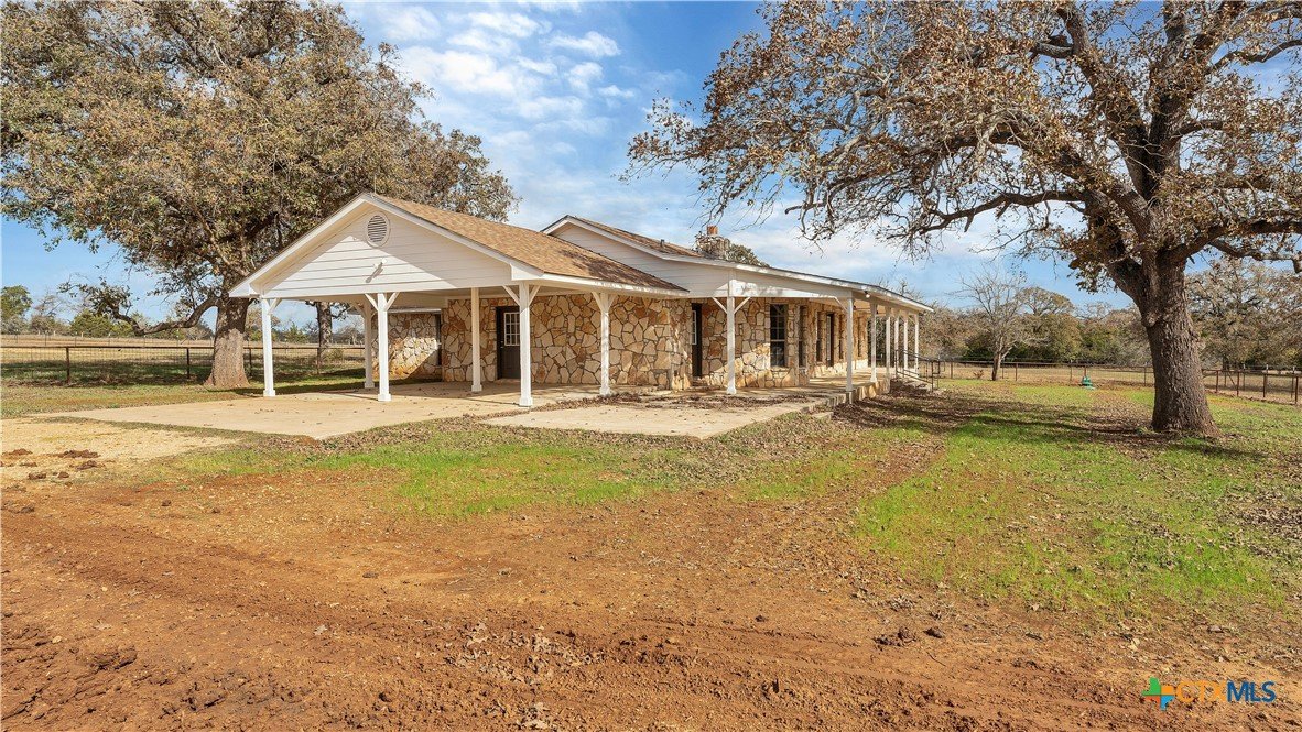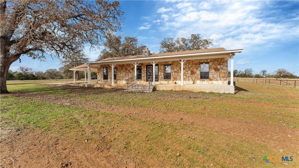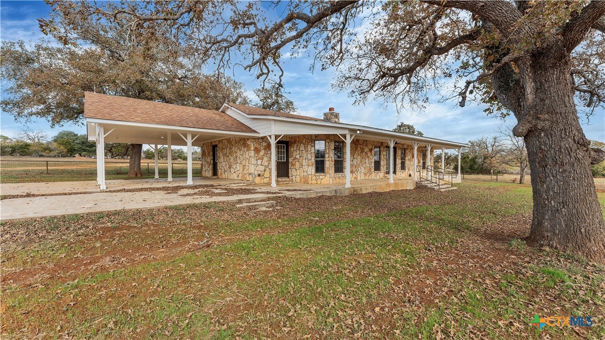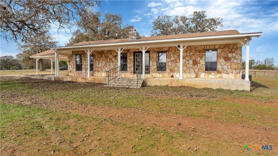 Recently upgraded ranch style, stone, one story home on 2+ Acres. Picturesque countryside views, with mature oaks and curb appeal. Recently installed 30 year composition shingle roof, and septic system. Cosmetic improvements include, fresh exterior and interior neutral paint, vinyl plank flooring and new electrical outlets and switches. The water well shed was updated as well. Excellent floorplan, with large stone, wood burning fireplace, rustic chandeliers and split bedrooms. Laundry mud room off of the expansive carport with half bath. Master suite with walk in closet and spa like retreat. Two bedrooms and one bathroom with double vanity and shower/tub combo on the north wing of the home. Spacious kitchen with abundance of counterspace and custom cabinets. Plentiful windows throughout, bring in natural light. High ceilings, wood beams and beautiful front door. Excellent entertainment space on the covered back porch with secluded yard.