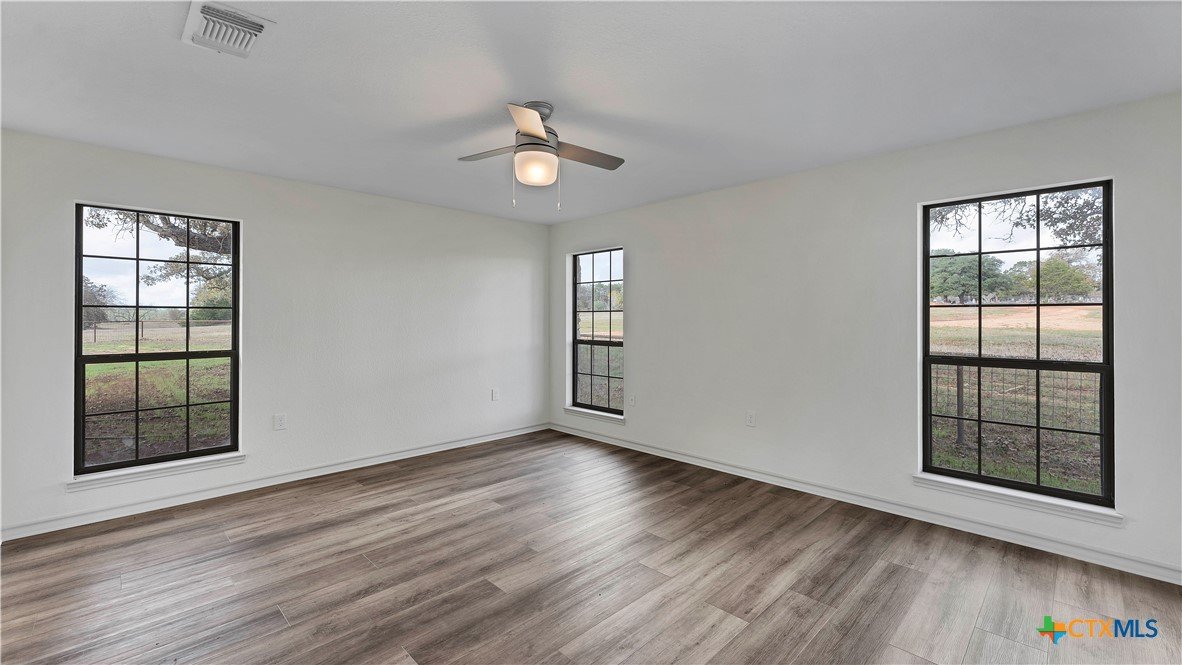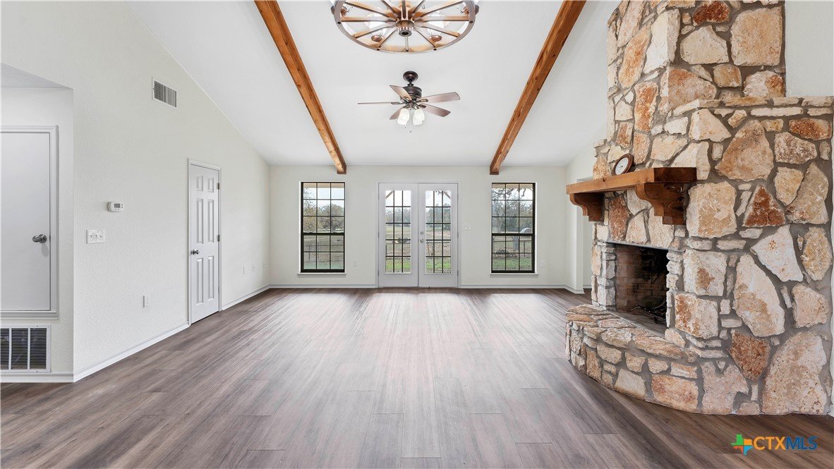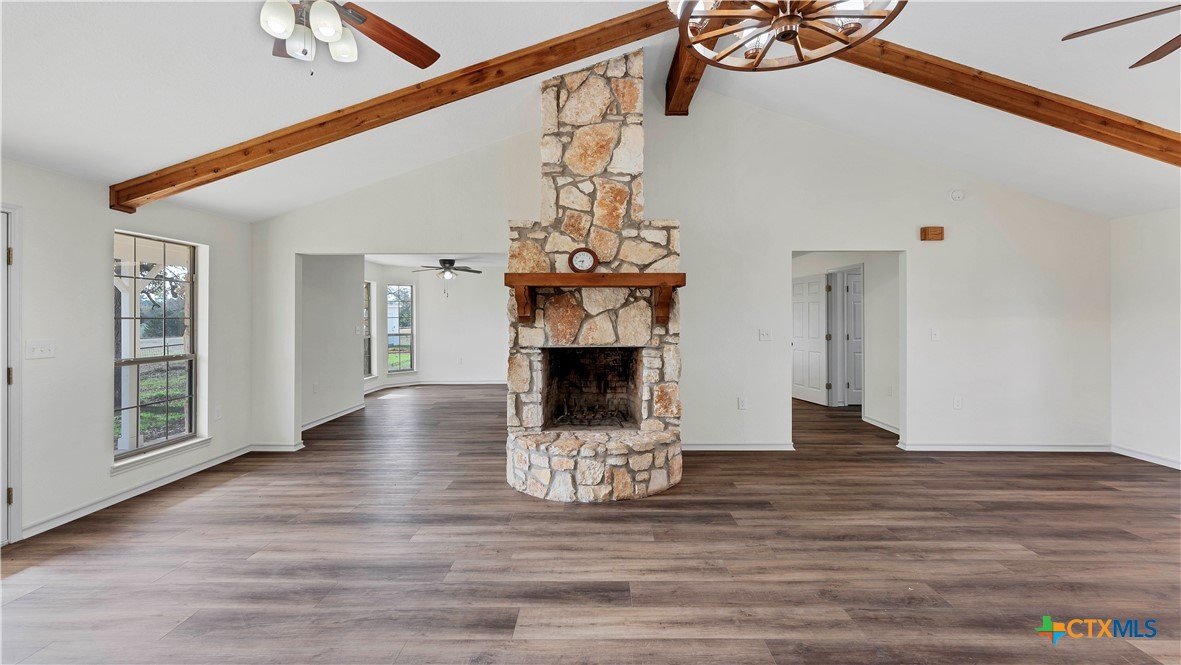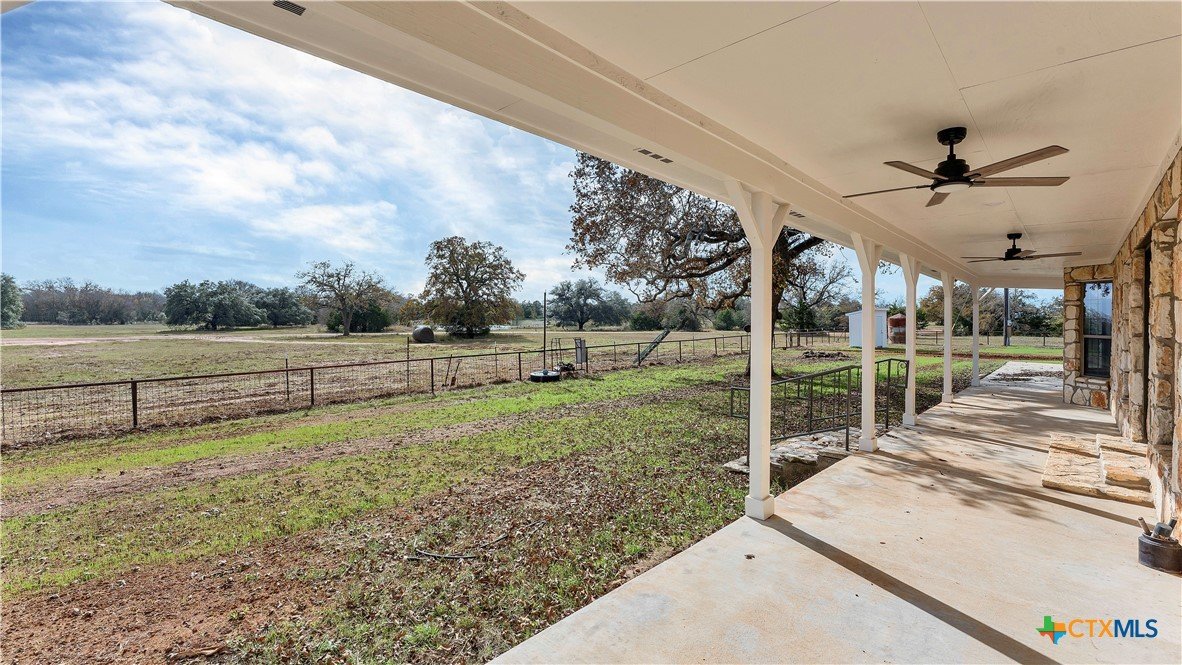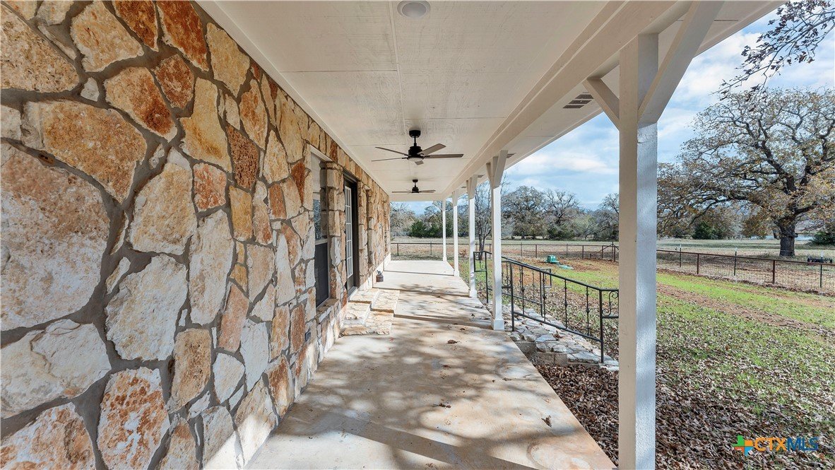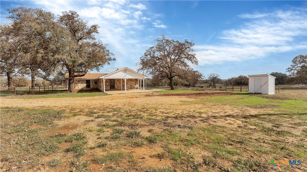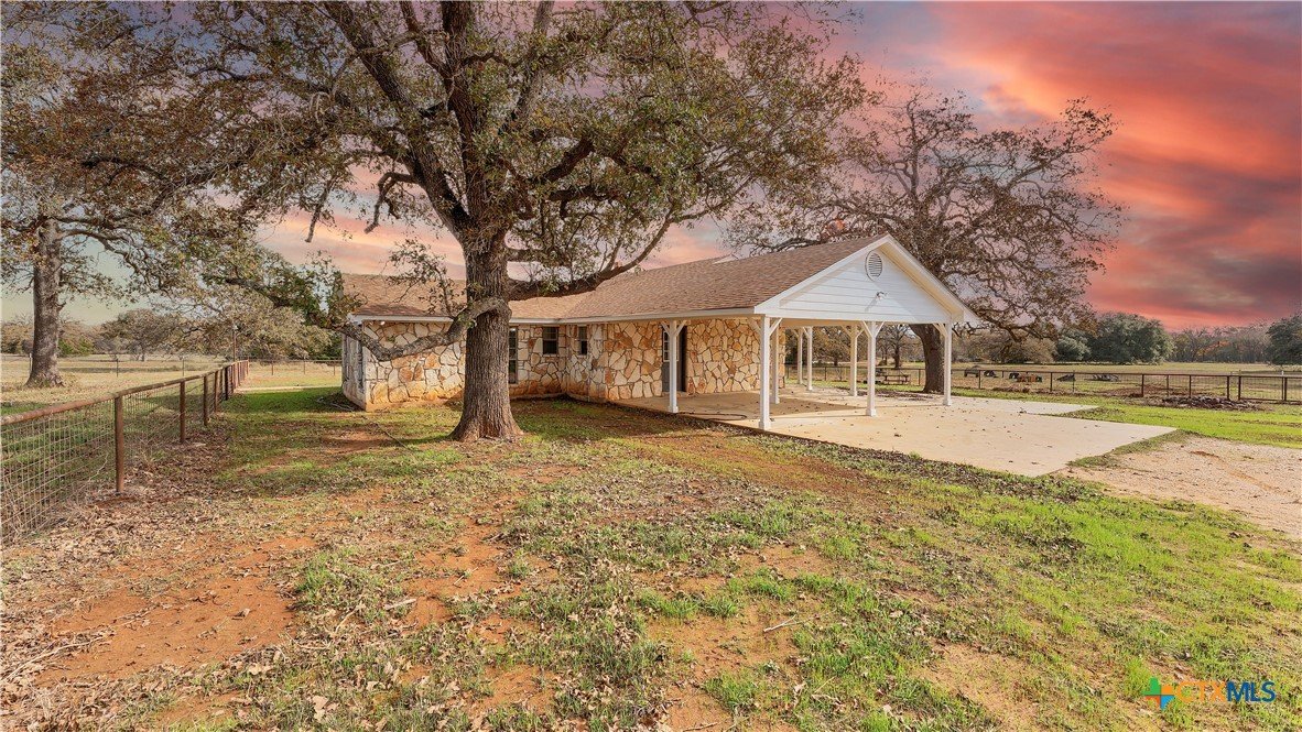 Recently upgraded ranch style, stone, one story home on 2+ Acres. Picturesque countryside views, with mature oaks and curb appeal. Recently installed 30 year composition shingle roof, and septic system. Cosmetic improvements include, fresh exterior and interior neutral paint, vinyl plank flooring and new electrical outlets and switches. The water well shed was updated as well. Excellent floorplan, with large stone, wood burning fireplace, rustic chandeliers and split bedrooms. Laundry mud room off of the expansive carport with half bath. Master suite with walk in closet and spa like retreat. Two bedrooms and one bathroom with double vanity and shower/tub combo on the north wing of the home. Spacious kitchen with abundance of counterspace and custom cabinets. Plentiful windows throughout, bring in natural light. High ceilings, wood beams and beautiful front door. Excellent entertainment space on the covered back porch with secluded yard.