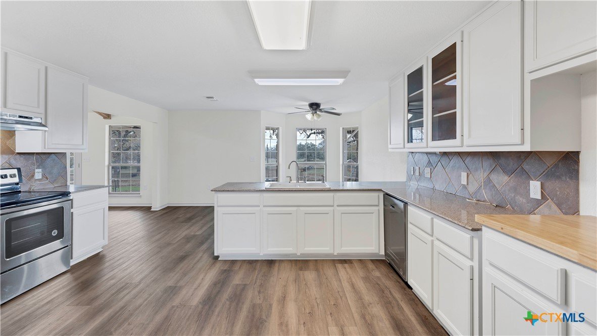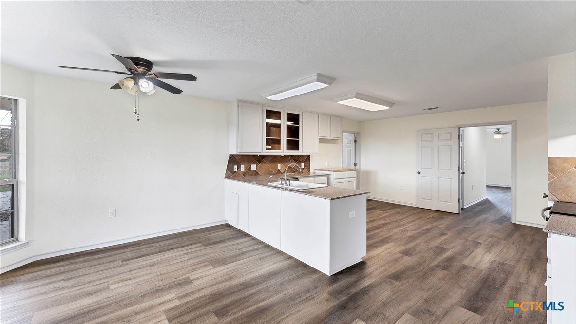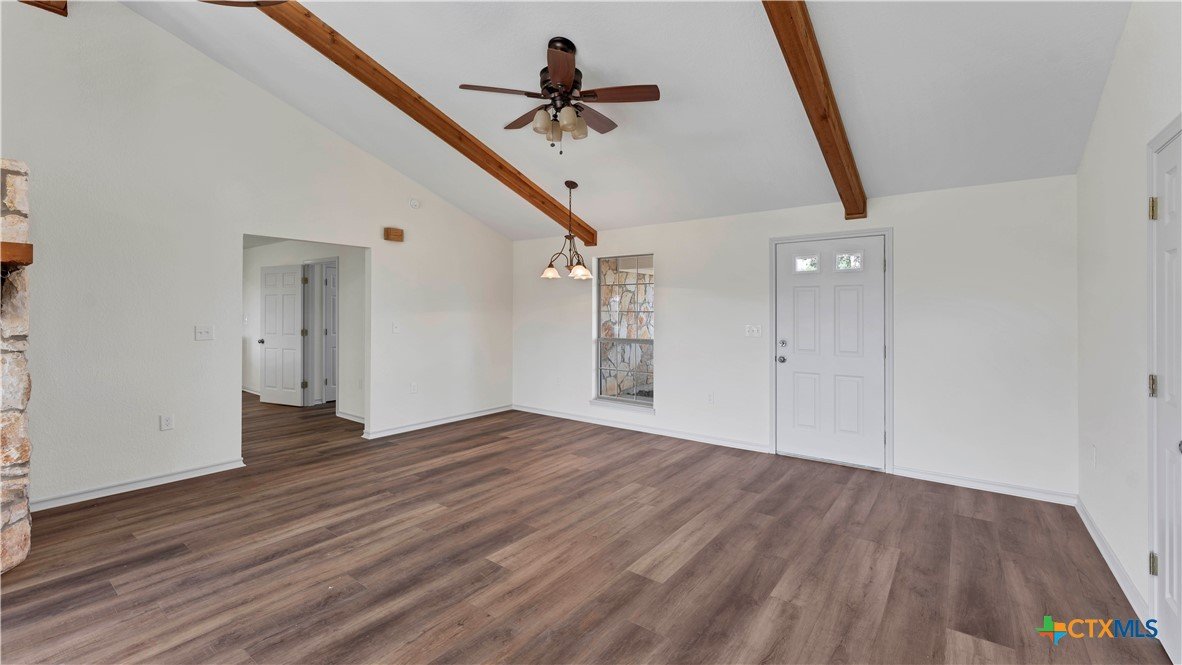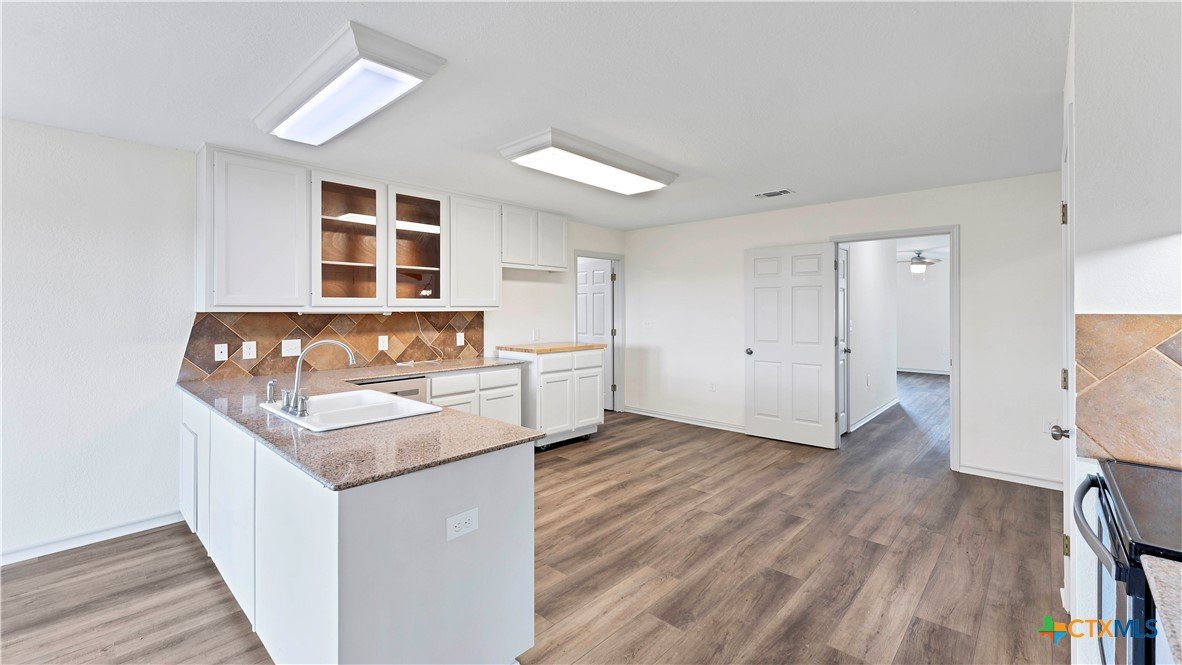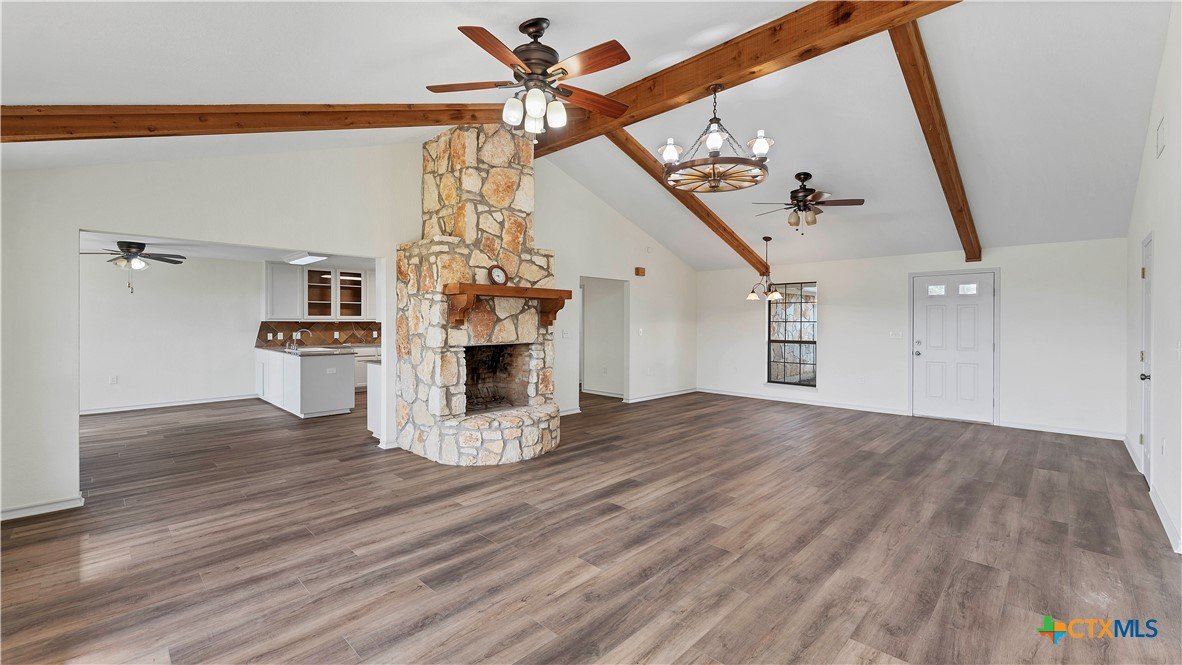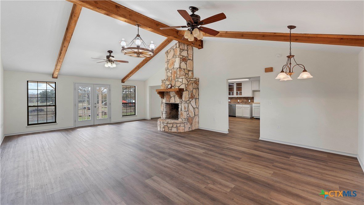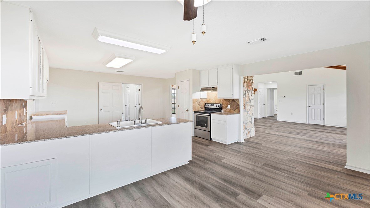 Recently upgraded ranch style, stone, one story home on 2+ Acres. Picturesque countryside views, with mature oaks and curb appeal. Recently installed 30 year composition shingle roof, and septic system. Cosmetic improvements include, fresh exterior and interior neutral paint, vinyl plank flooring and new electrical outlets and switches. The water well shed was updated as well. Excellent floorplan, with large stone, wood burning fireplace, rustic chandeliers and split bedrooms. Laundry mud room off of the expansive carport with half bath. Master suite with walk in closet and spa like retreat. Two bedrooms and one bathroom with double vanity and shower/tub combo on the north wing of the home. Spacious kitchen with abundance of counterspace and custom cabinets. Plentiful windows throughout, bring in natural light. High ceilings, wood beams and beautiful front door. Excellent entertainment space on the covered back porch with secluded yard.
