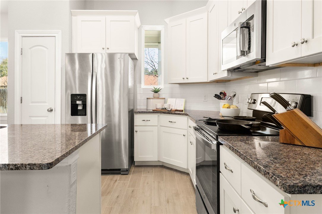 Built in 2020 and thoughtfully designed, this 3 bedroom, 2.5 bath home offers over a 2,000 square feet of well-planned space in a small, quiet neighborhood. Downstairs features an open living, kitchen, and dining area that makes everyday life easy and comfortable. The primary suite is on the main floor and includes a separate tub and shower, double vanity, and a large walk-in closet. You’ll also find a powder room and laundry room downstairs for added convenience. Upstairs offers two bedrooms, a full bath, and a versatile loft with its own storage closet. The home is filled with recessed lighting and ceiling fans throughout, including the covered patio. Outside, you’ll appreciate the irrigation system for both front and back yards, complete with a drip system. The home also features a camera system with two cameras in front and one in back, connected 24/7 with no monthly fee with a WIFI system. Priced very competitively compared to new builds in the area, this home offers more space, added features, and the benefit of being in a quieter, established neighborhood. Move-in ready and built for easy living.