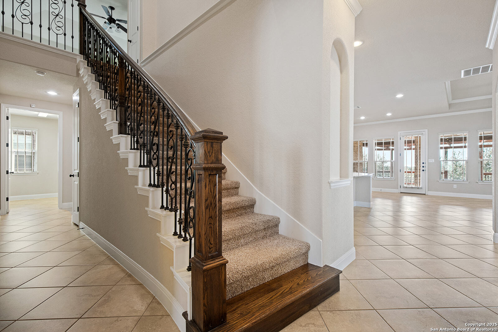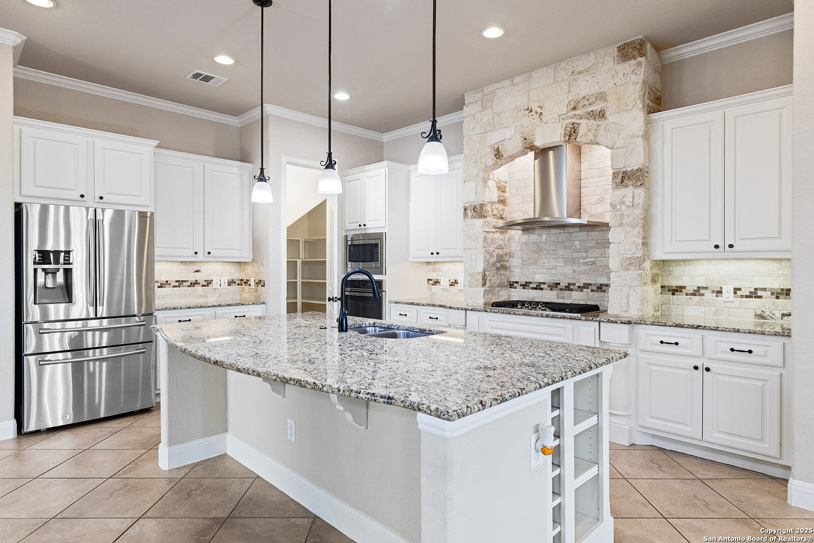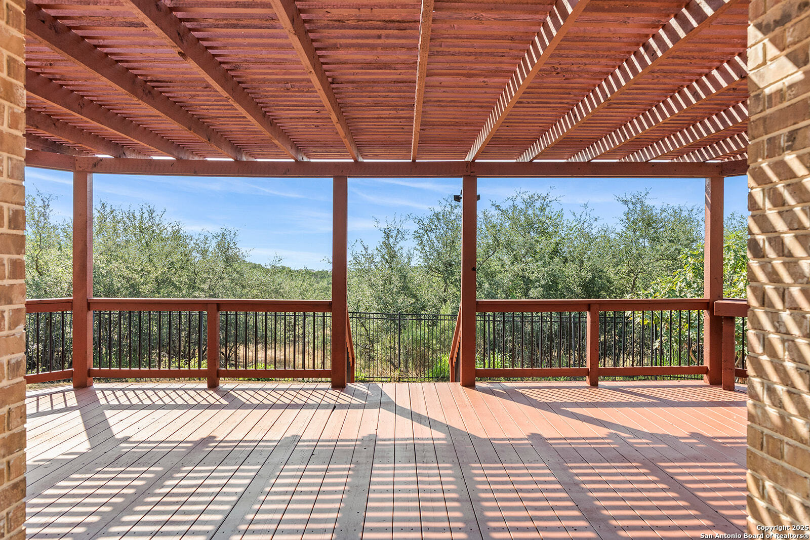 Enjoy Breathtaking Hill Country Views on a true Greenbelt from your covered patio and extended deck, perfect for entertaining or enjoying a nice dinner with a view. Stunning 4 Bedroom/3.5 Bath + Game Room & Media Room. 3 car garage. Gleaming wood floors, soaring ceilings, & full of natural light. kitchen boasts upgraded Granite, custom cabinetry, back splash, double oven, gas cooktop. Luxurious Primary Suite w/ Bay Window & Spa-Like Bathtub and separate shower, Large Walk-in closet! 3 Secondary Bedrooms & 2 additional Full Baths all downstairs. Upstairs, media room, Gameroom and a 1/2 bath. Outstanding Comal ISD. Schoools, No city taxes. Community pool, basketball court, tennis court, playground and walking trails.