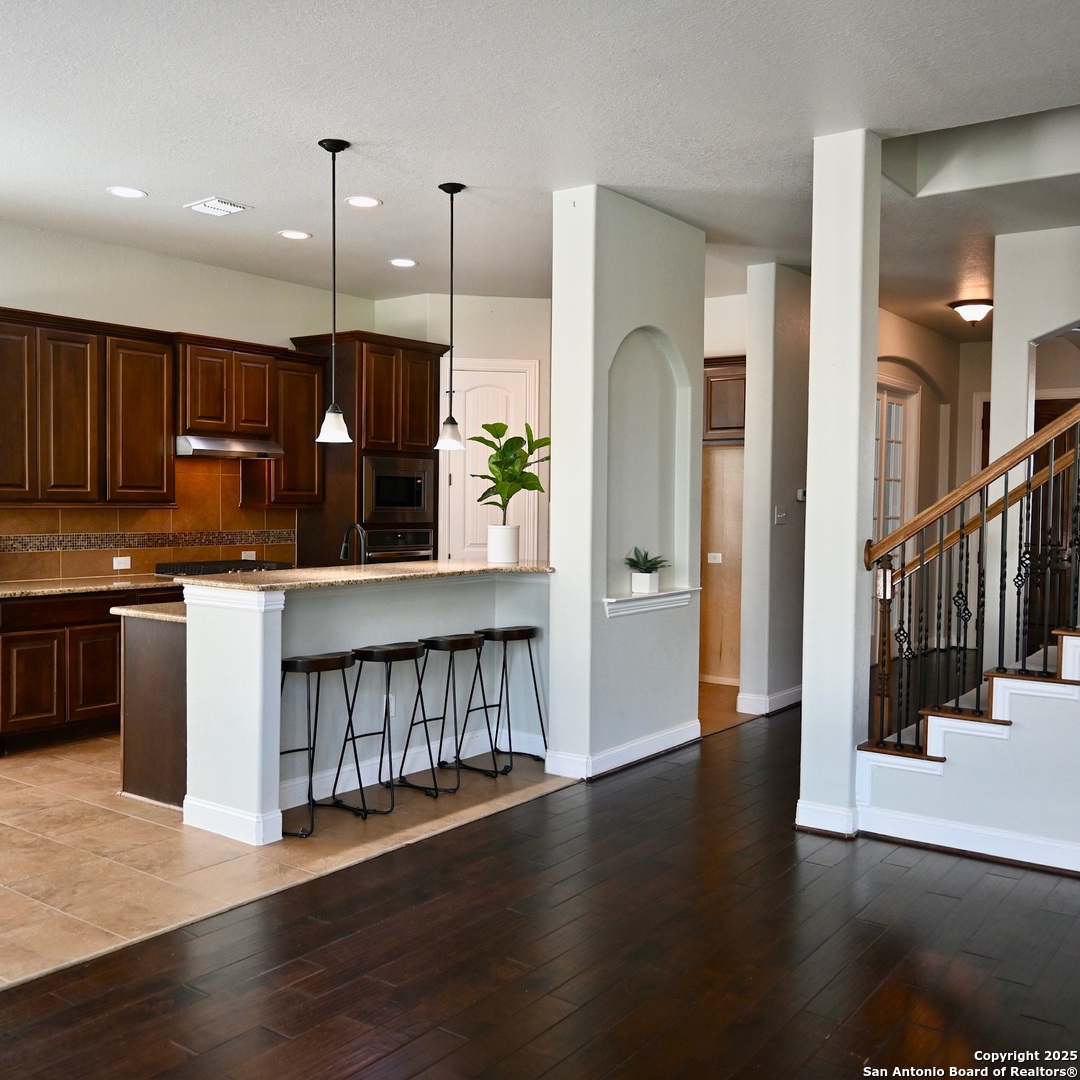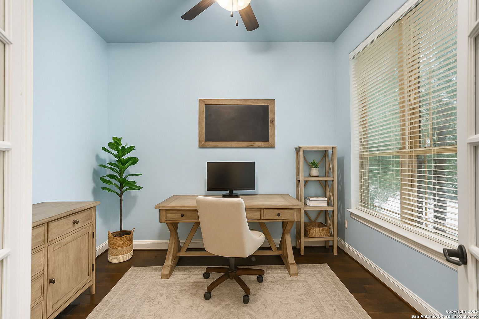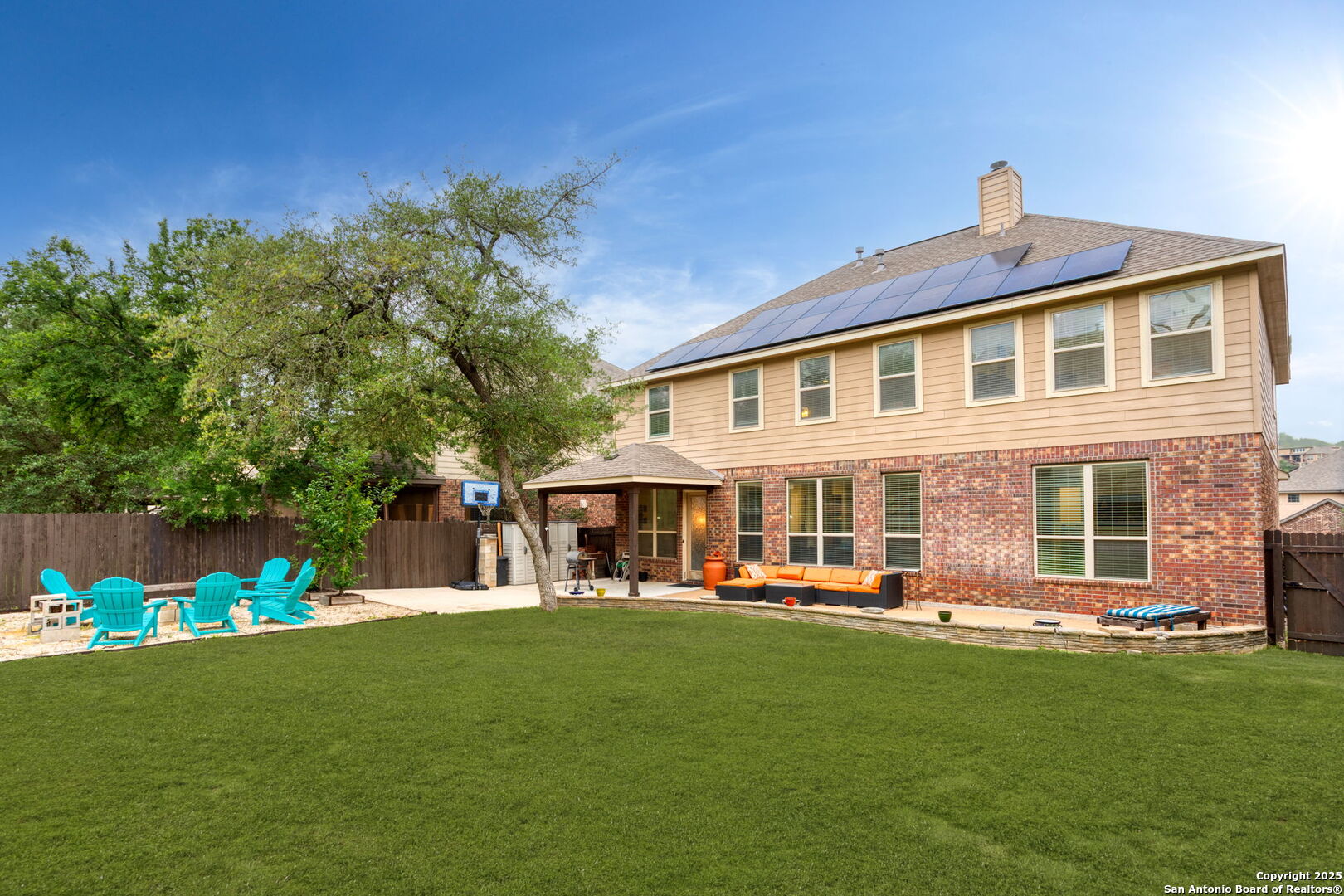 Energy efficient home with new high-end solar panel system (completely paid off) and TWO solar storage batteries, valued at $65k! Energy bills are practically nothing! Perfect for a large family, this spacious home features 5 beds/3.5 baths with beautiful wood floors upstairs and downstairs. Enjoy a downstairs mother-in-law suite, primary bedroom with oversized closet, formal dining room, dedicated home office, and large upstairs gameroom. Other energy-efficient perks include **2 new HVAC units**, **a tankless water heater** and new water softener. The extended back patio and fire pit are ideal for entertaining. Move-in ready with plenty of room to live, work, and play!