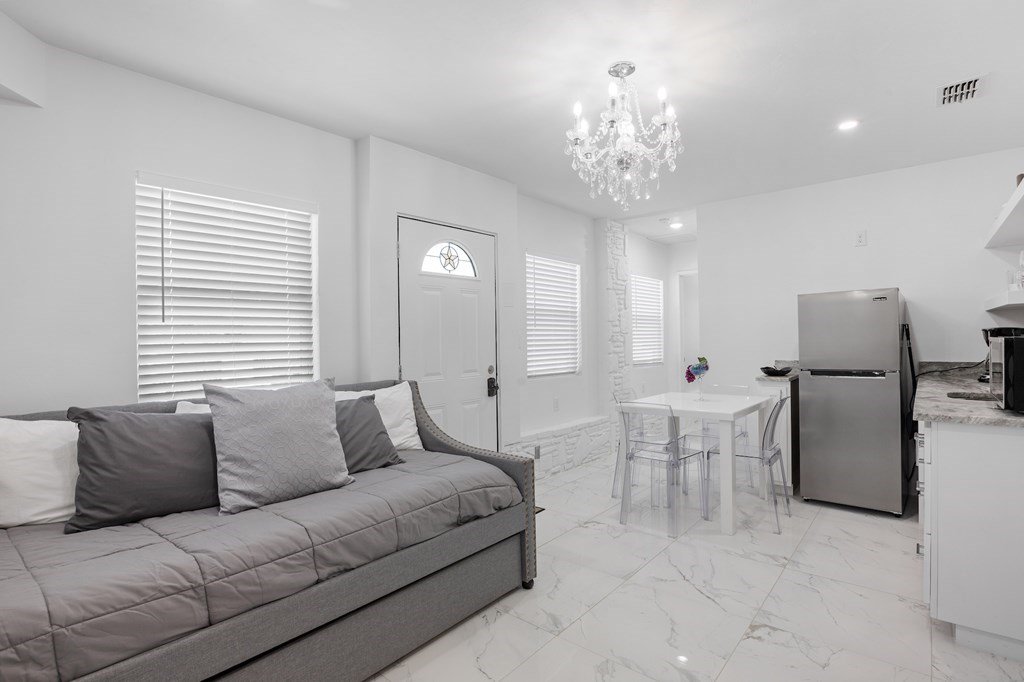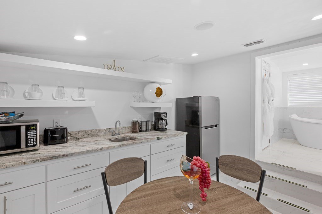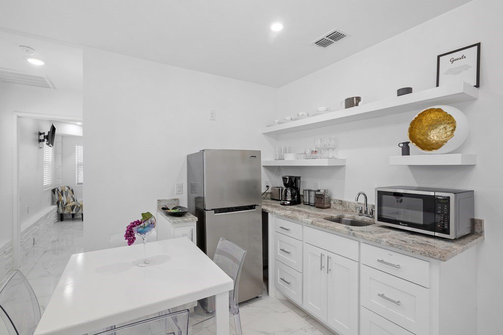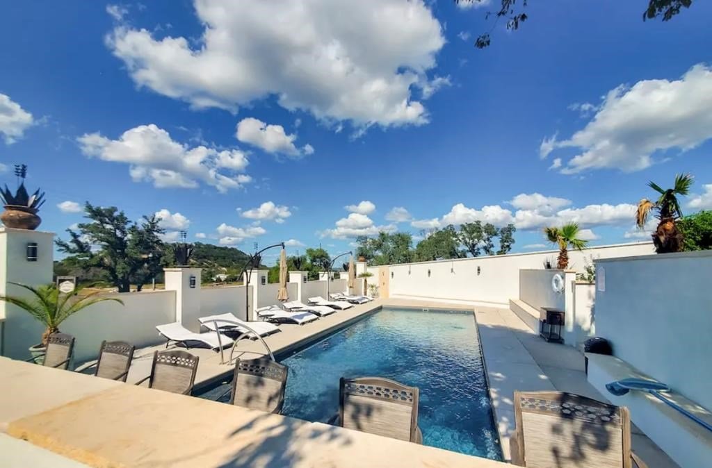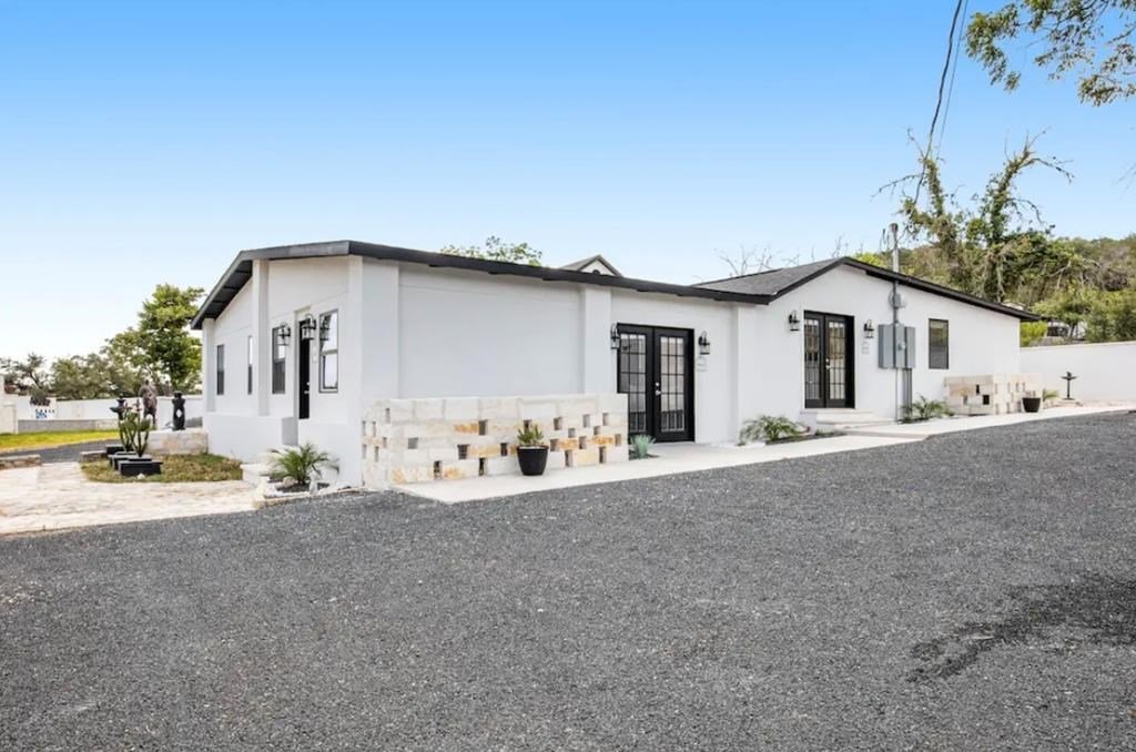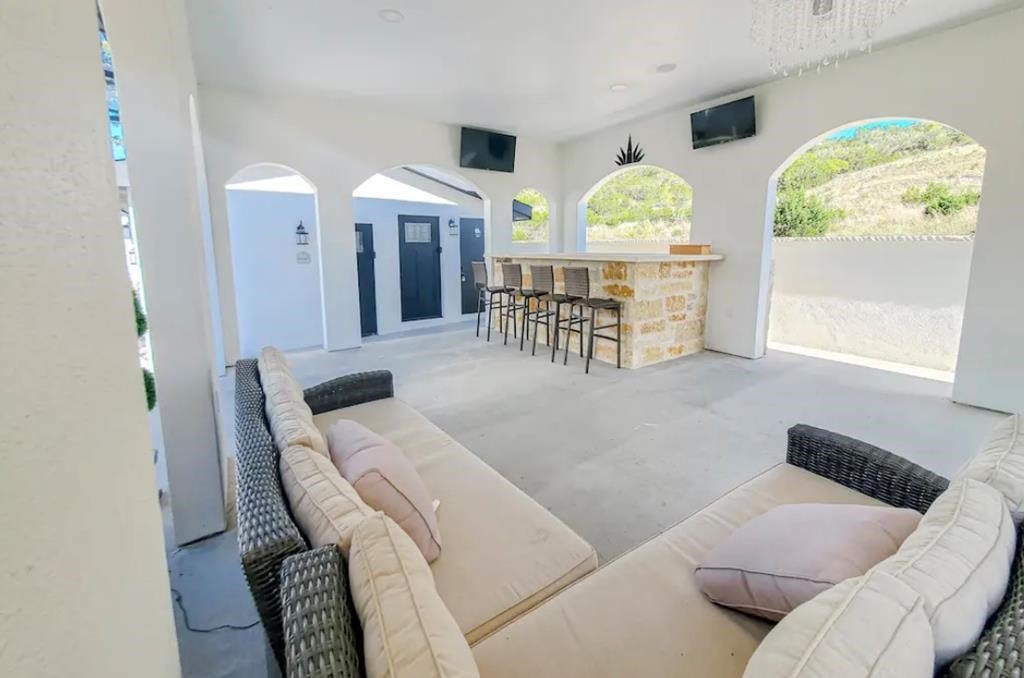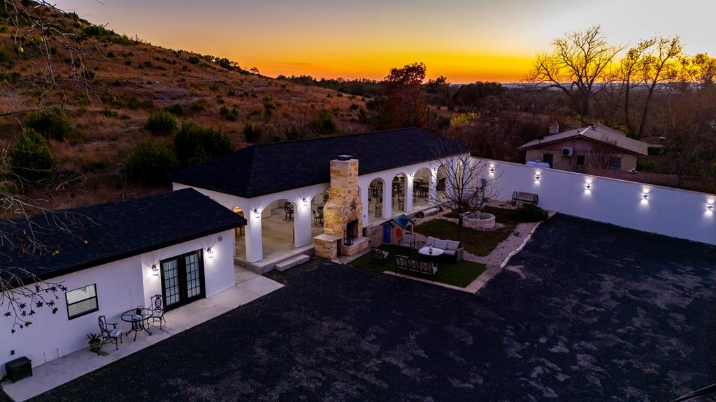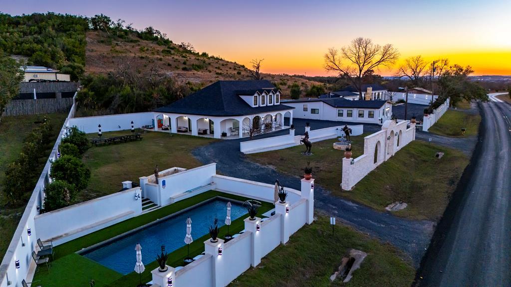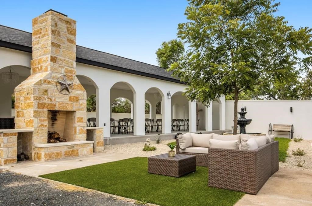 Welcome to Hacienda Agave! This 12-bedroom/9.5-bathroom total property features a gourmet kitchen with state-of-the-art appliances, a spacious living room that is great for entertaining, and beautiful marbled tile floors throughout the property. Perfect for weddings and events, Hacienda Agave includes 5 charming guesthouses, an event venue, and a relaxing resort-style private pool. Each guesthouse provides a kitchenette with a stainless-steel refrigerator, a microwave, and a coffee maker to get you going in the morning, dining areas, and TVs in the living areas and bedrooms. The bathrooms include modern and stylish upgrades. The venue offers covered seating, two majestic outdoor fireplaces, a built-in bar, a sound system, kitchen space, and lush greenery. The ceremonies and get-togethers will ensure that memories will be made to last a lifetime. Located on the edge of the city limits and just 6 minutes away from the heart of Fredericksburg, Texas. Enjoy stunning Hill Country views! Outdoor lounge seating area, bar area, and kitchen for caterers. The entire property sleeps a total of 32 guests. This exceptional property is a rare find—Visit at https://www.haciendaagavefbg.com